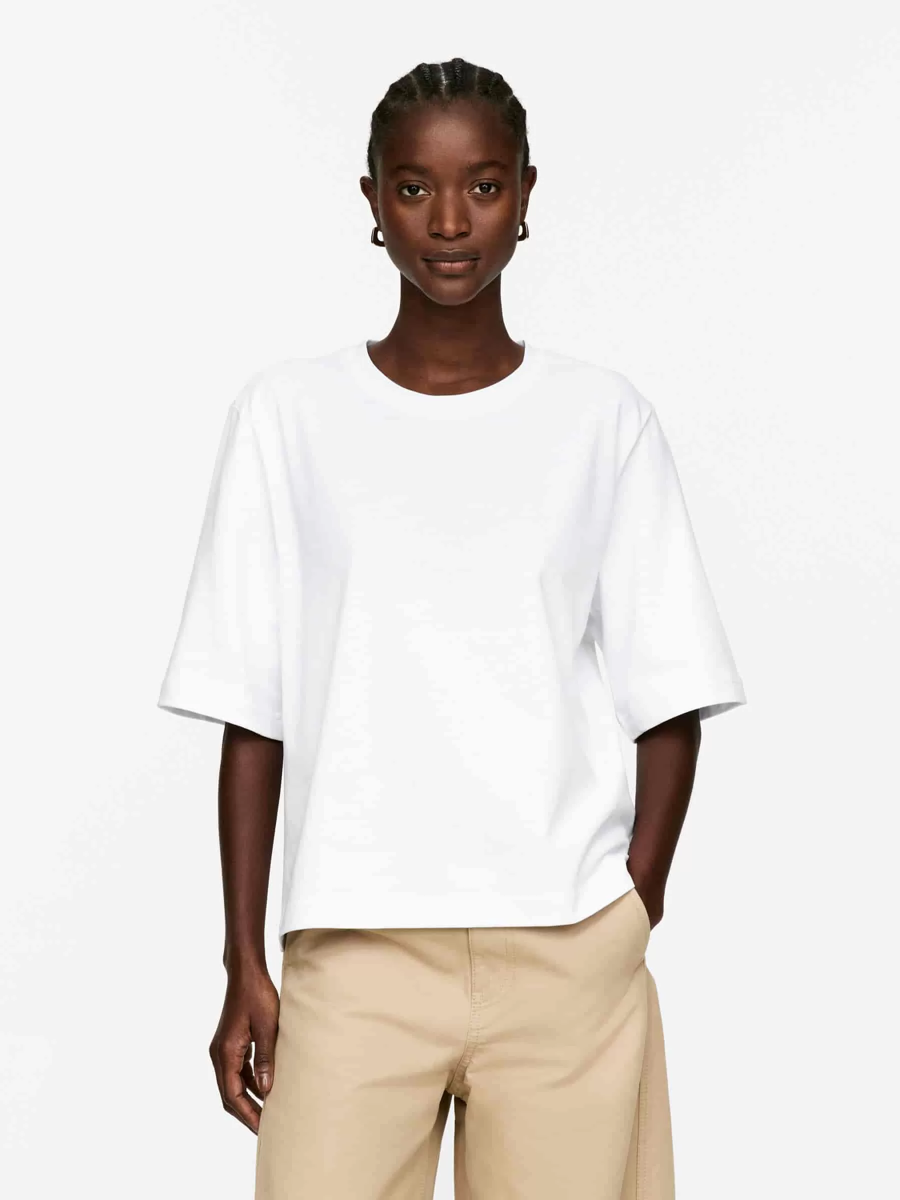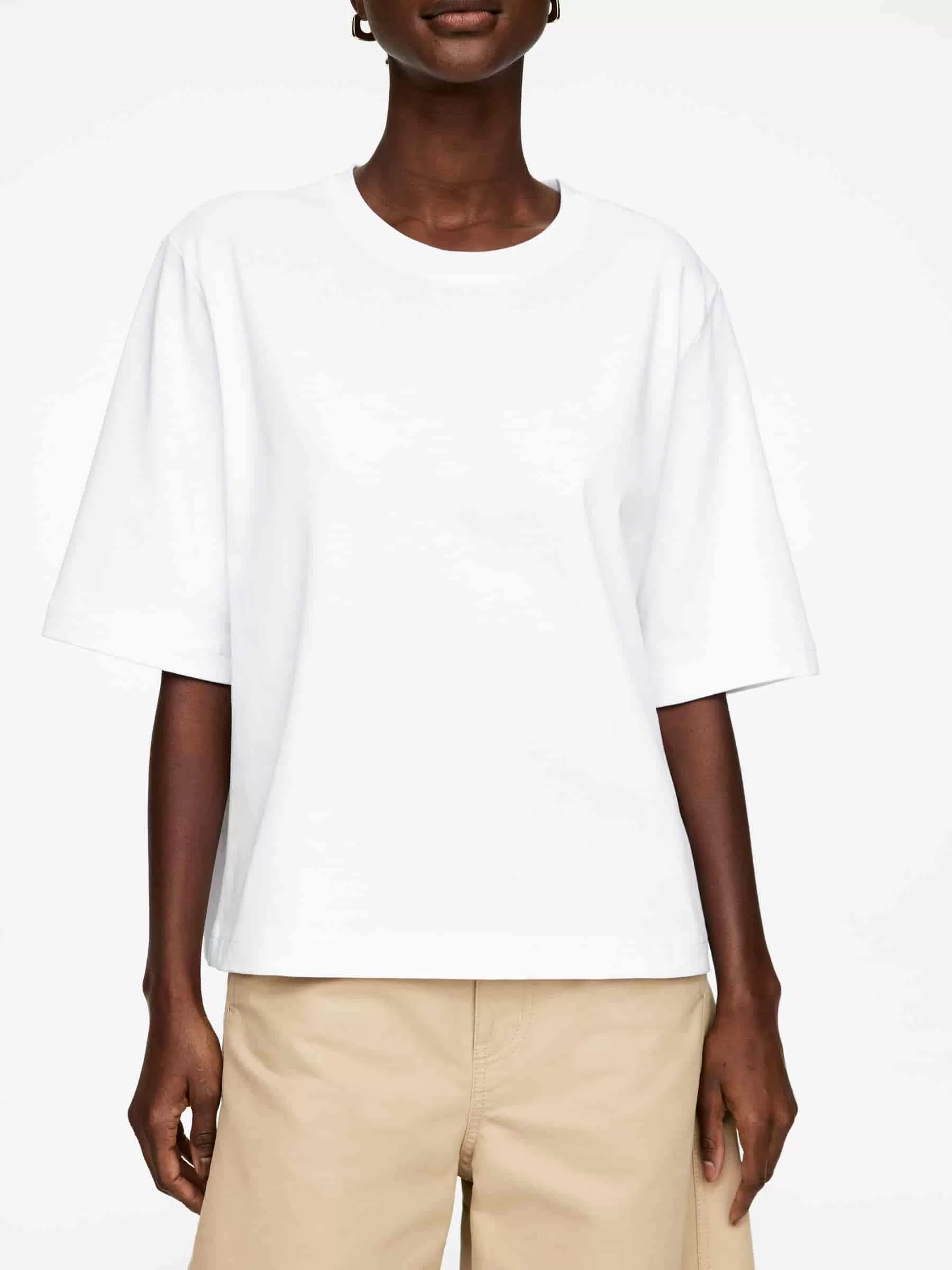 T-Shirt aus robustem Baumwoll-Single-Jersey. Ein kurzärmliges Modell mit kastenförmiger Passform und leicht verkürztem Körper.
