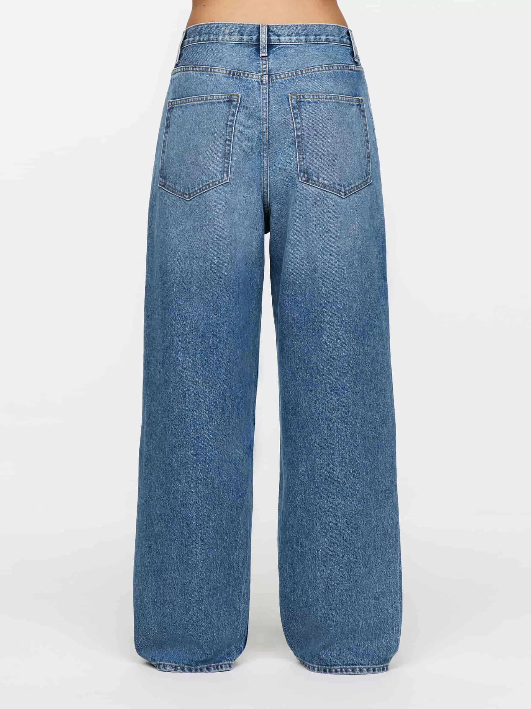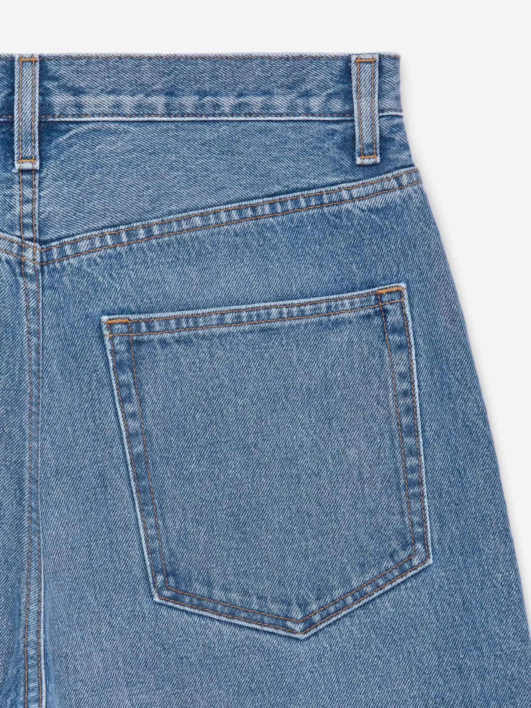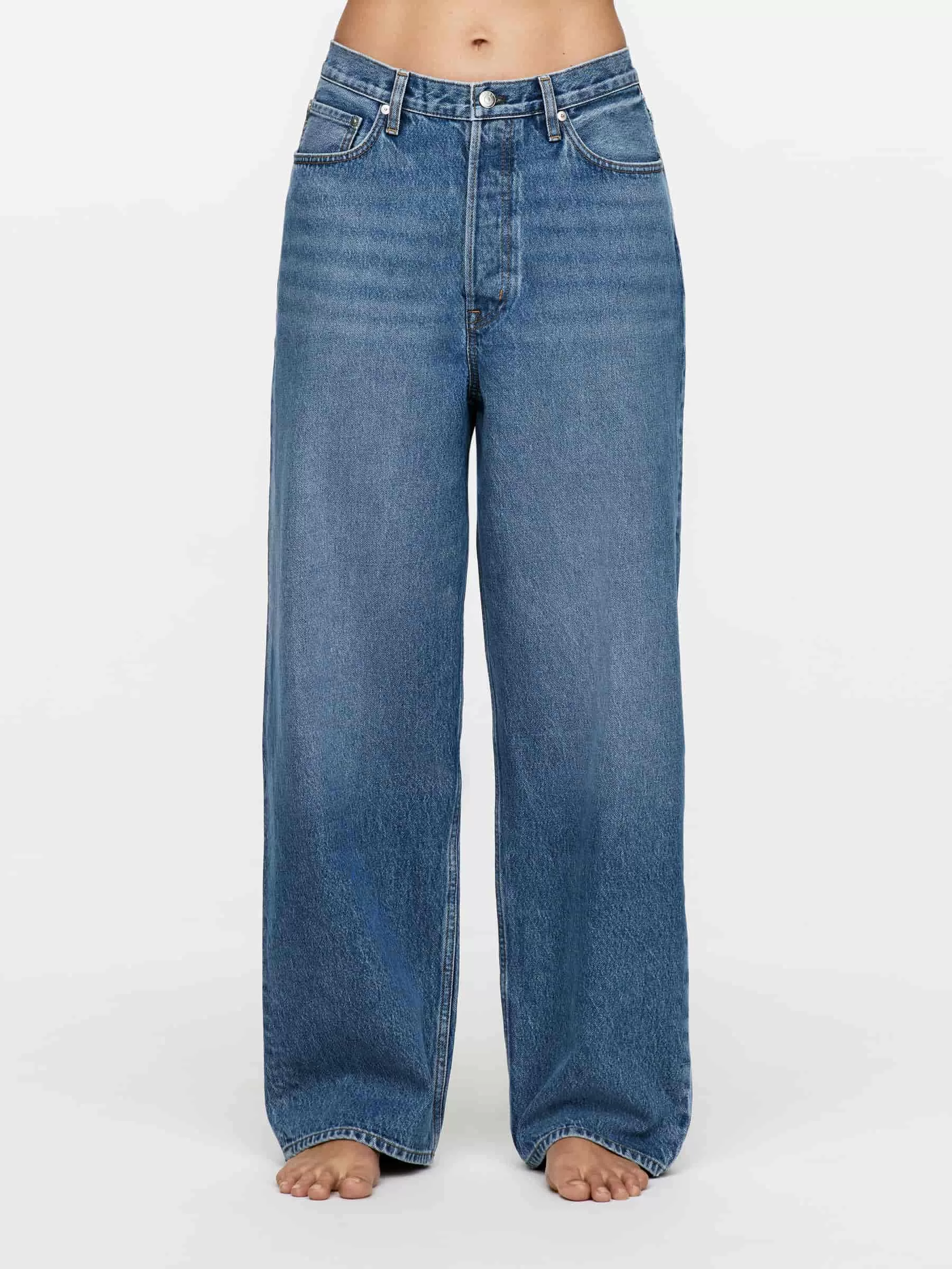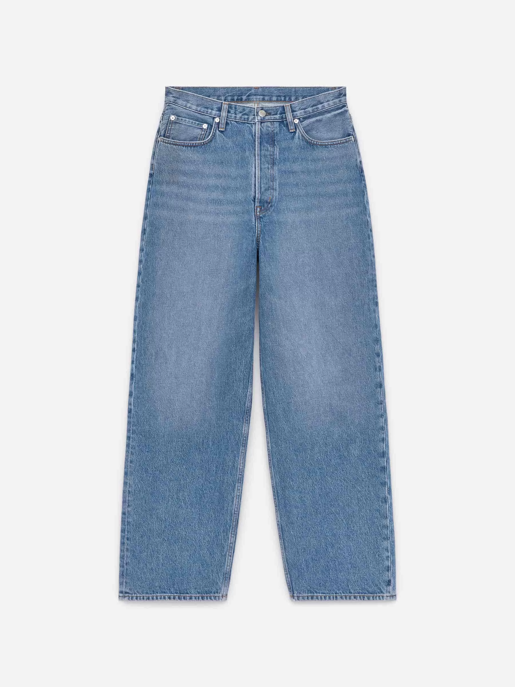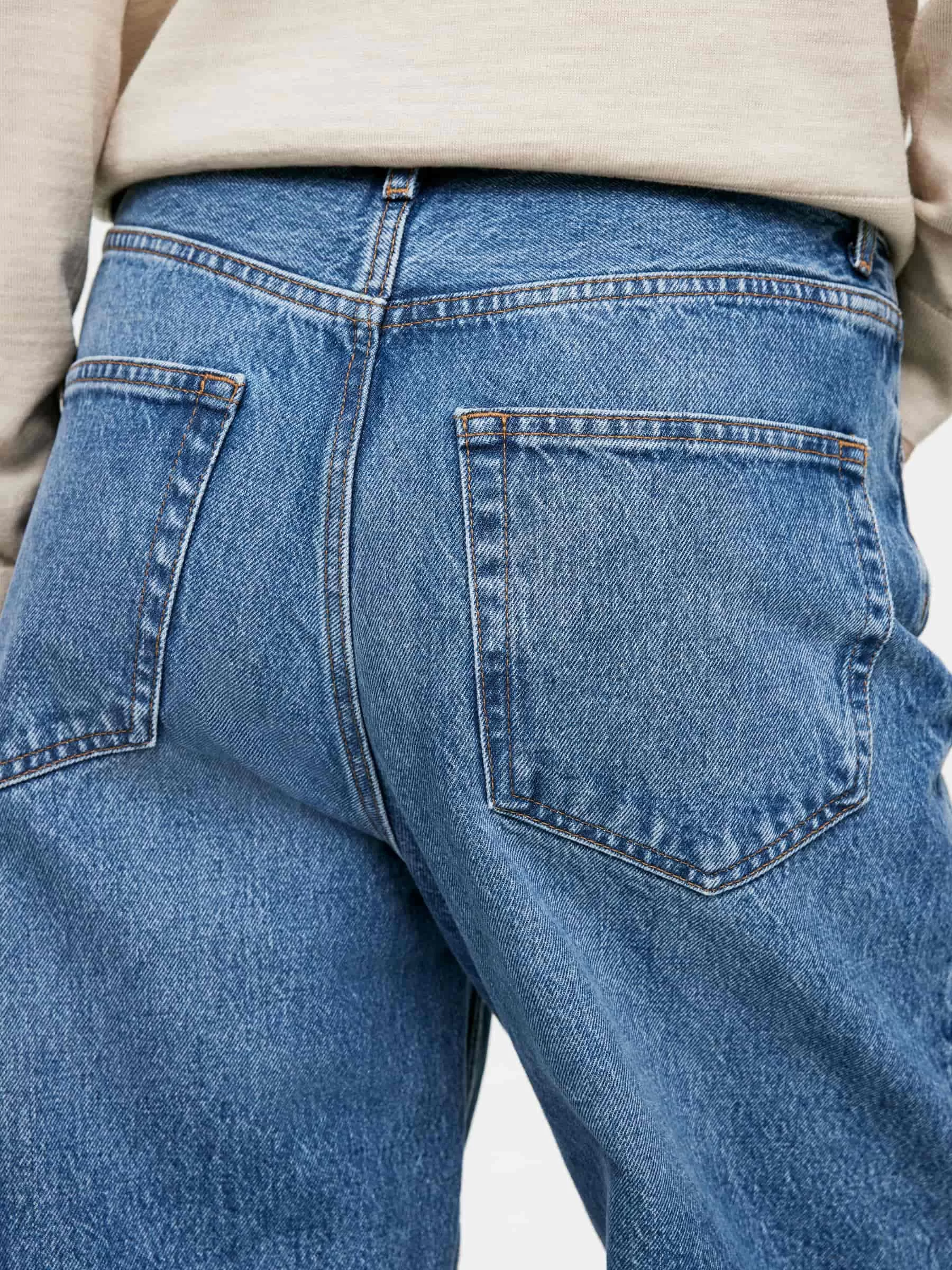 AMBER ist aus nicht dehnbarem Denim gefertigt und hat eine mittelhohe Taille, eine lockere Passform und gerade, lockere Beine. Knopfleiste.