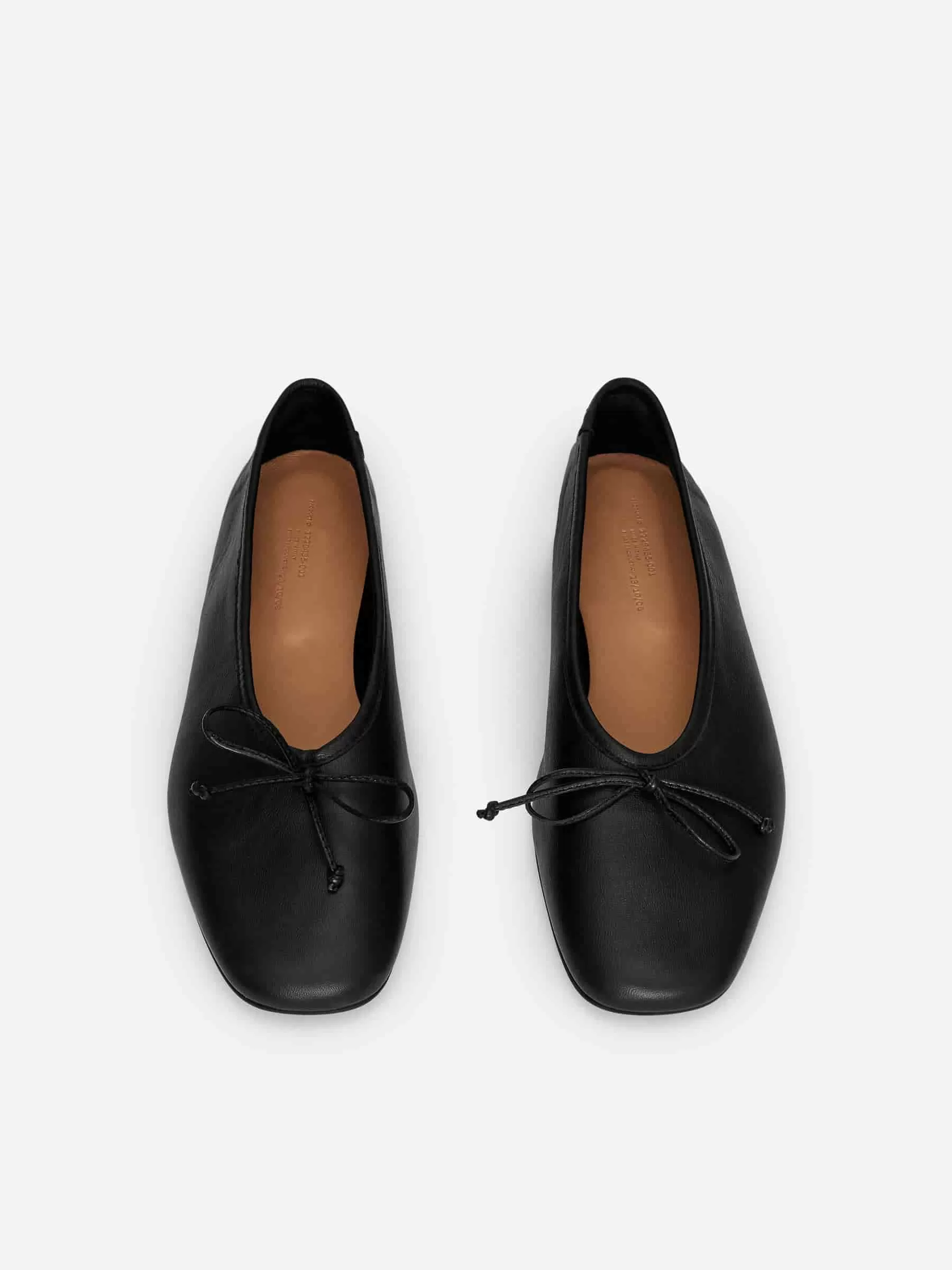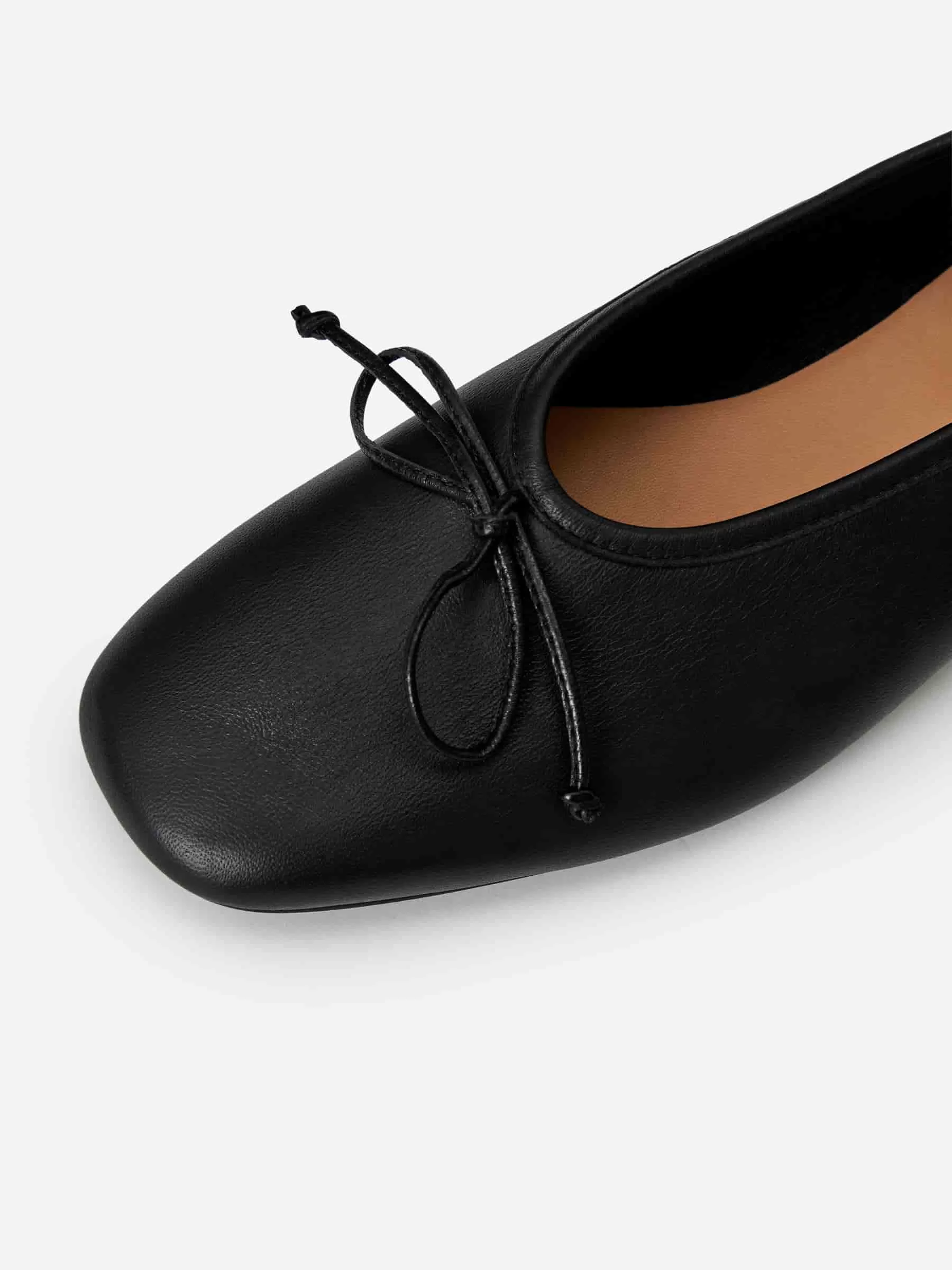 Ballerina aus weichem Leder, das einem metallfreien Gerbungsprozess unterzogen wurde. Mit hohem Oberteil und Lederschleifendetail. Lederfutter und Ledersohle.