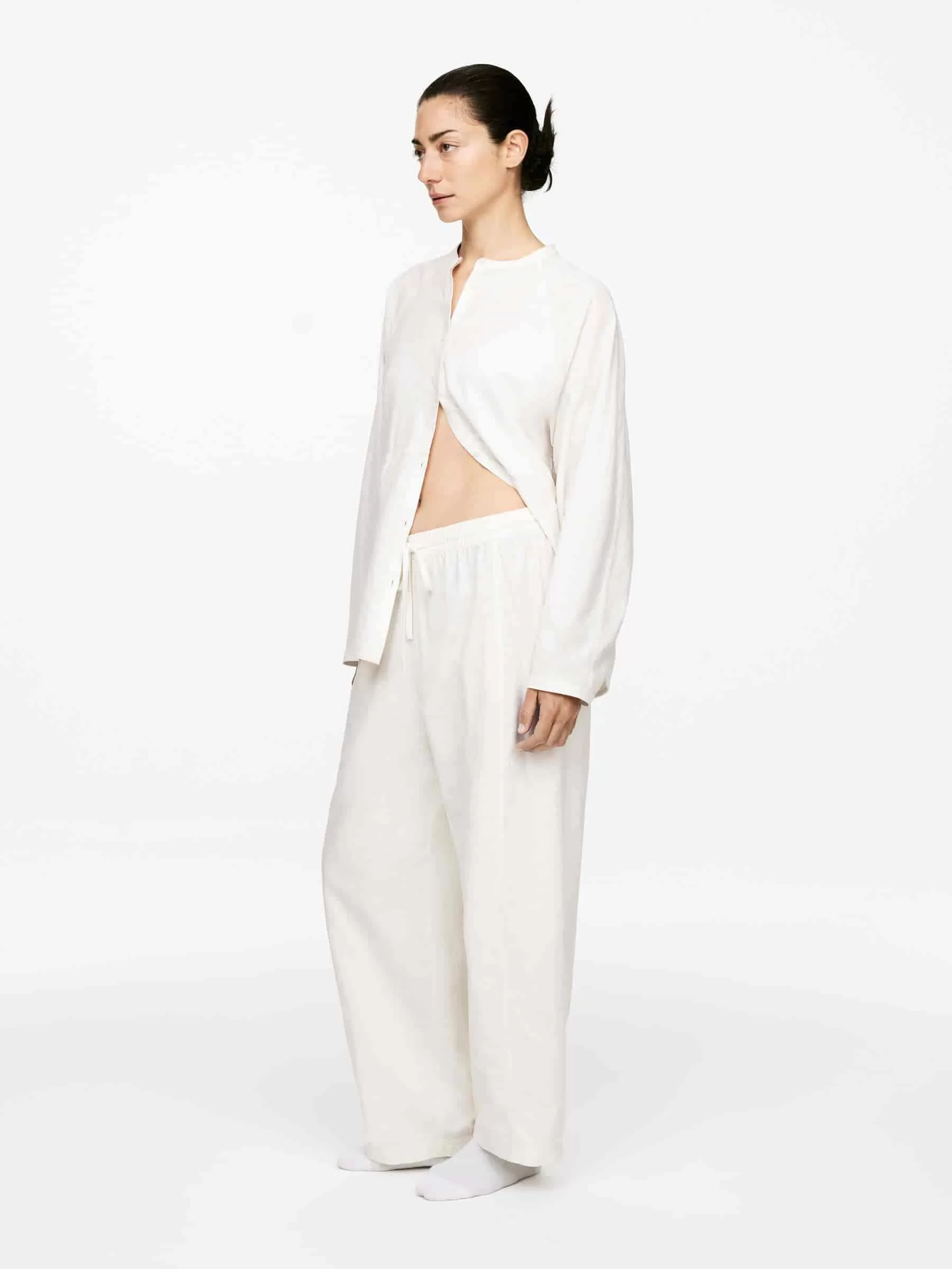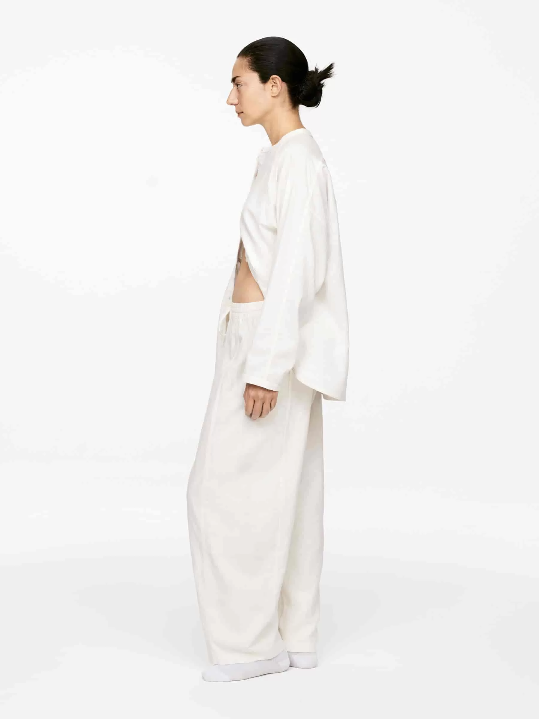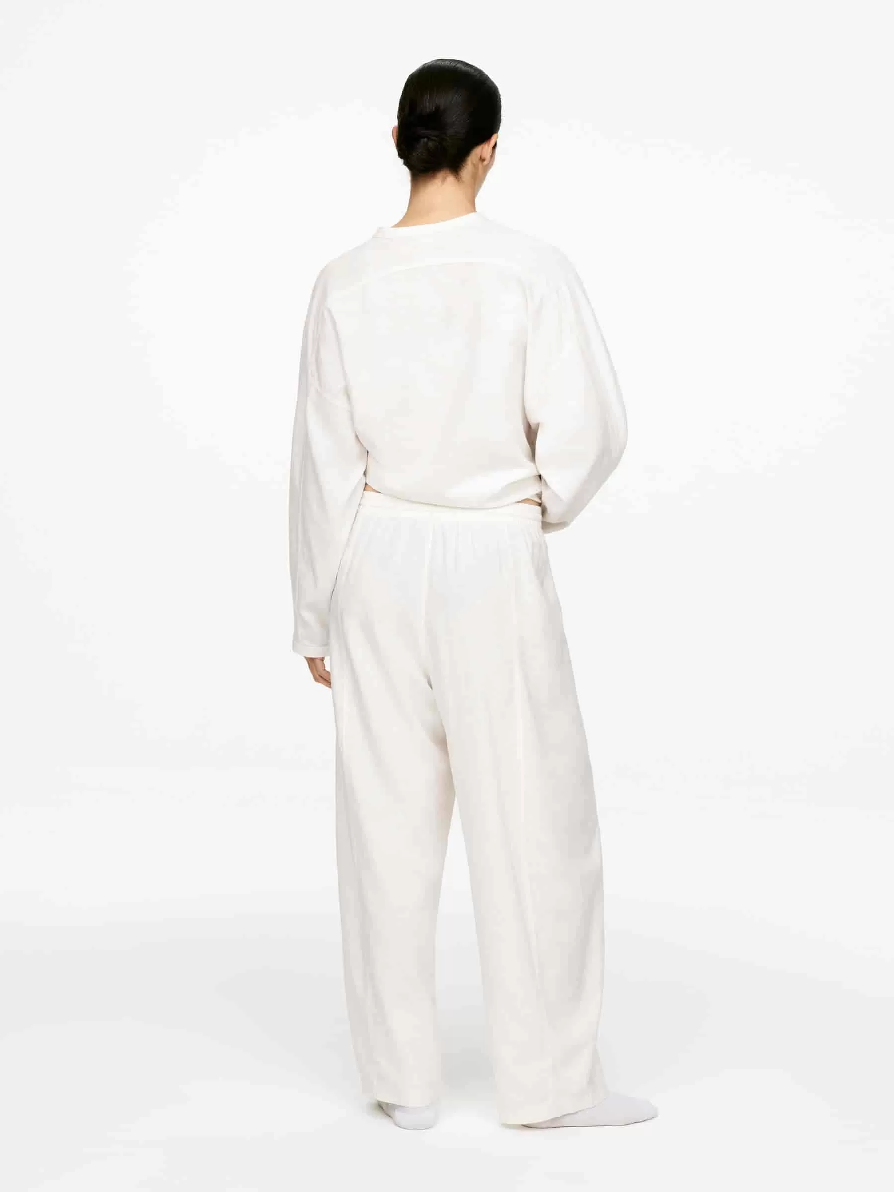 Loungewear-Hose aus weicher Baumwoll-Leinen-Mischung mit verwaschener Optik. Mit Gummizügen und Kordelzug in der Taille.