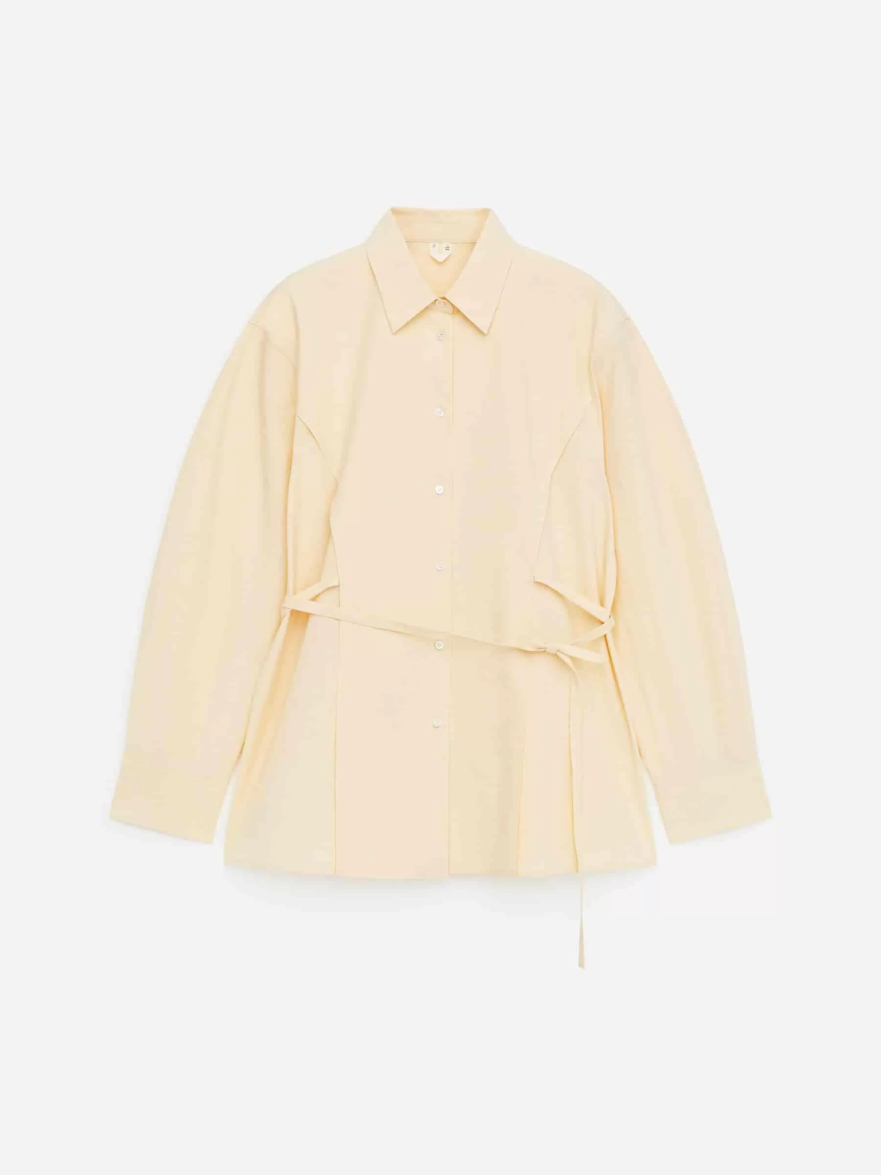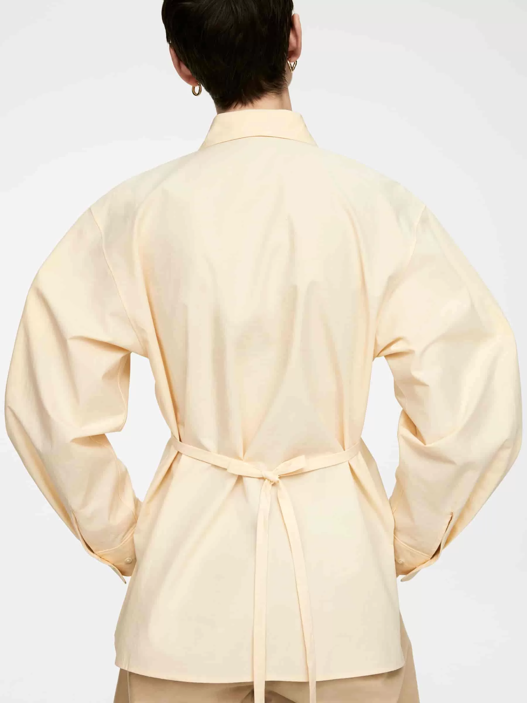 ARKE Damen Baumwollbluse mit Bindegürtel Staubiges Gelb
