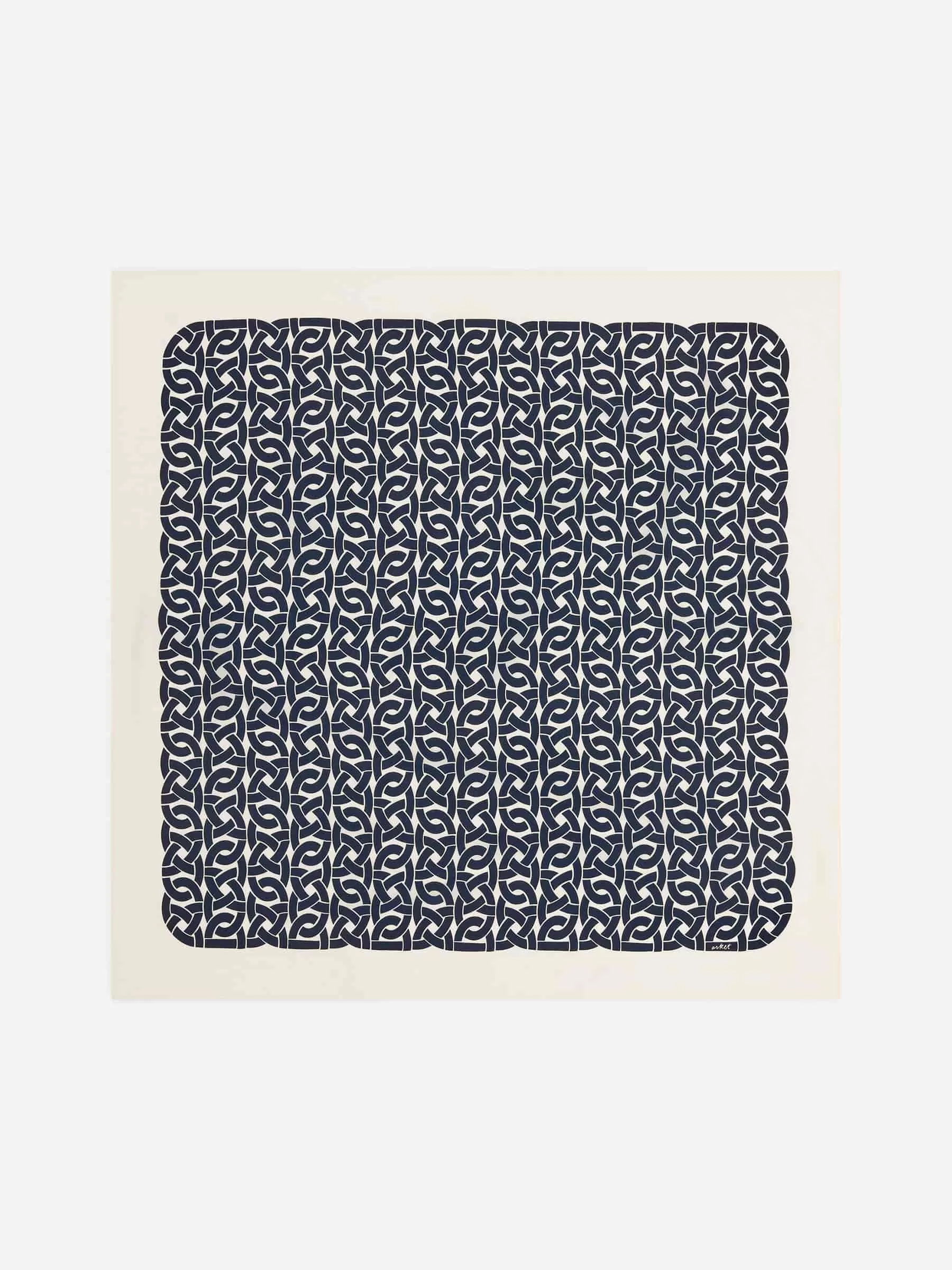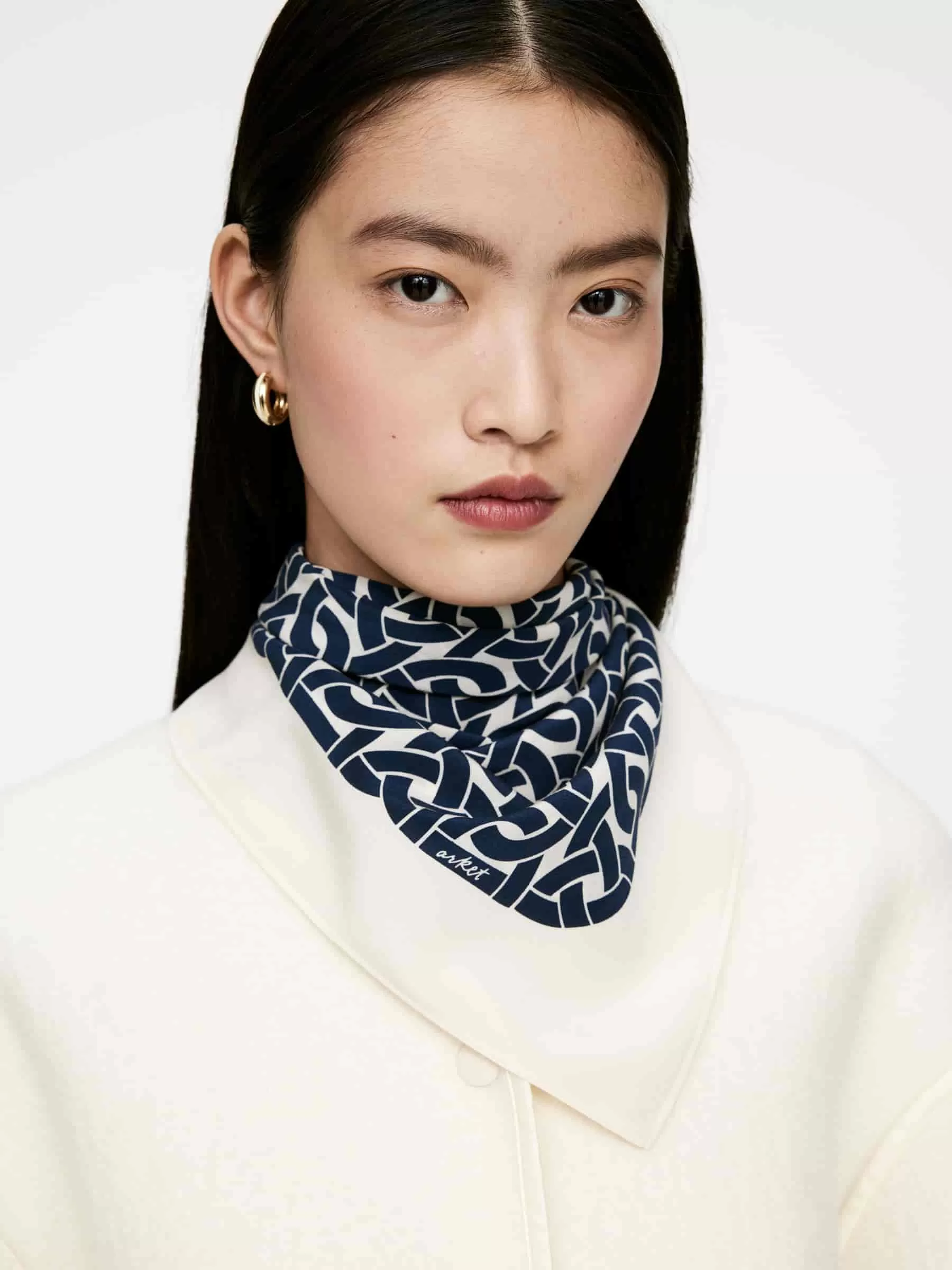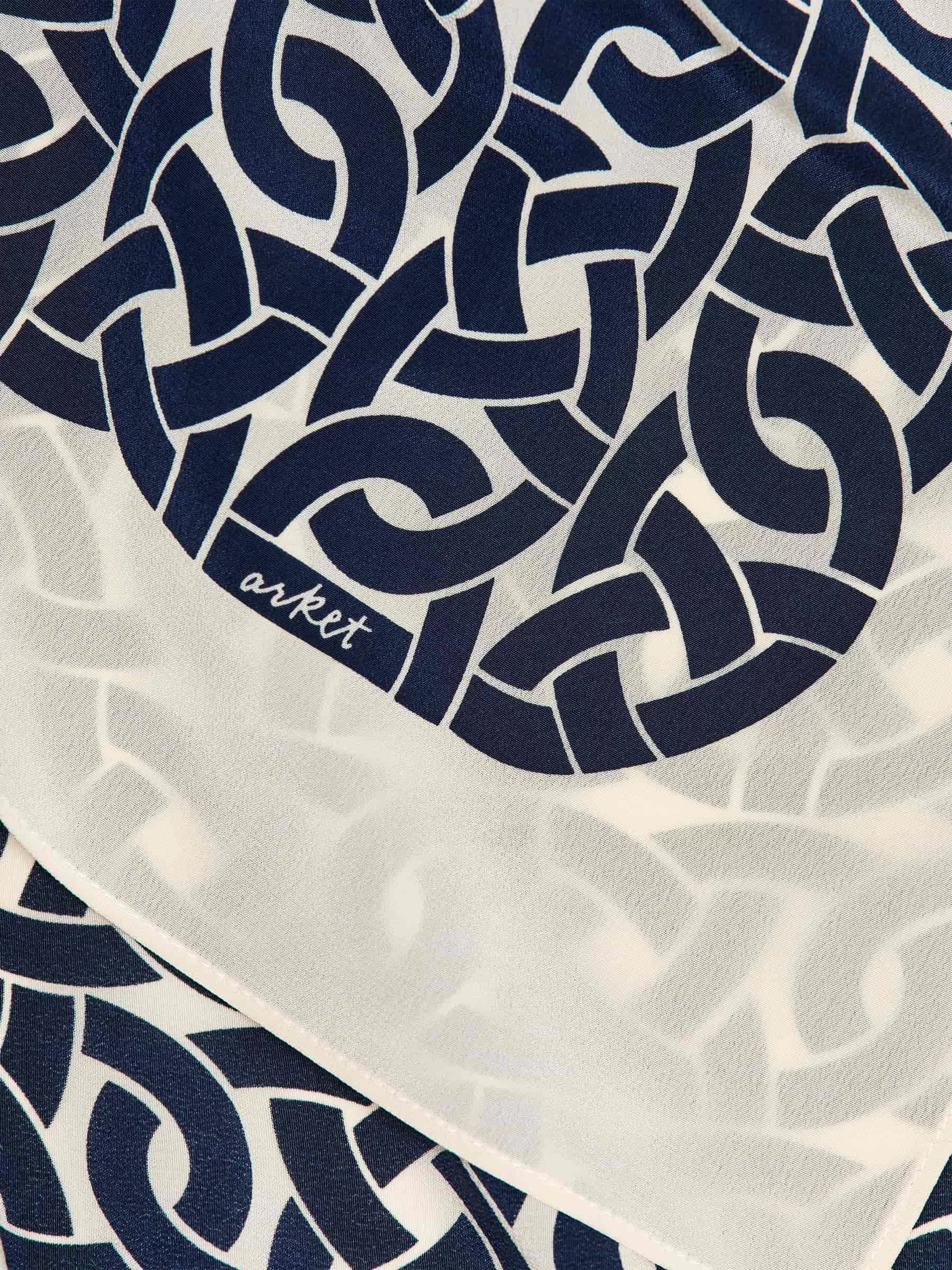 ARKE Damen Bedruckter Seidenschal Weiß/Dunkelblau
