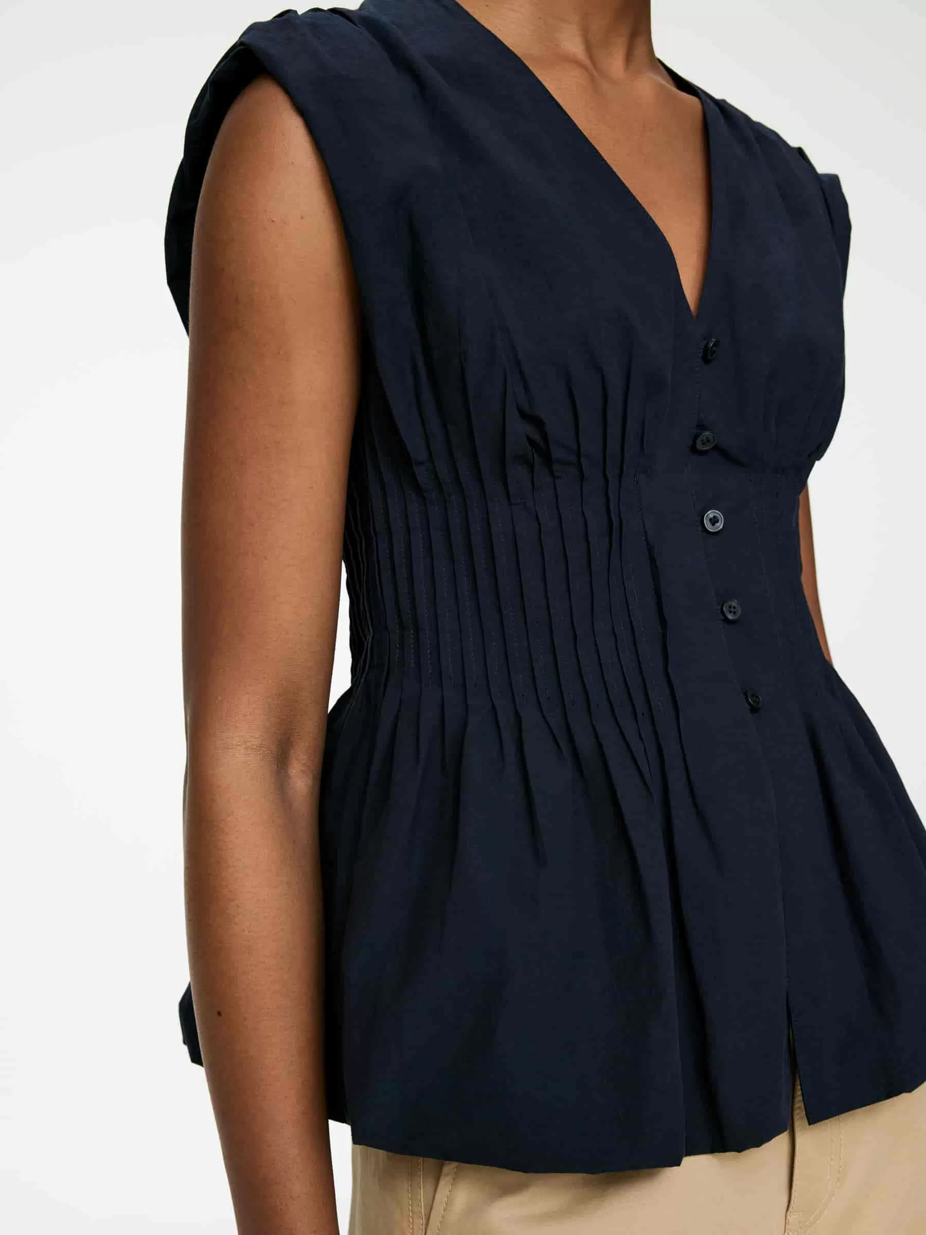 Biesenoberteil aus Baumwolle. Mit schmaler Taille und Knopfverschluss. Schlanke Passform.