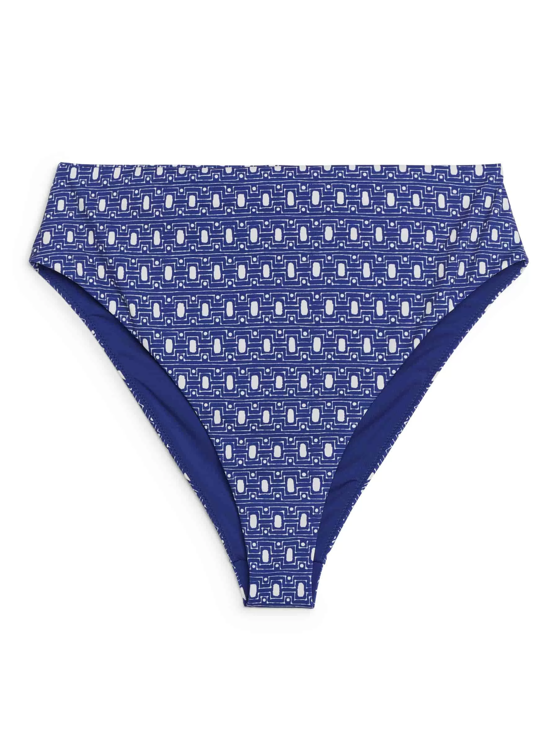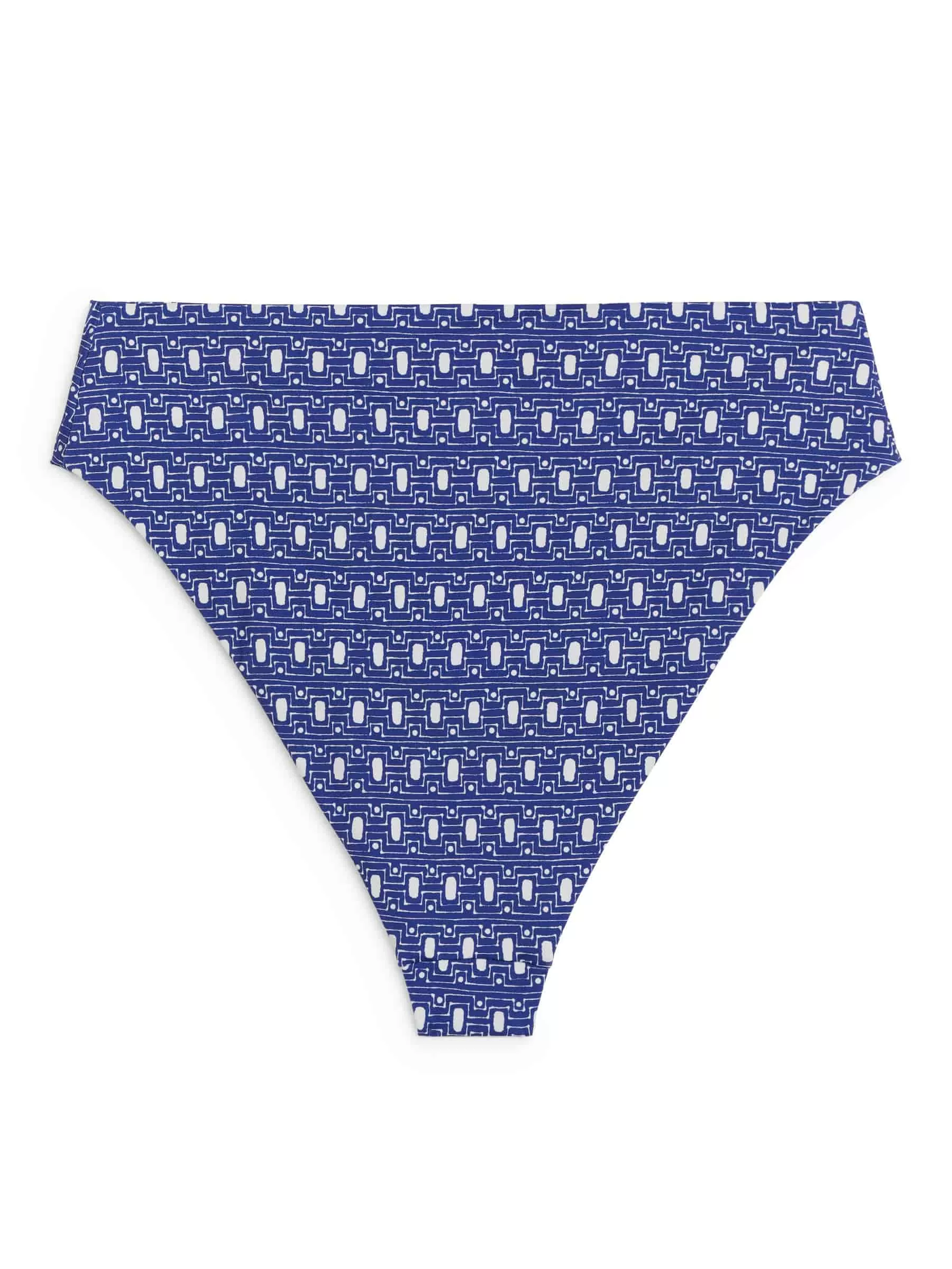 ARKE Damen Bikini-Slip mit hoher Taille Blau/Weiß