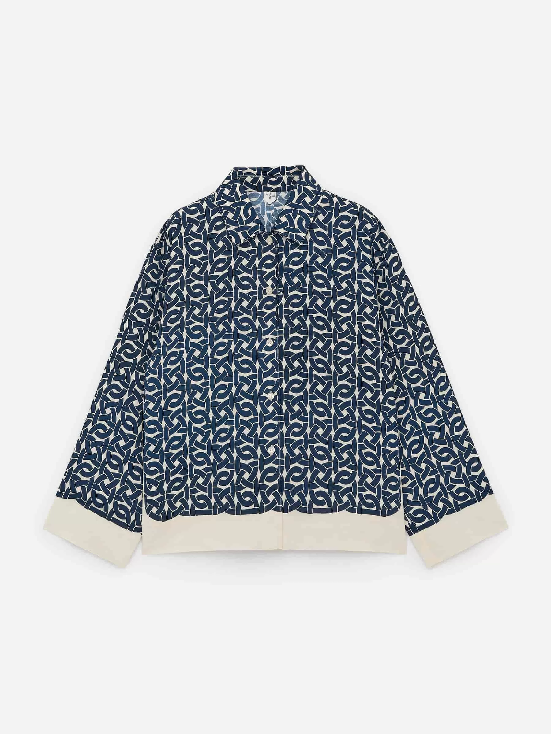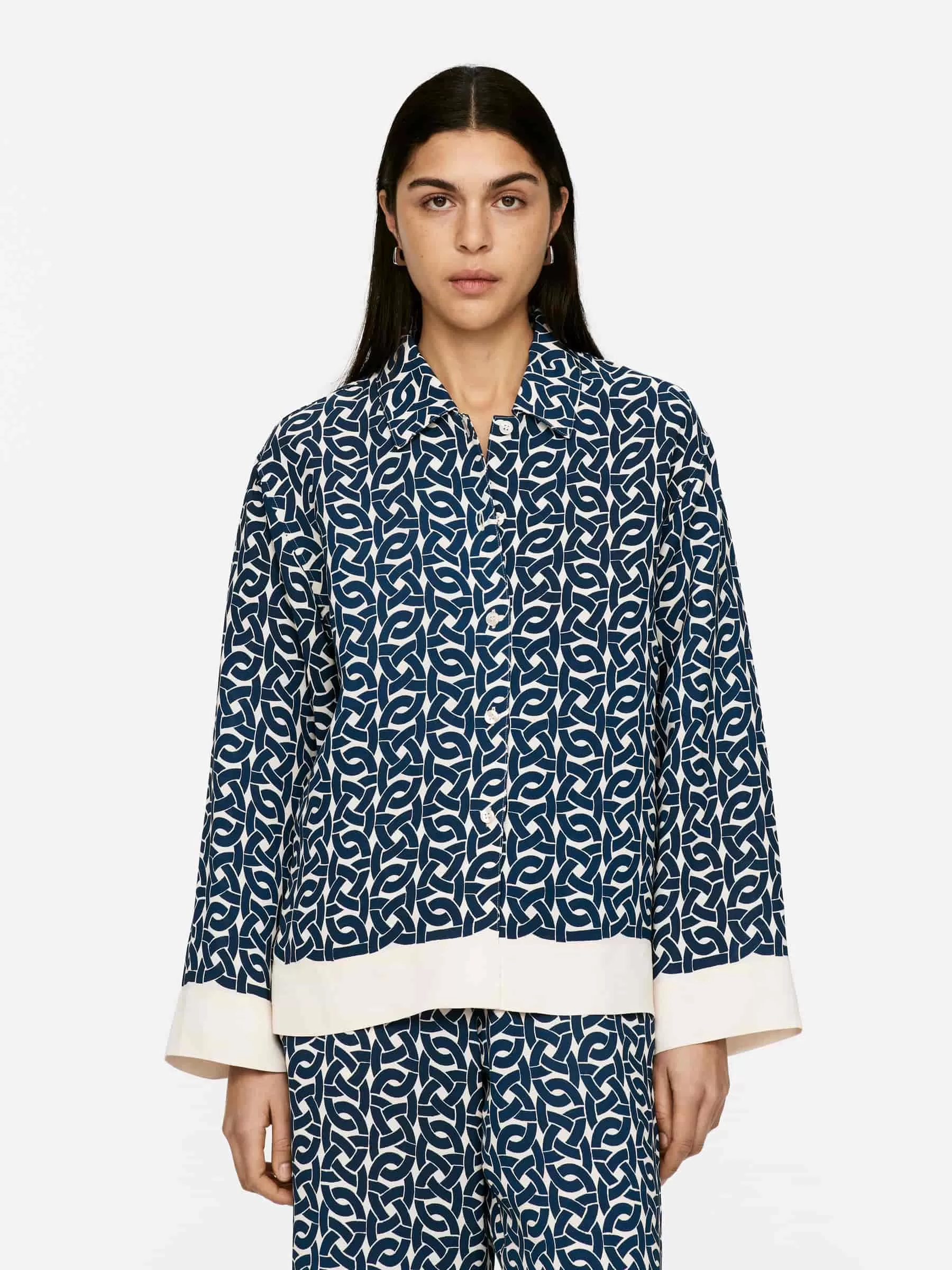 Bedruckte Bluse mit Knopfverschluss und Hemdkragen. Lockere Passform.