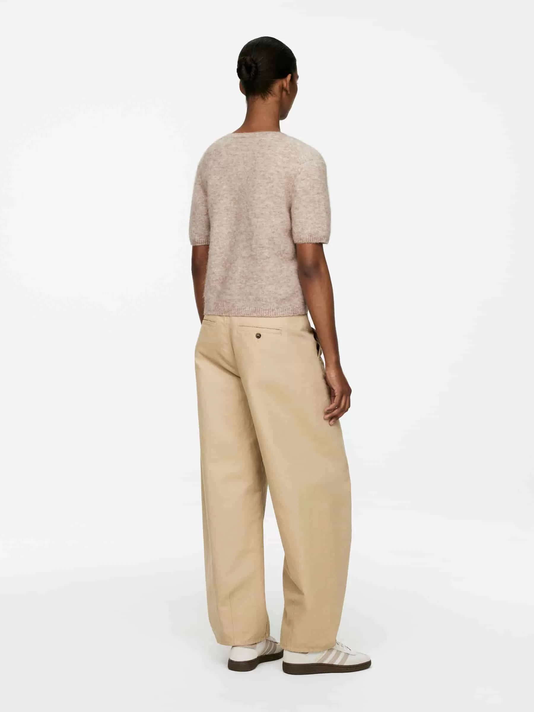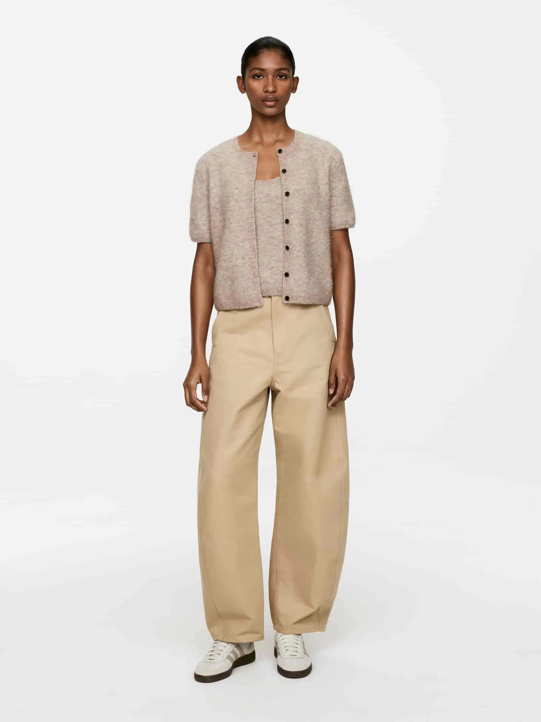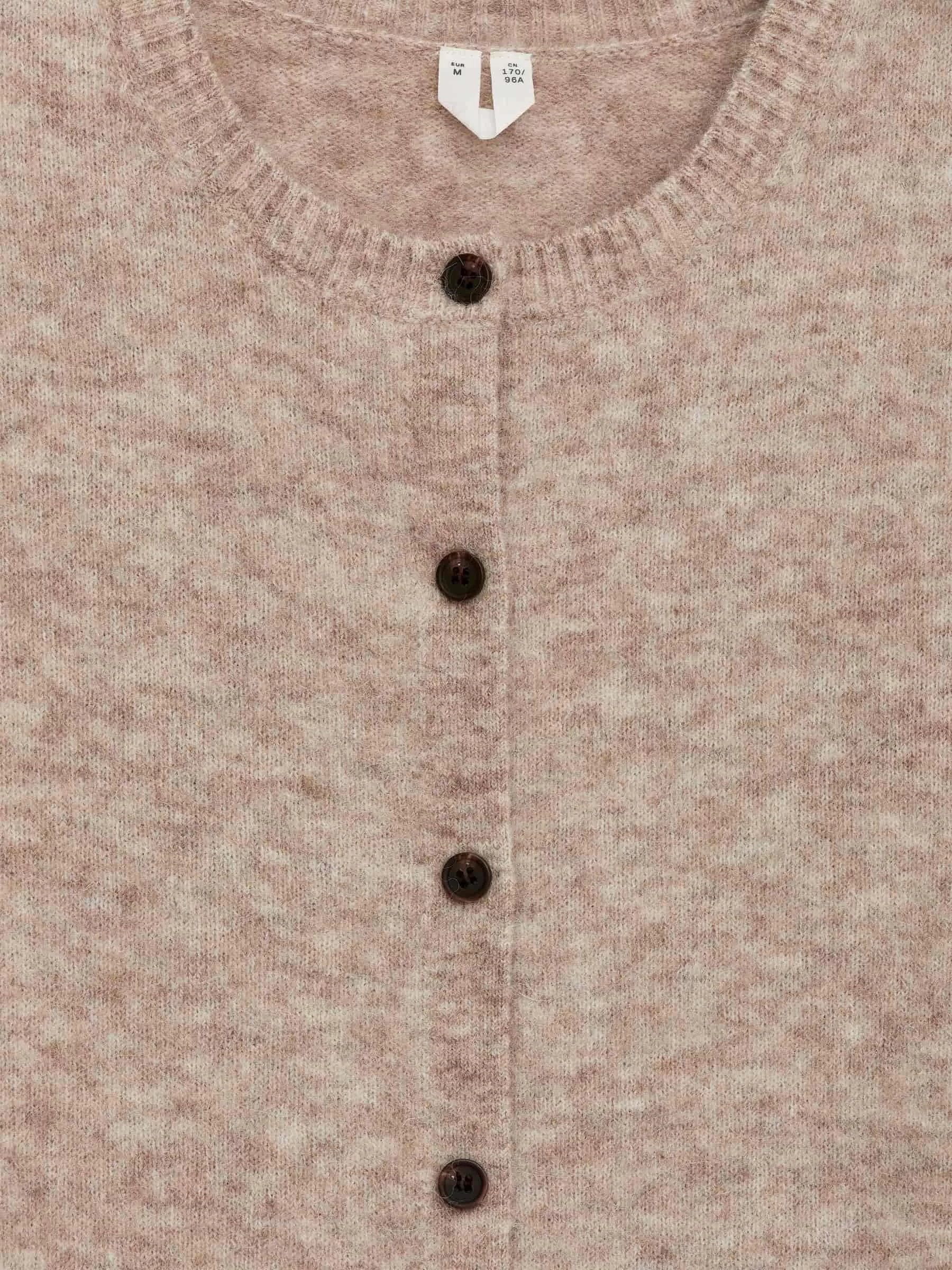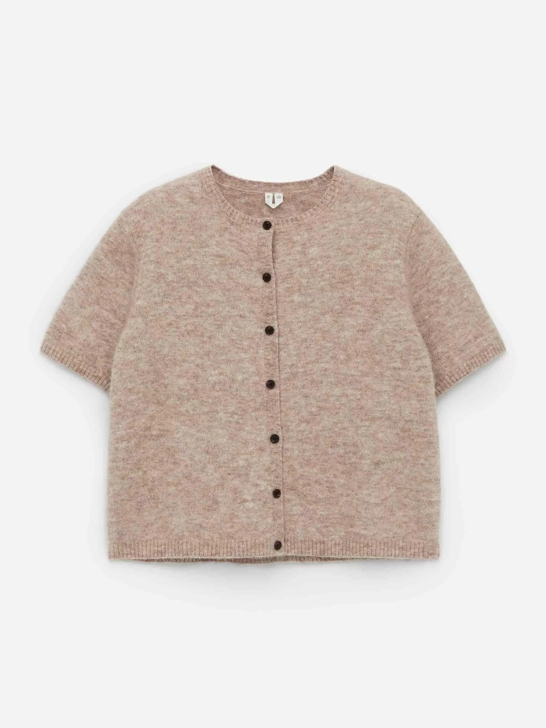 Kurzärmeliger Cardigan, gestrickt aus einer Woll-Alpaka-Mischung. Mit Knopfverschluss und normaler Passform. Dieser Stil enthält 31 % RAS-Alpaka und 31 % RWS-Wolle (TE-00047206). Produkte, die nach dem Responsible Wool Standard (RWS) und dem Responsible Alpaca Standard (RAS) zertifiziert sind, enthalten Wolle und Alpakafasern von Farmen, die unabhängig nach Tierschutz- und Landmanagementanforderungen zertifiziert sind.