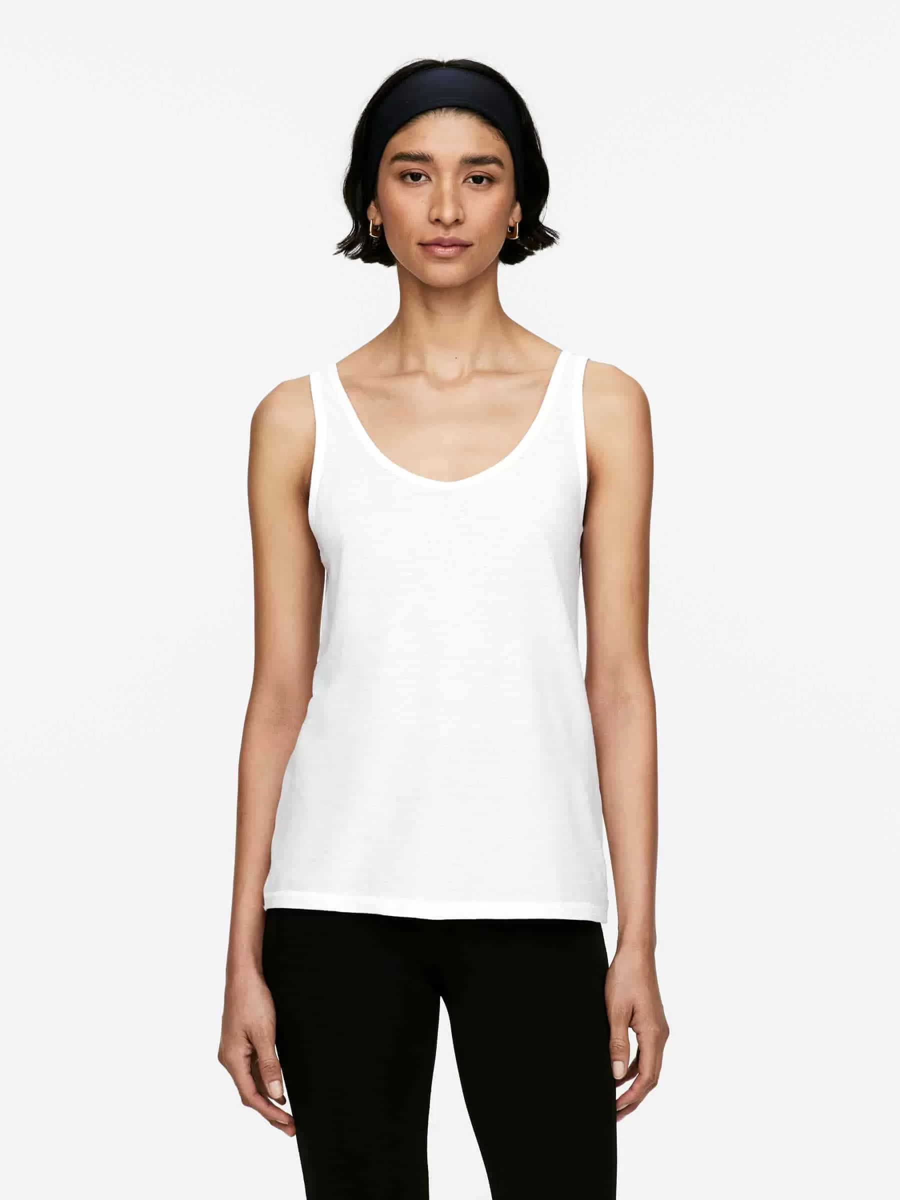 Baumwoll-Tanktop aus fließendem Crêpe mit angenehm griffiger Haptik. Mit U-Ausschnitt vorne und hinten gestylt. Normale Passform.