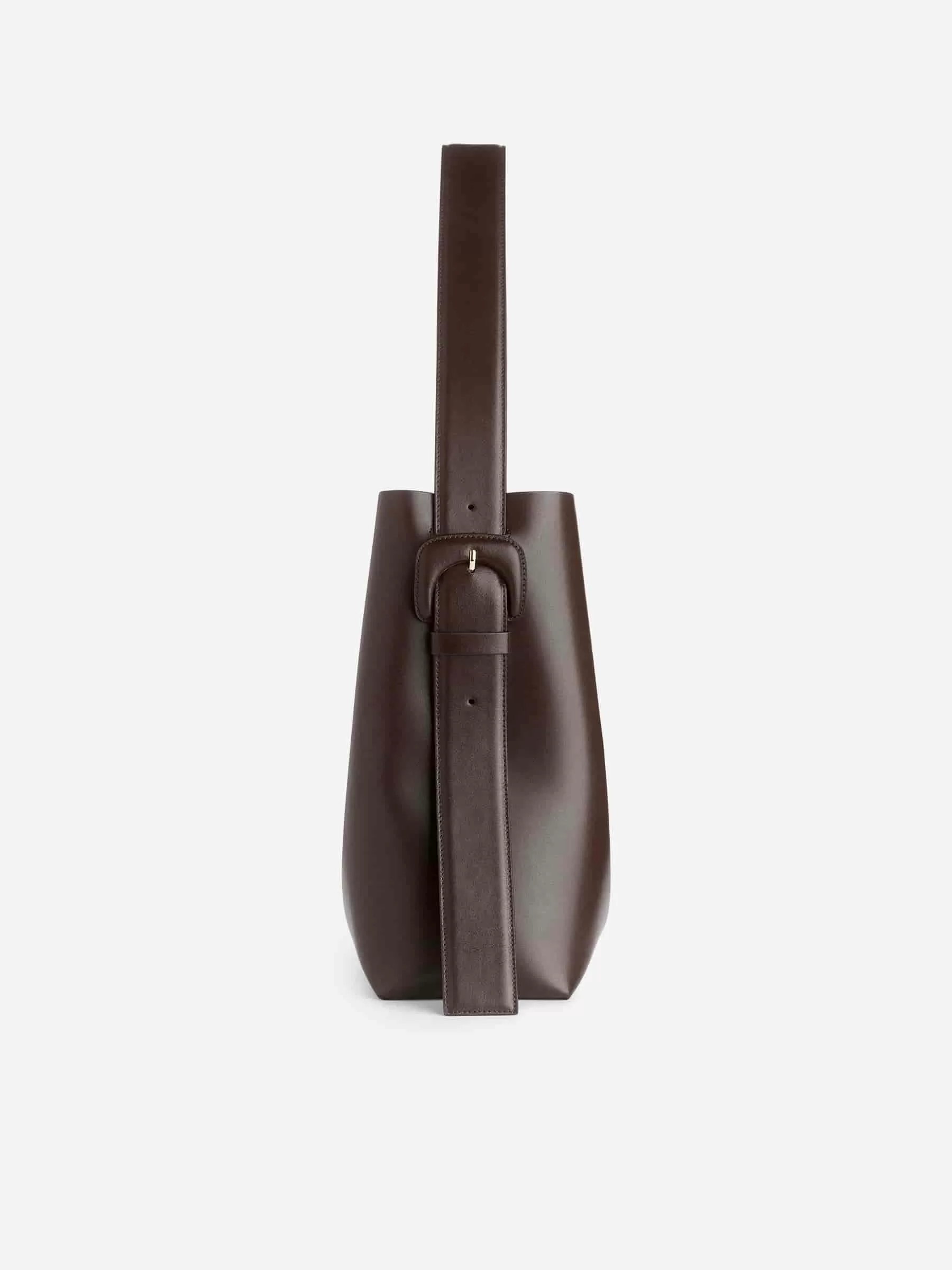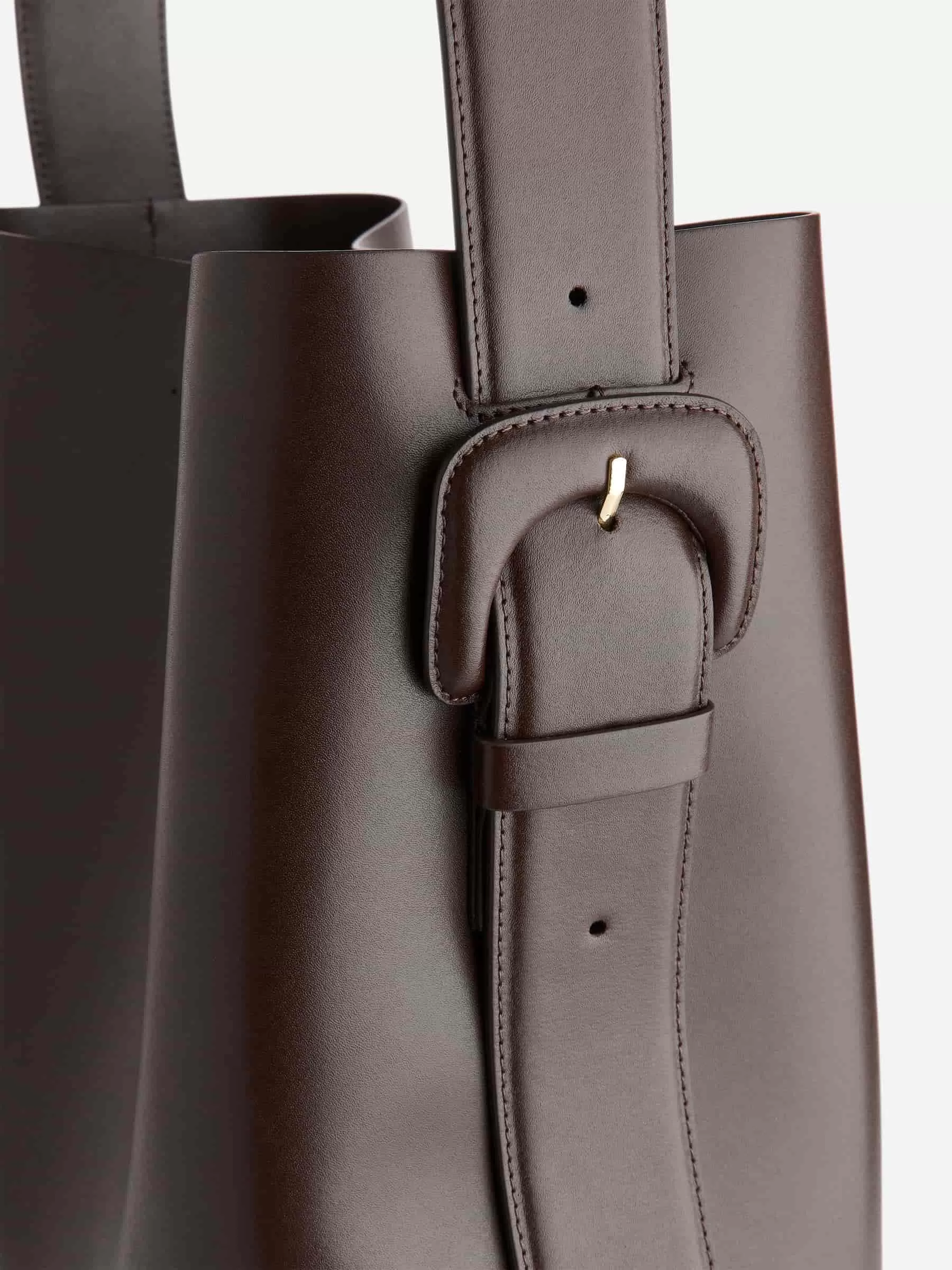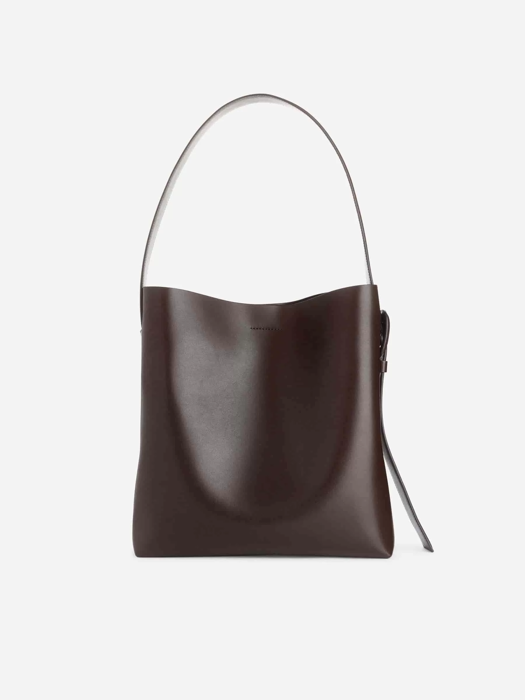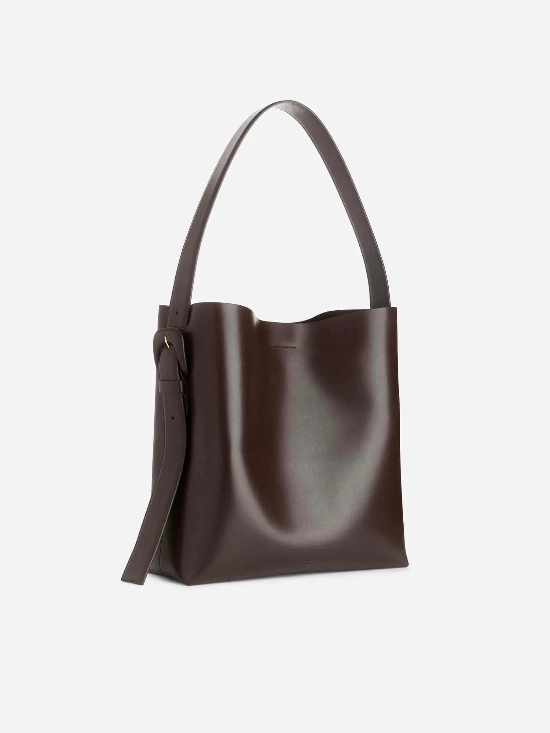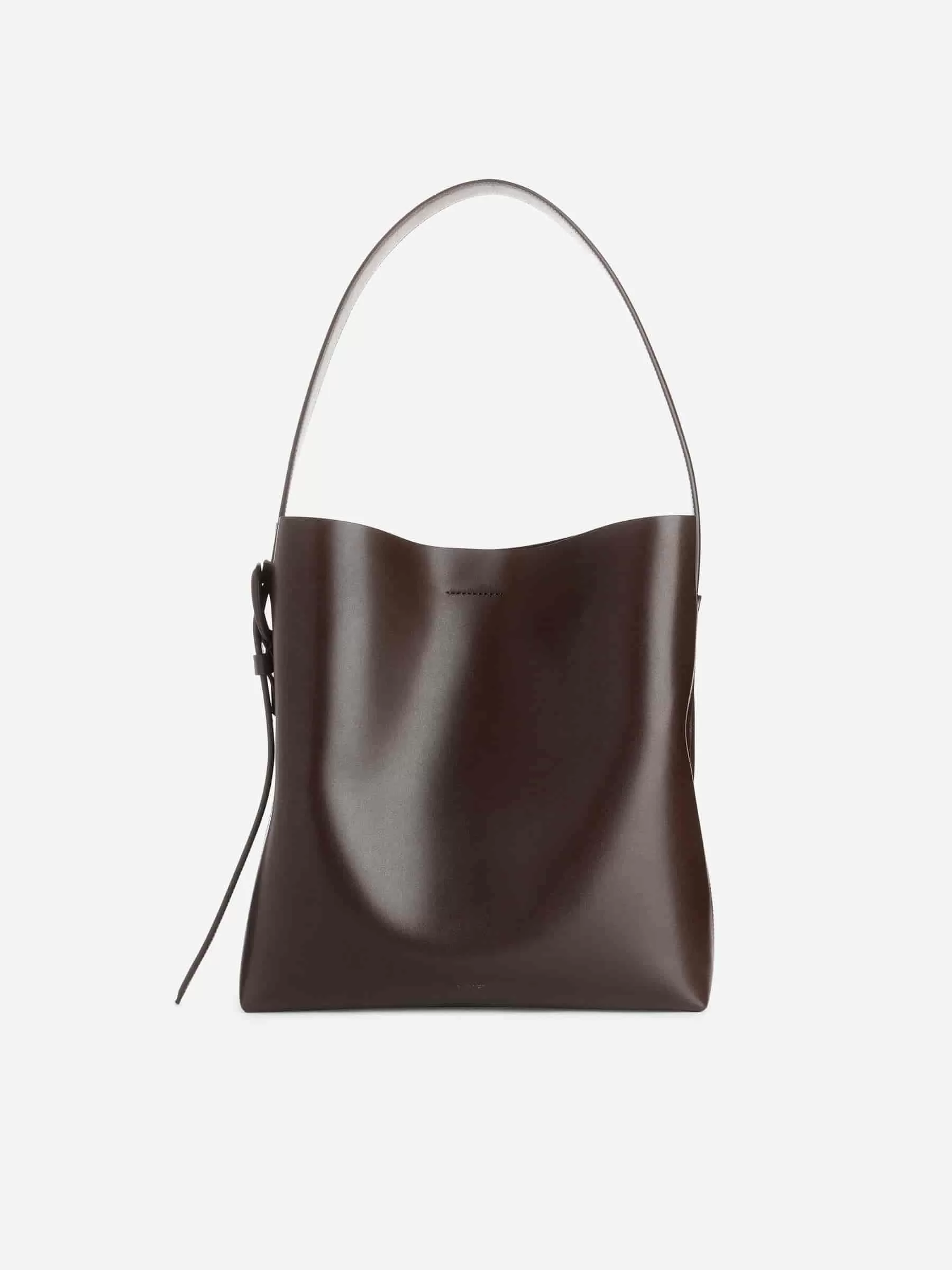 Tragetasche mit halbfester Haptik und geräumig genug für einen Laptop. Ausgestattet mit einem verstellbaren, fünf Zentimeter breiten Schultergurt und Magnetverschluss. Innenfach mit Reißverschluss. Abmessungen 35 cm x 32 cm x 13 cm.