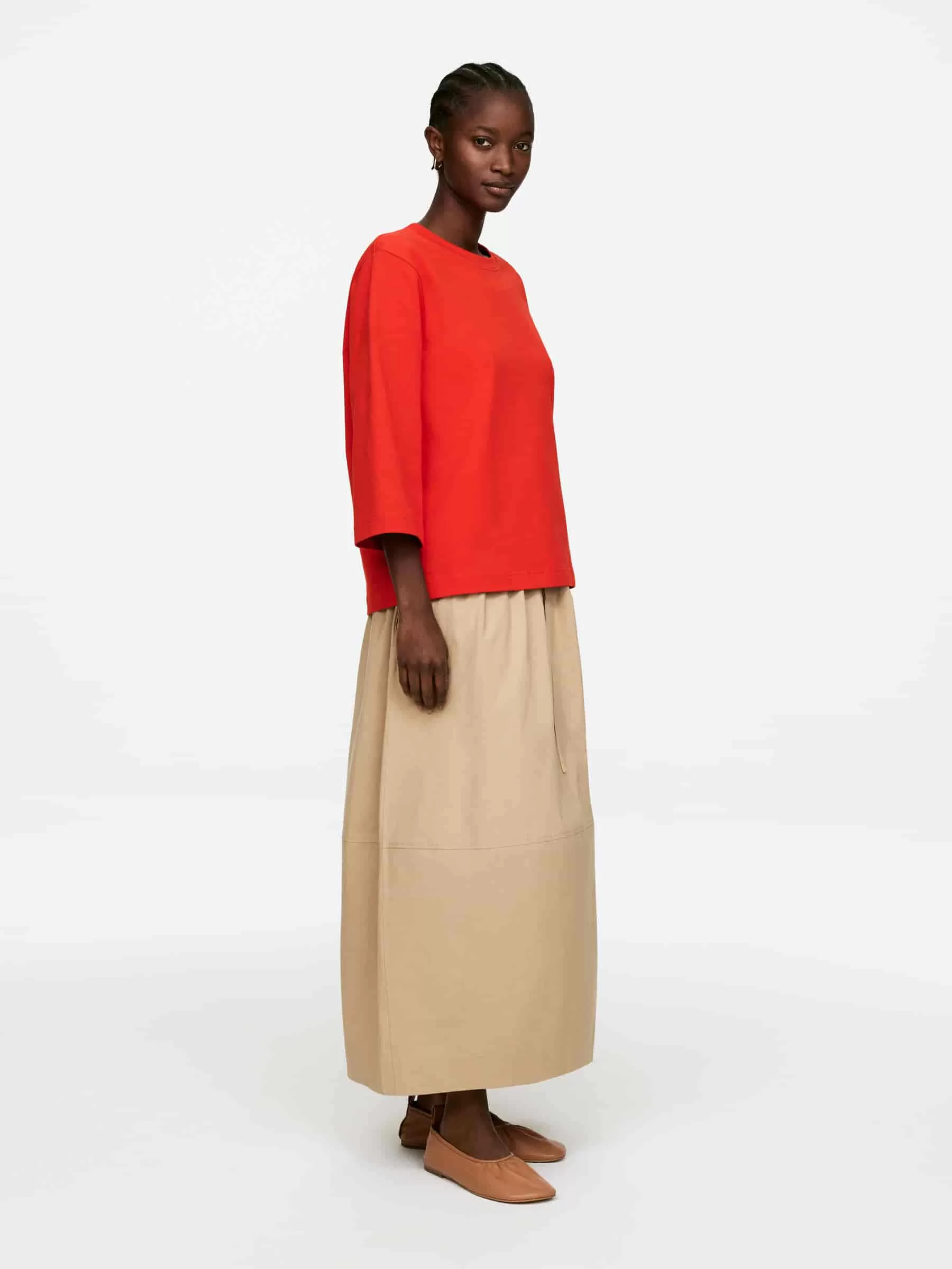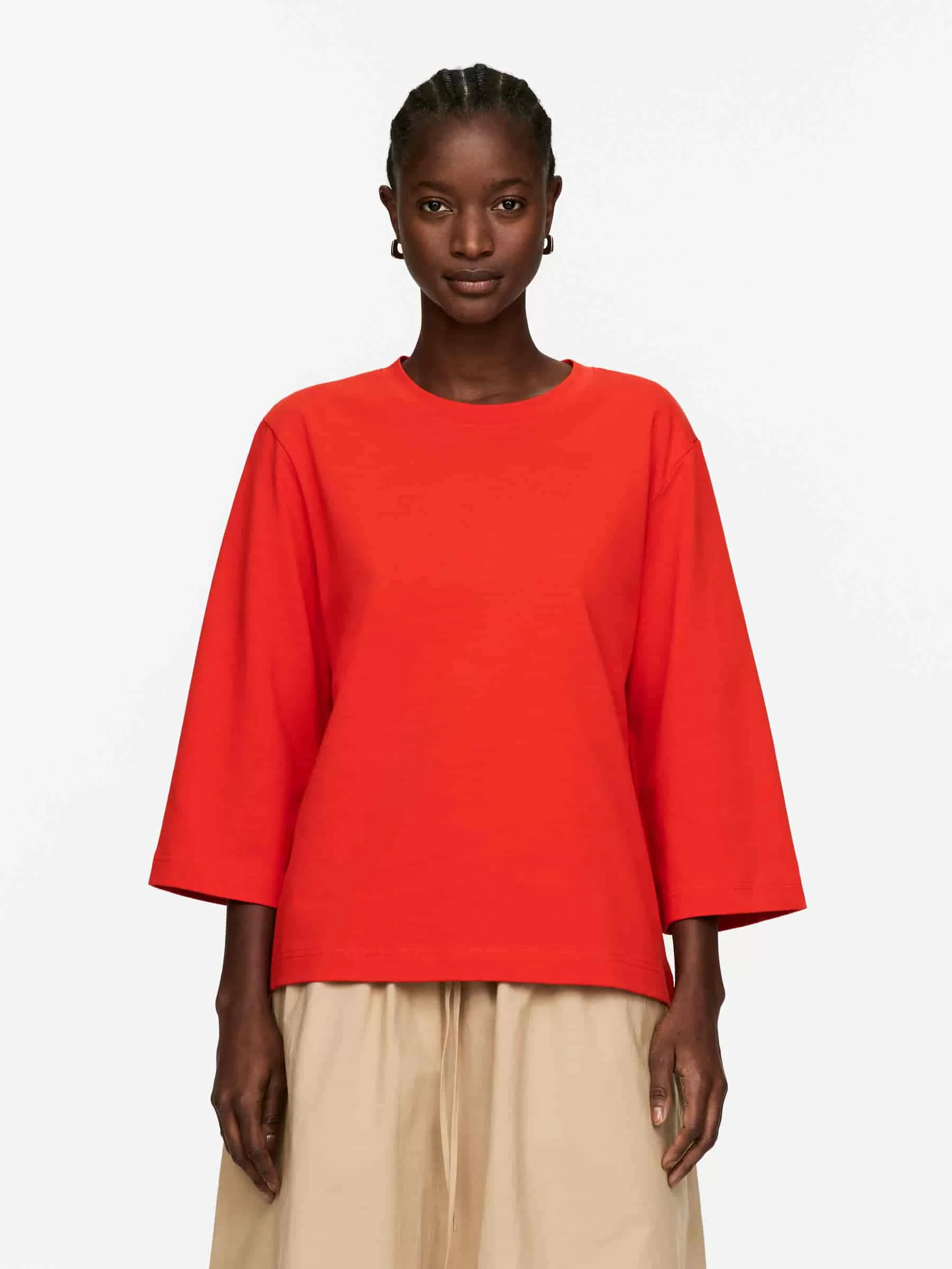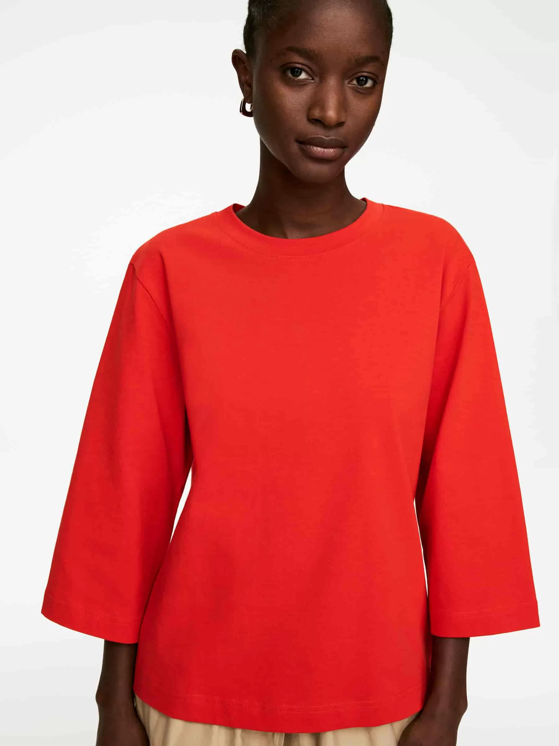 T-Shirt mit Rundhalsausschnitt aus frischem, schwerem Baumwolljersey. Mit 3/4-Ärmeln.