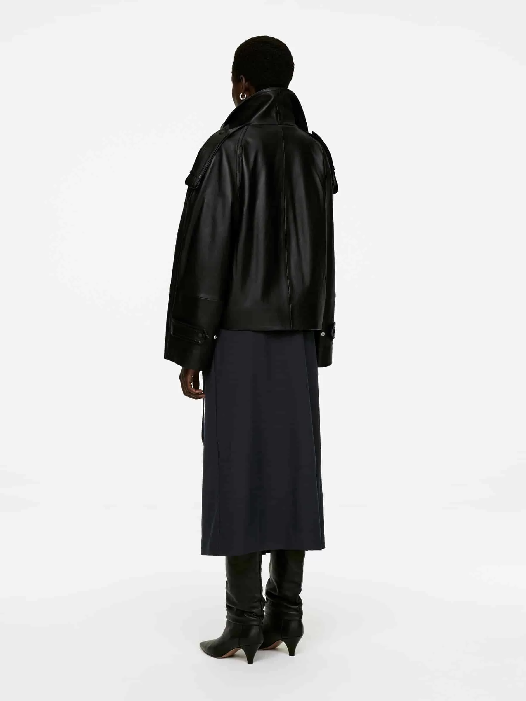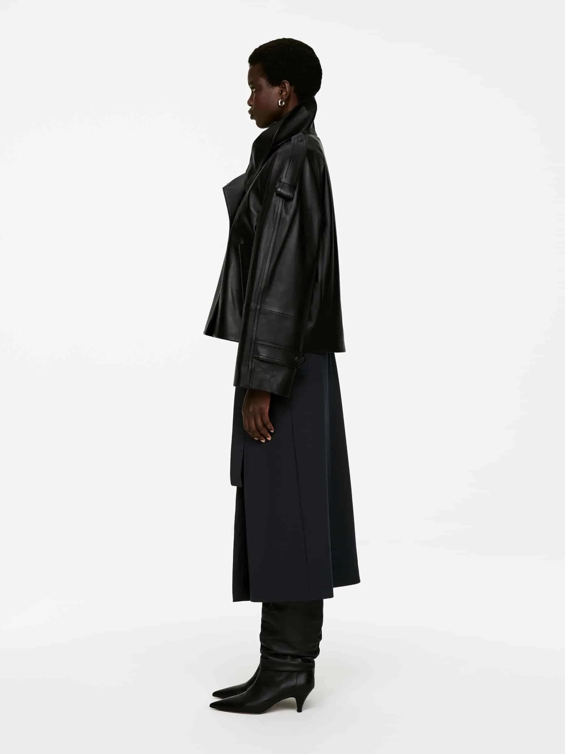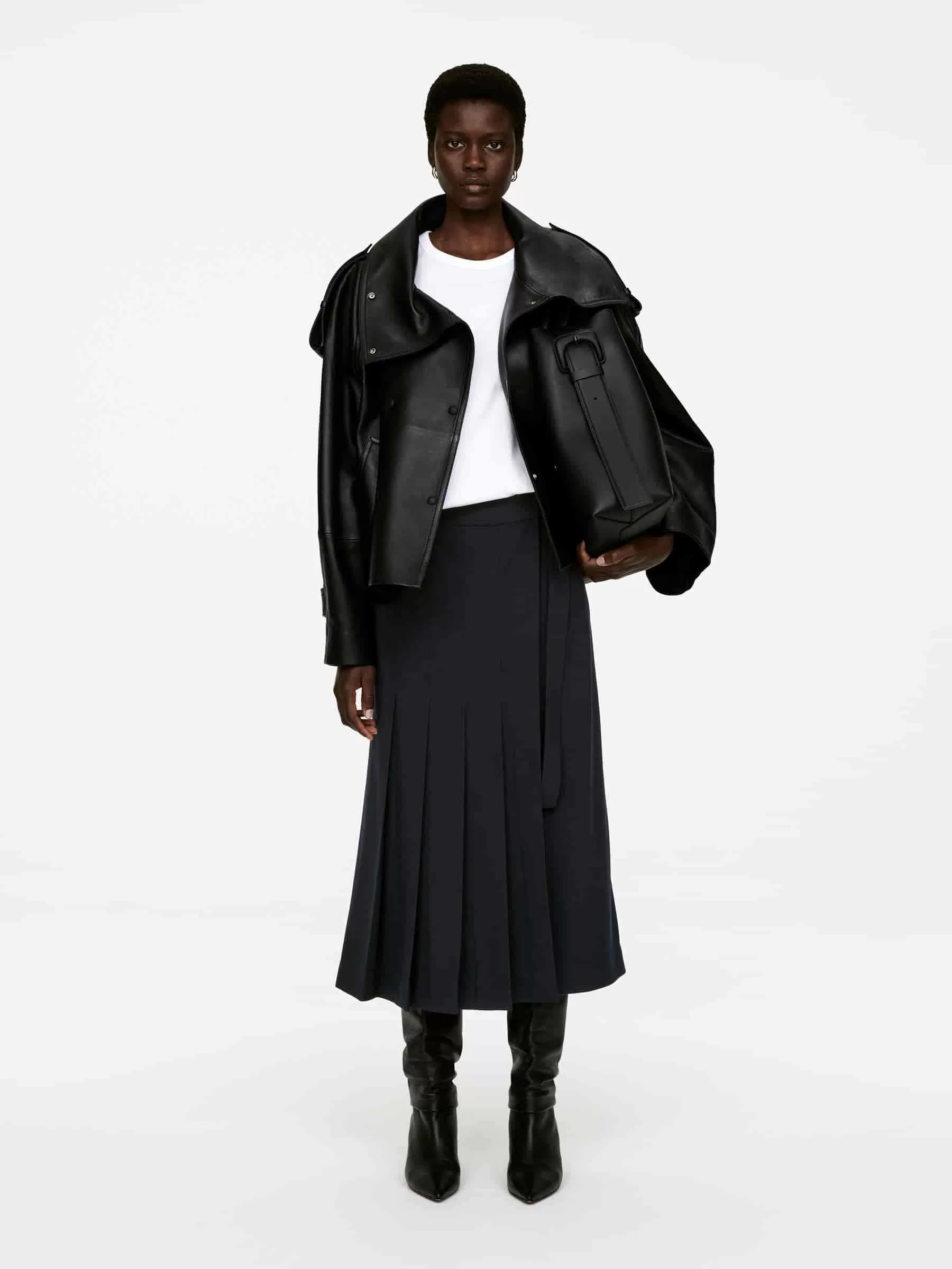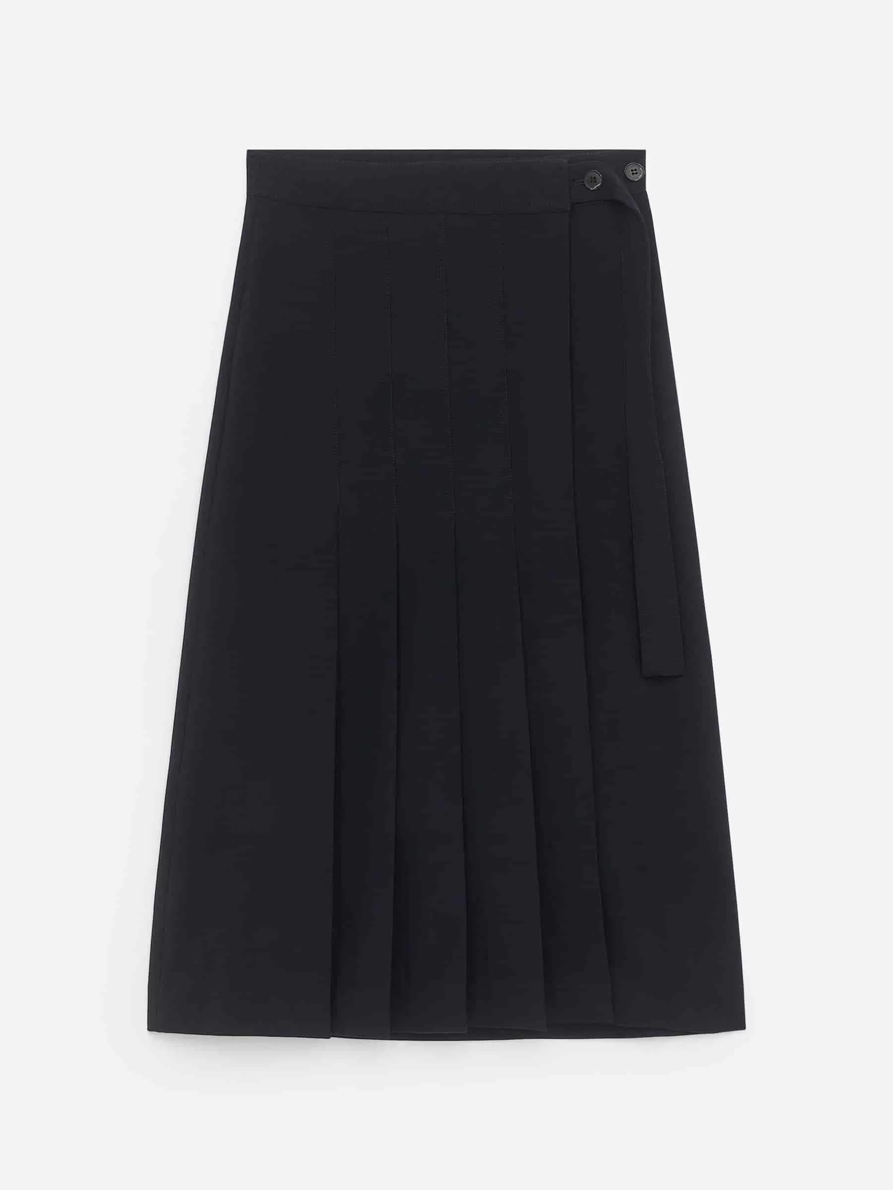 Mittellanger Rock mit Faltendetails und Wickelfront. Dies ist ein gerade geschnittener Rock mit einem Gürteldetail an der Taille. Der Rock besteht zu 50 % aus RWS-Wolle (TE-00047206). Produkte, die nach dem Responsible Wool Standard (RWS) zertifiziert sind, enthalten Wollfasern von Farmen, die unabhängig nach Tierschutz- und Landbewirtschaftungsanforderungen zertifiziert sind.