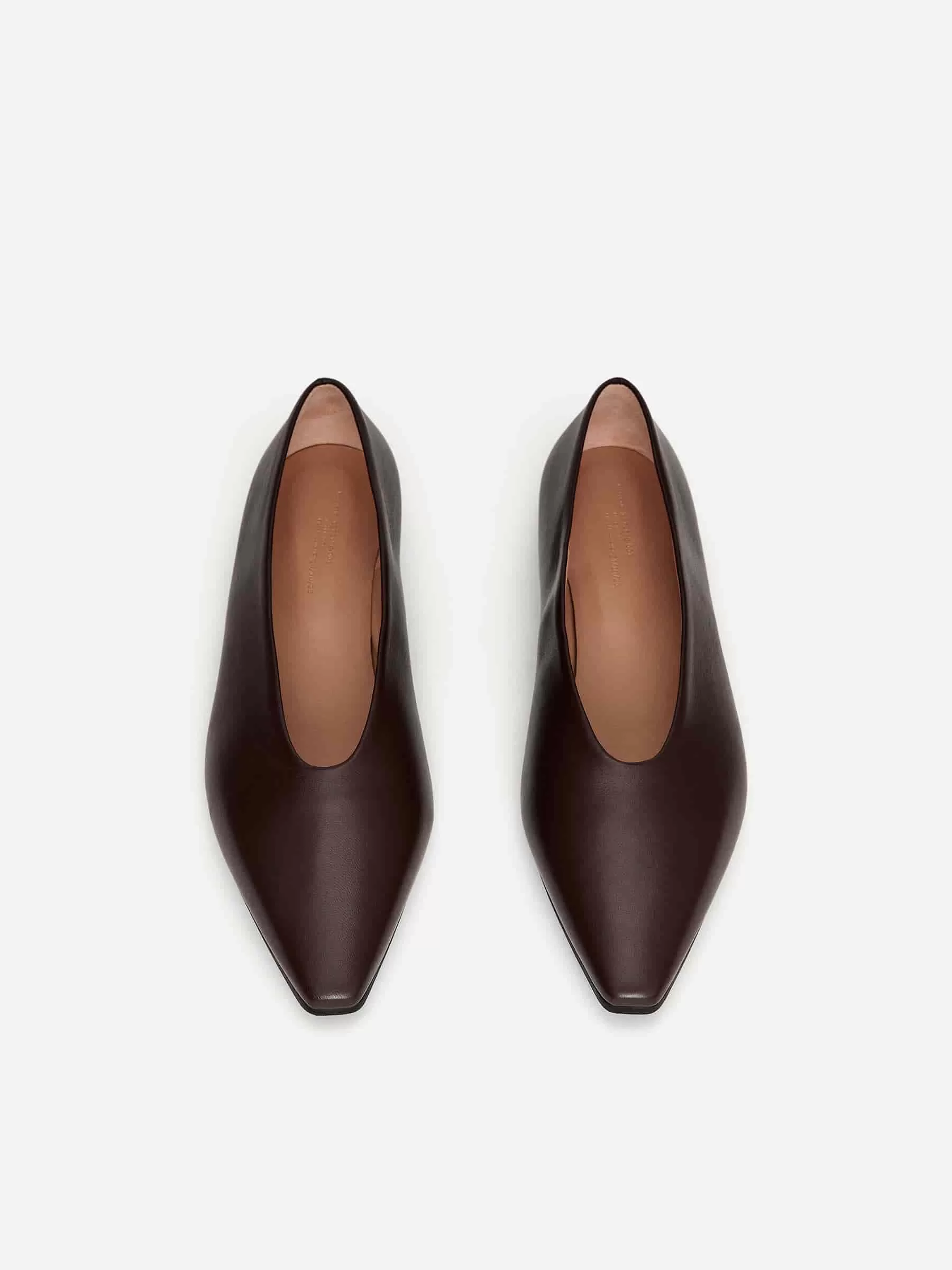 Lederhalbschuhe mit spitzer Spitze und eiförmiger Oberlinie.