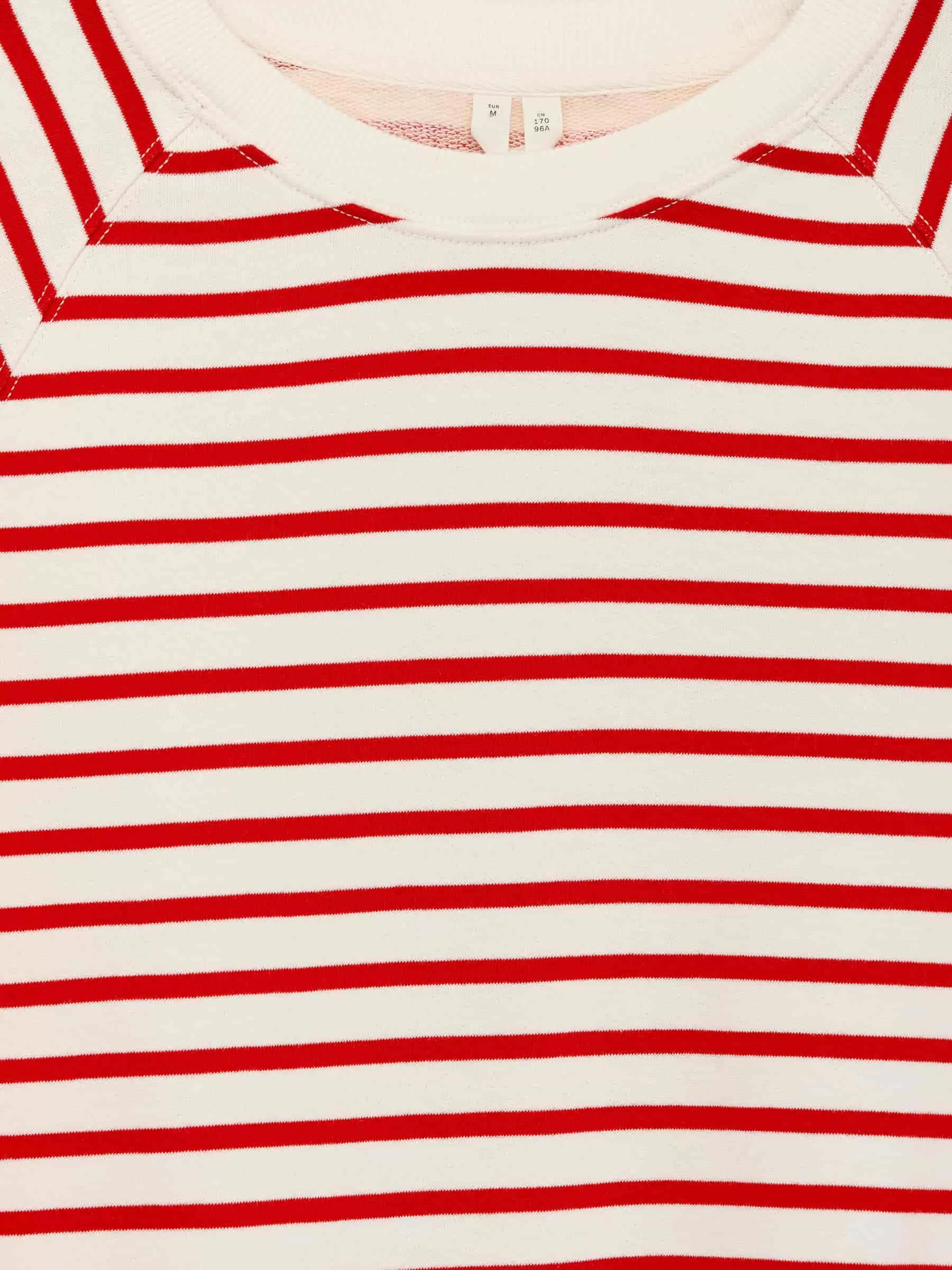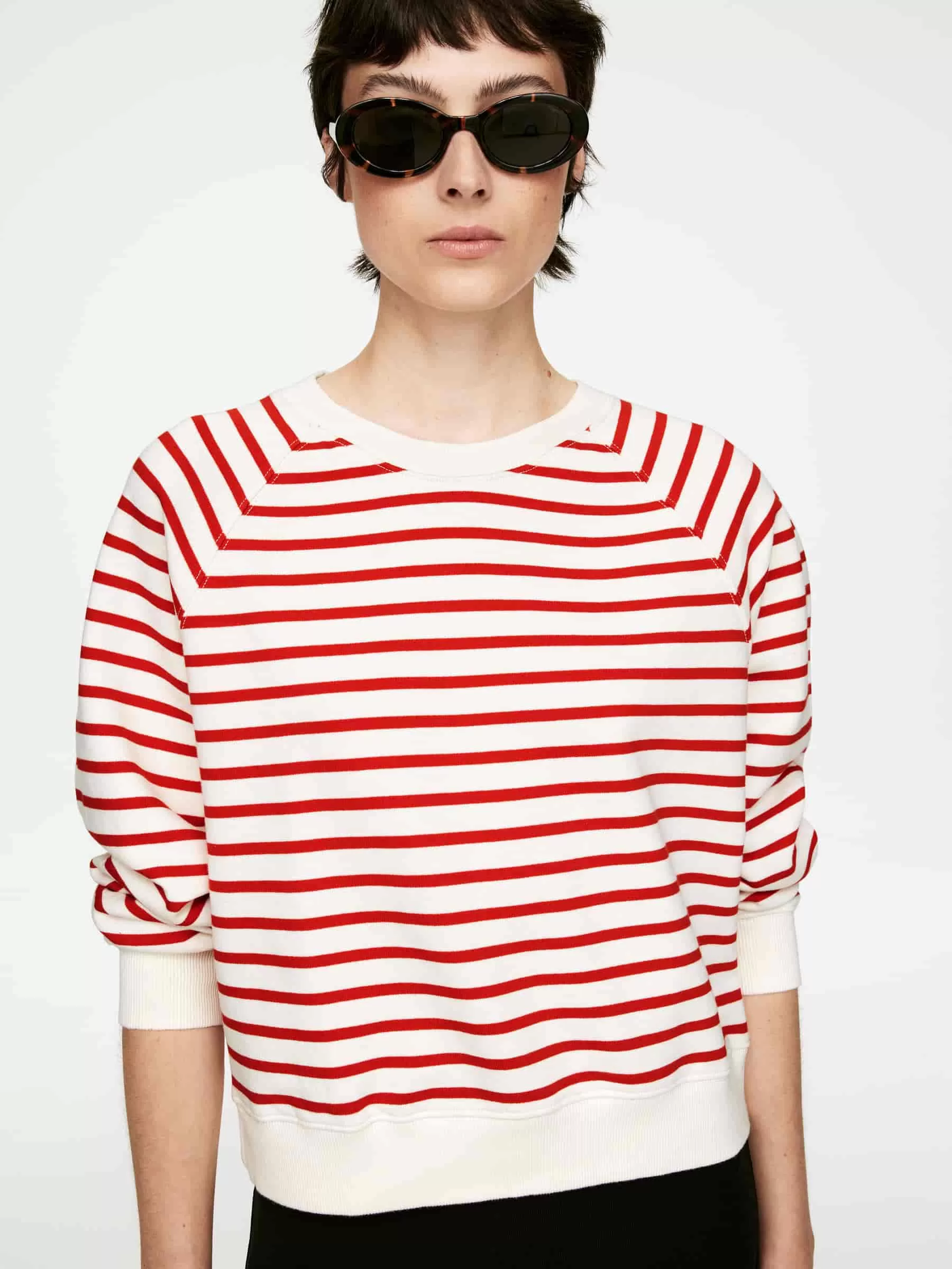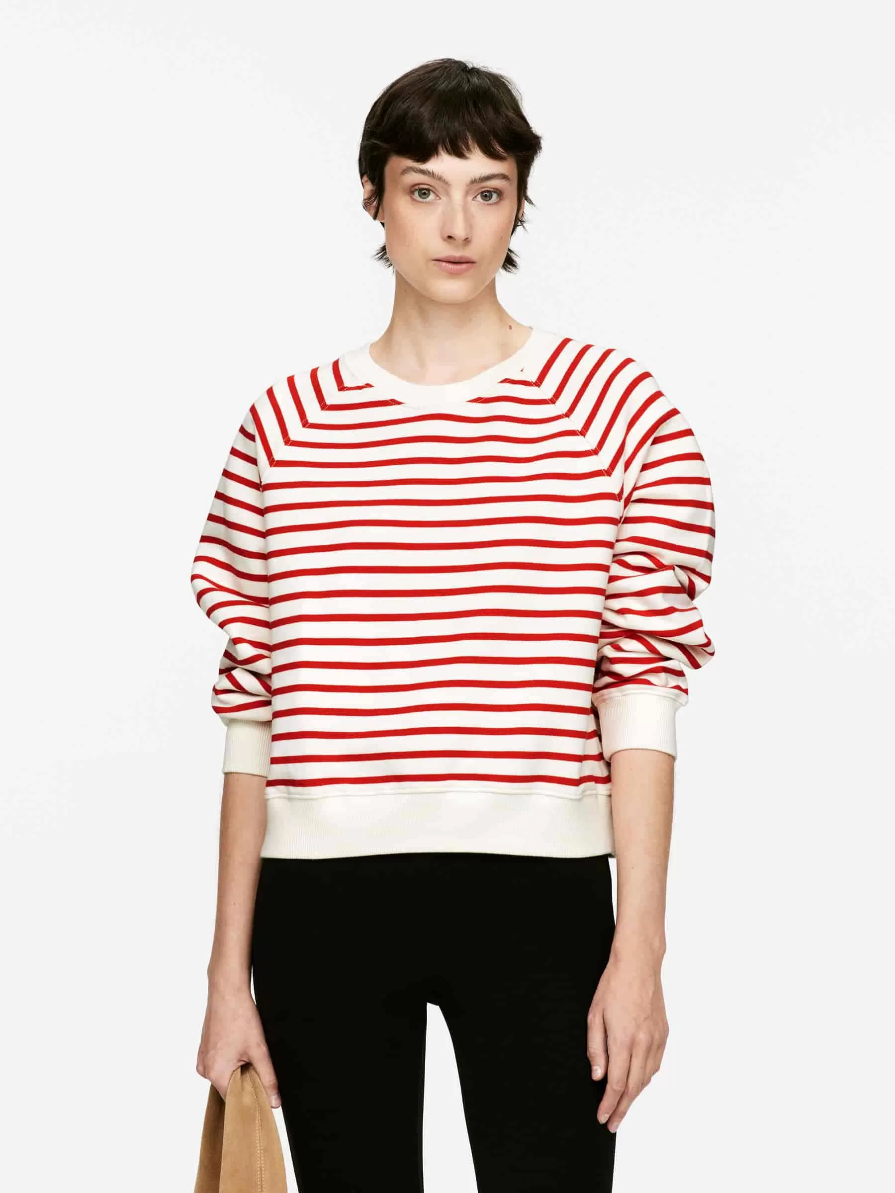 Sweatshirt mit Rundhalsausschnitt aus garngefärbter French-Terry-Baumwolle. Ein leicht verkürzter Stil mit Raglanärmeln und gerippten Abschlüssen. Normale Passform.