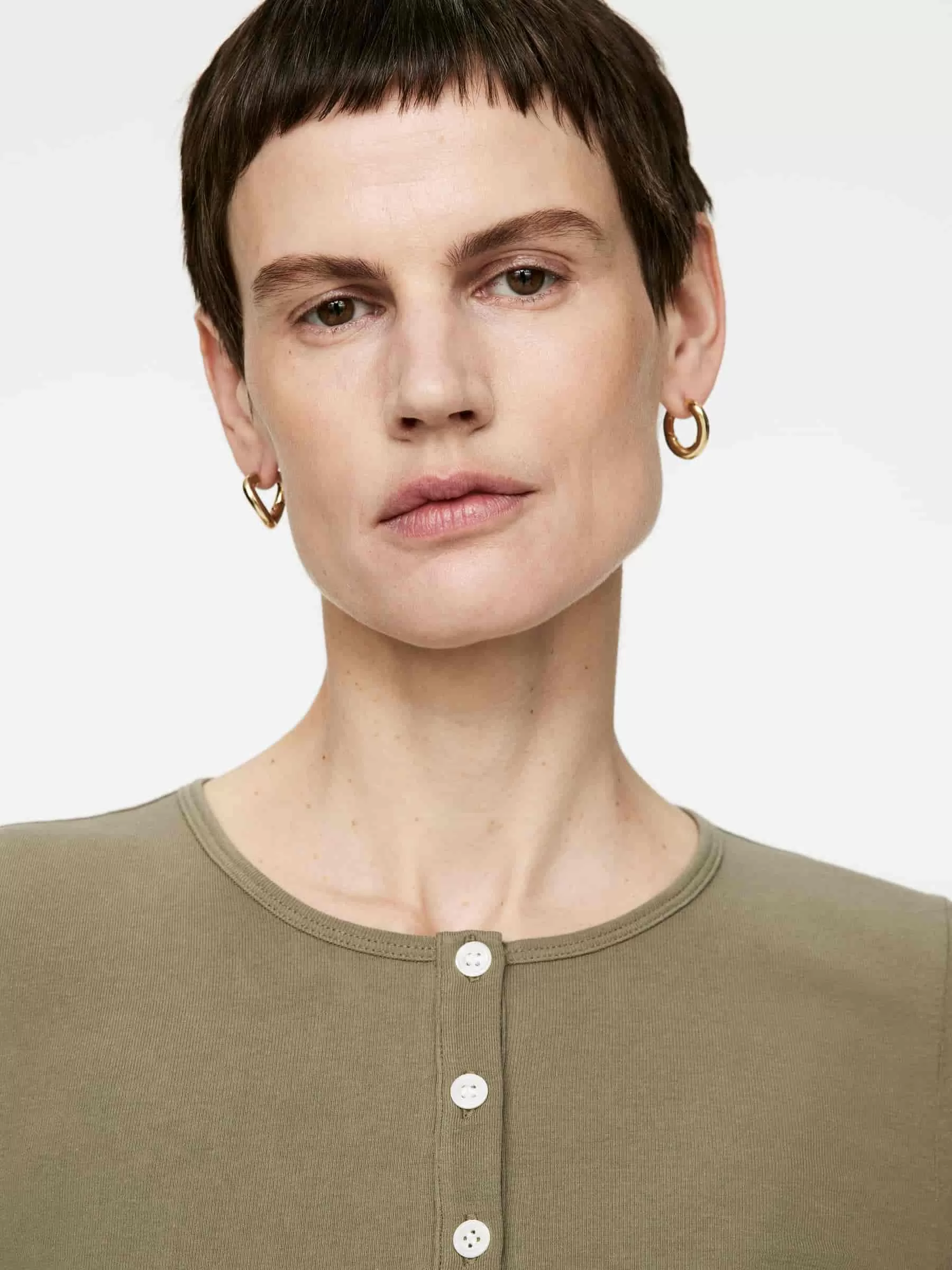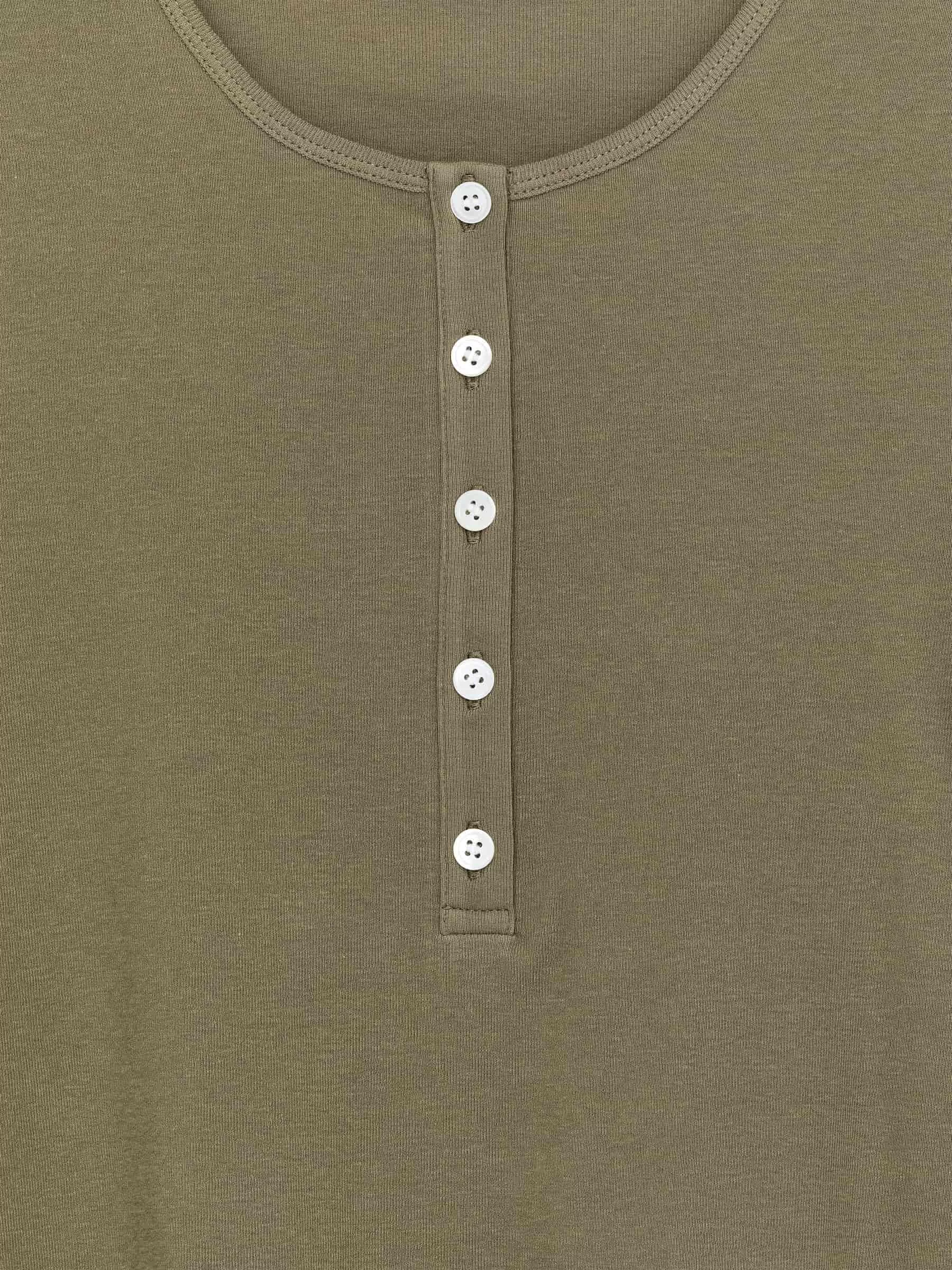 ARKE Damen Geripptes Henley-Top Khakigrün