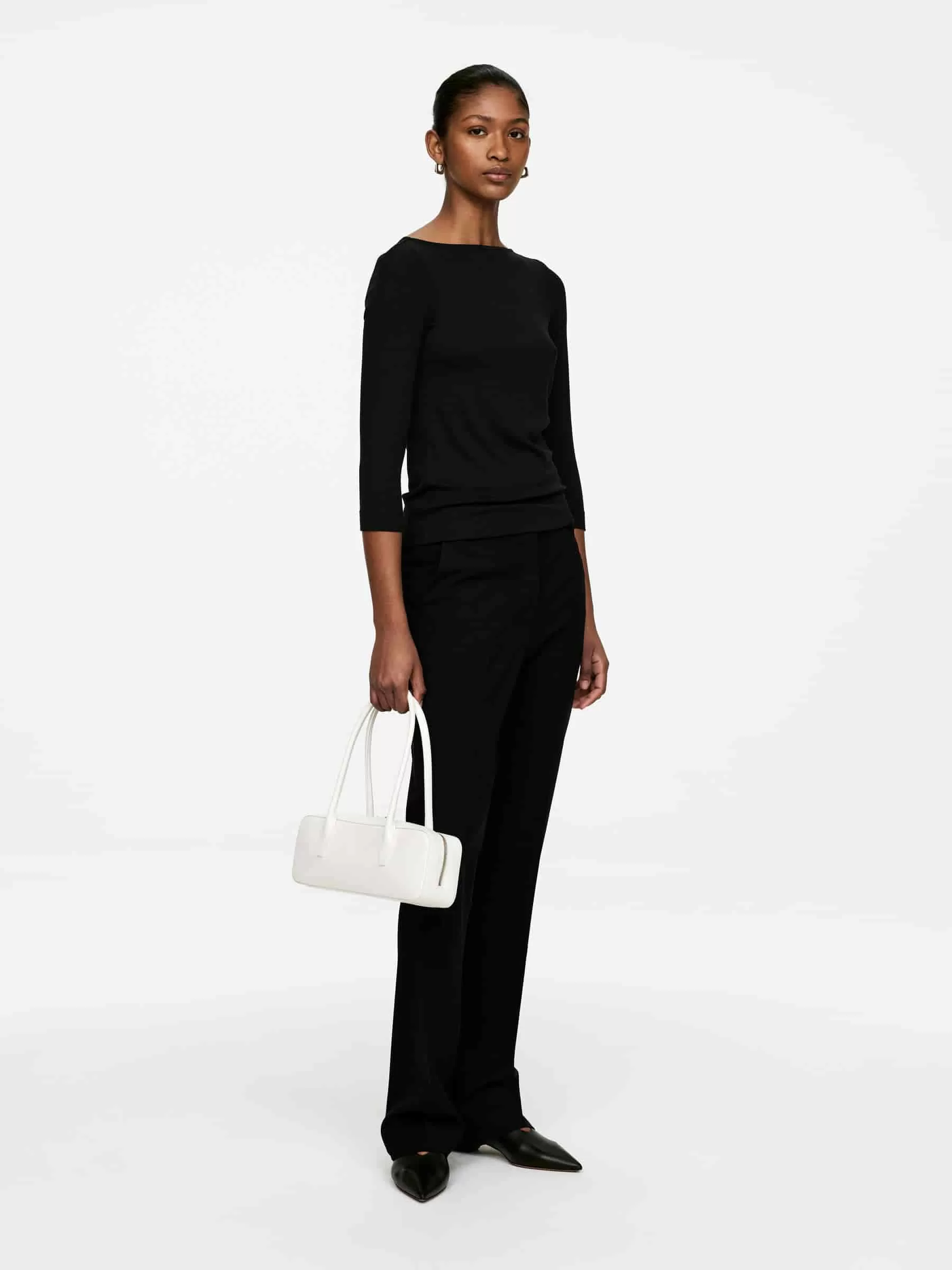 Rippstrickoberteil aus Lyocell. Ein schmal geschnittener Stil mit 3/4-Ärmeln.