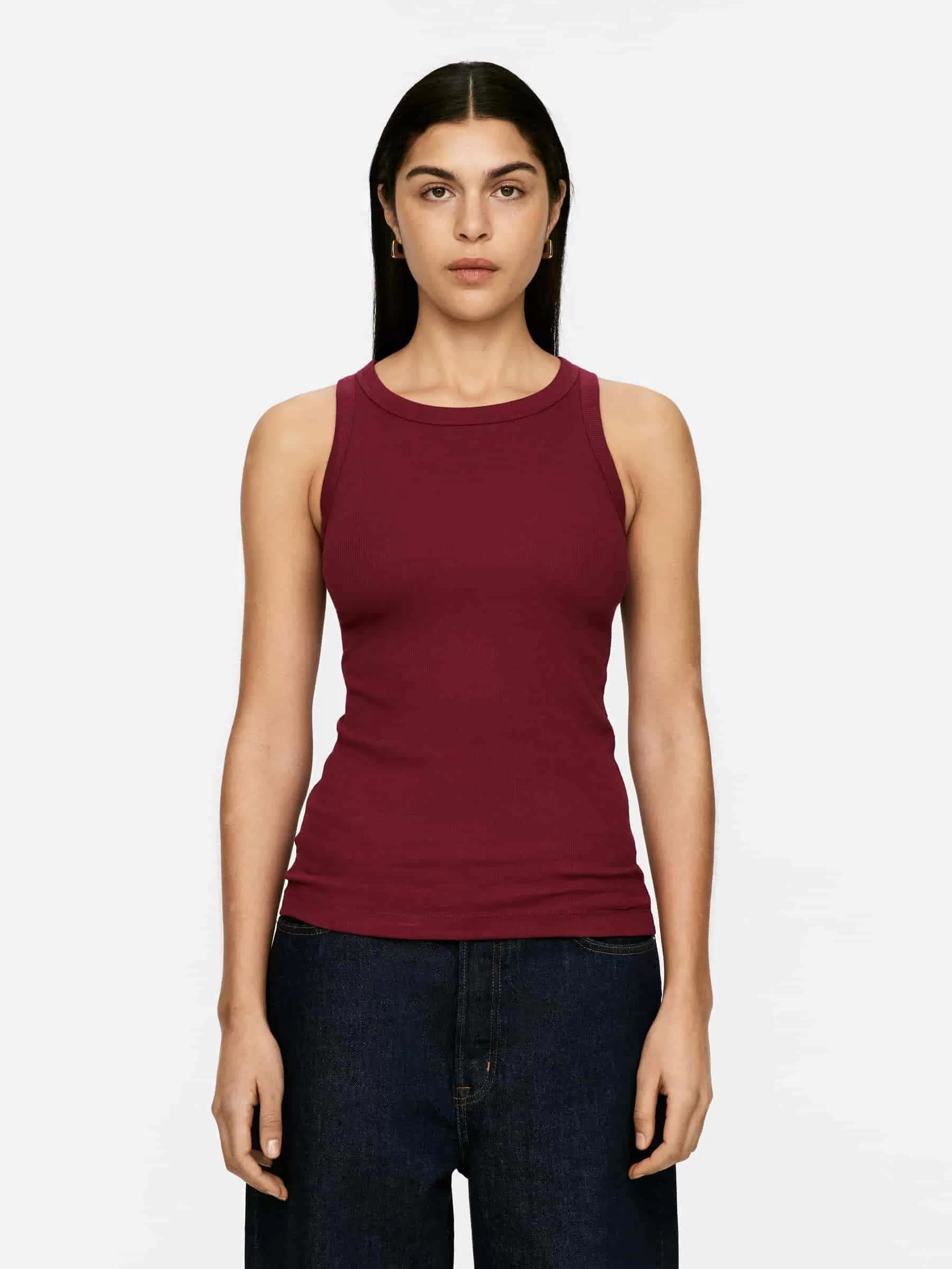 Slim-Fit-Tanktop aus weichem, geripptem Jerseystoff aus Baumwolle mit einem Hauch Elastan. Entworfen mit einem schmeichelnden Racer-förmigen Ausschnitt und Rücken.