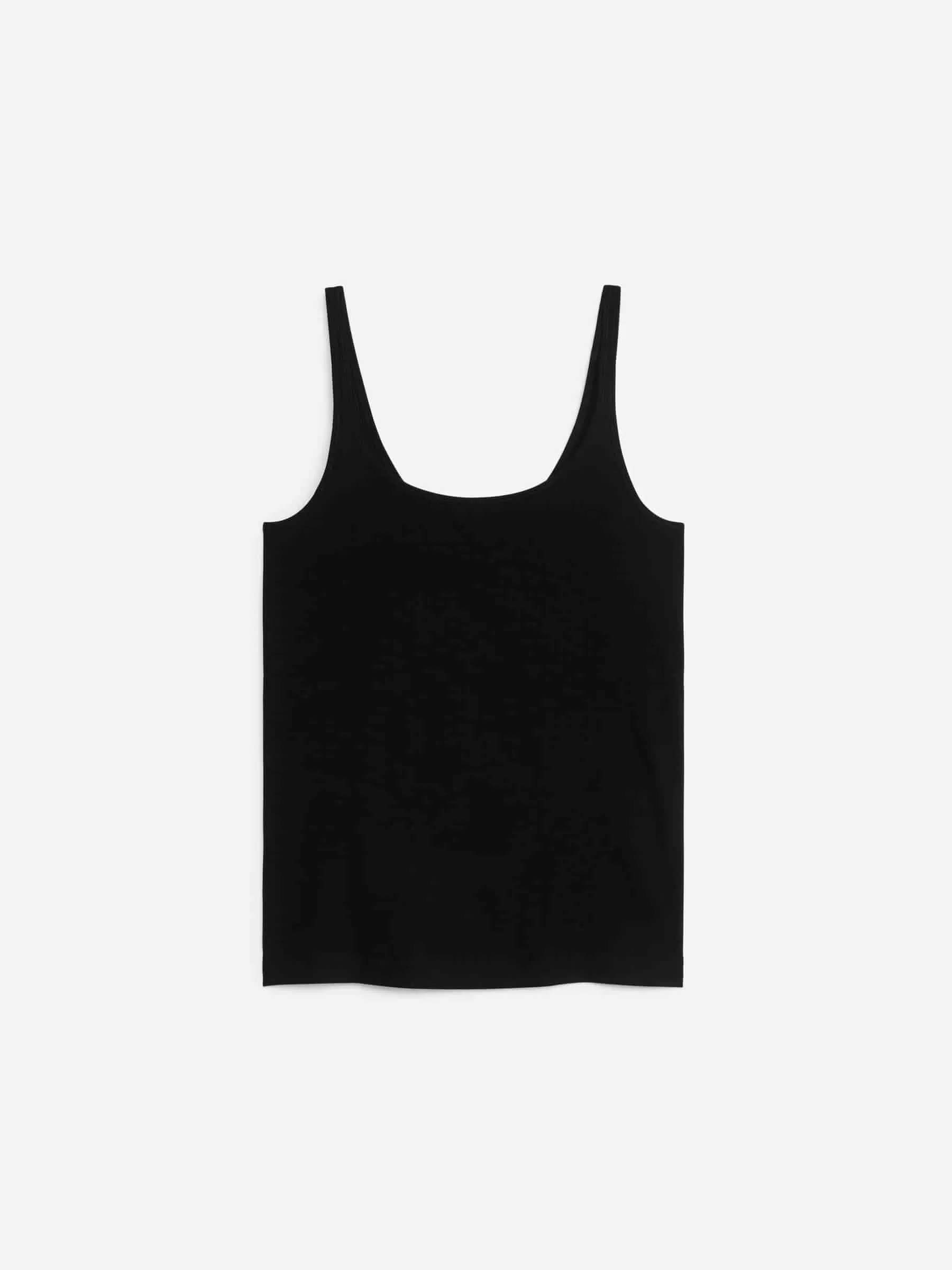 Tanktop aus rippgestricktem Baumwolljersey. Mit tiefem Ausschnitt und schmalen Trägern.
