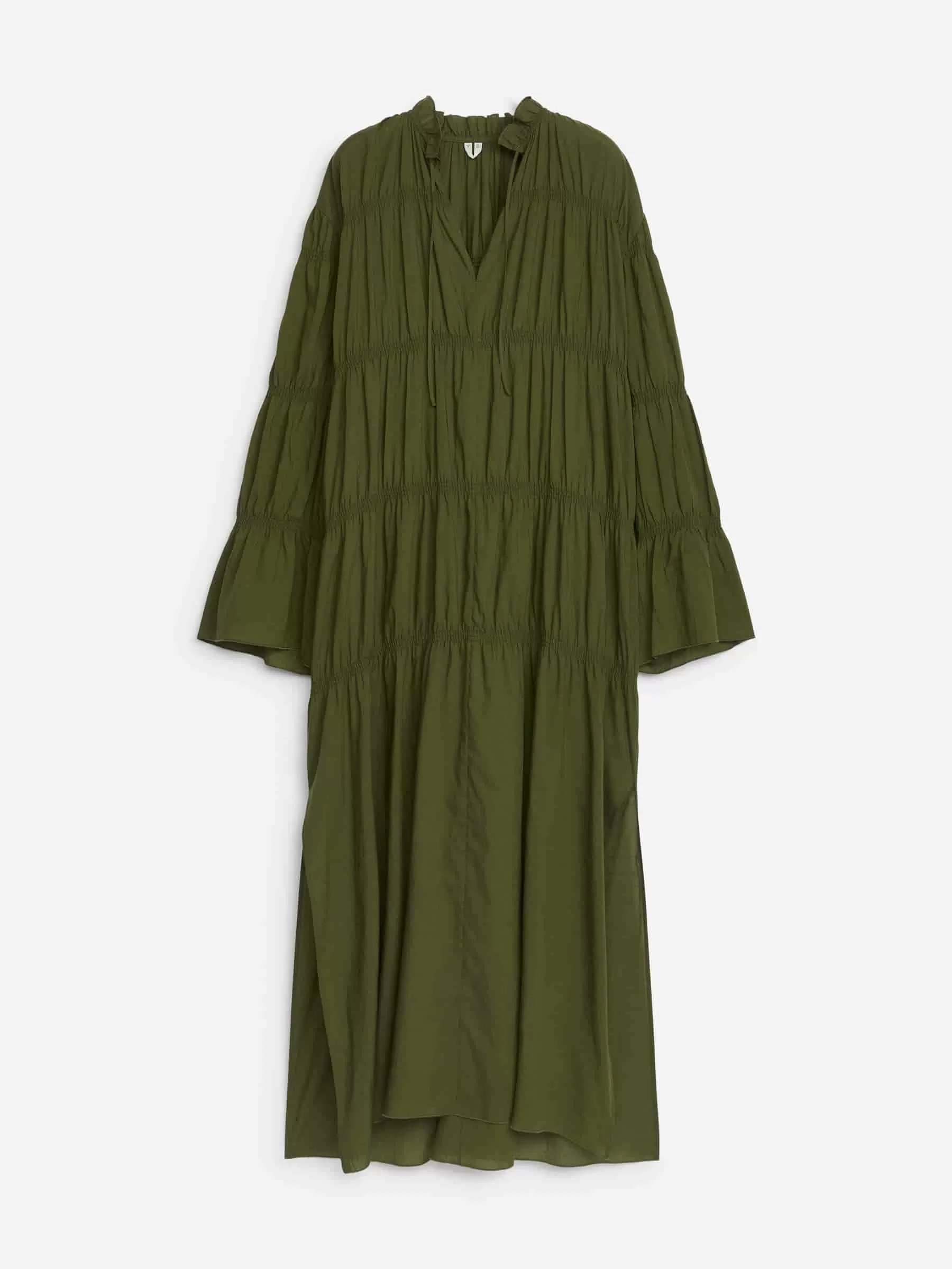 ARKE Damen Gesmoktes Maxikleid Dunkelgrün