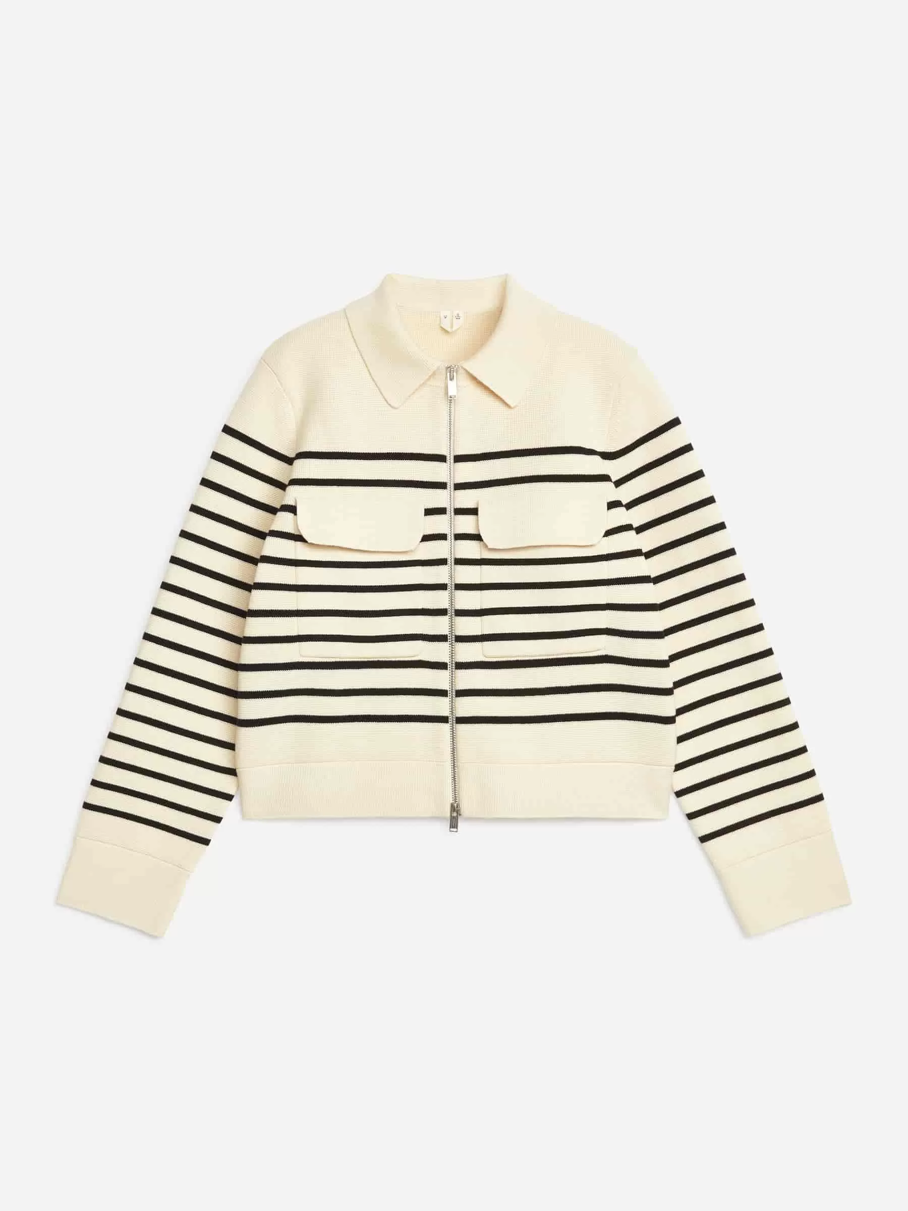 ARKE Damen Gestrickte Baumwolljacke Gebrochenes Weiß/Marineblau