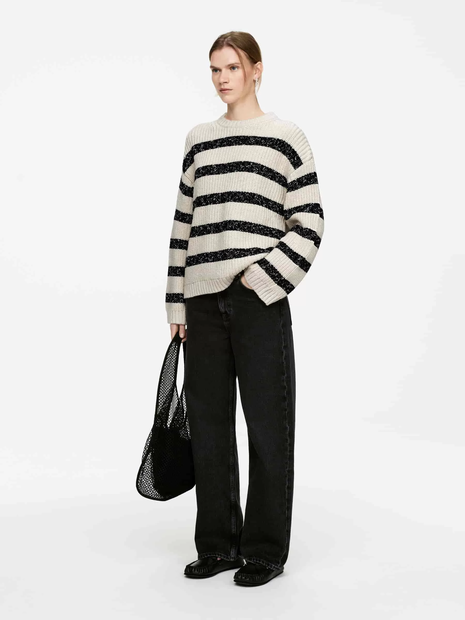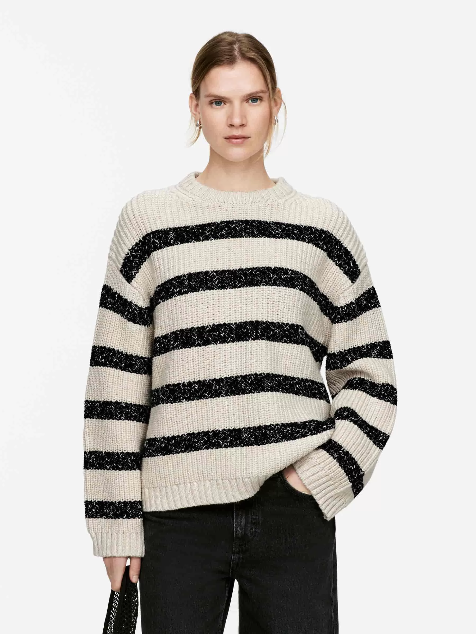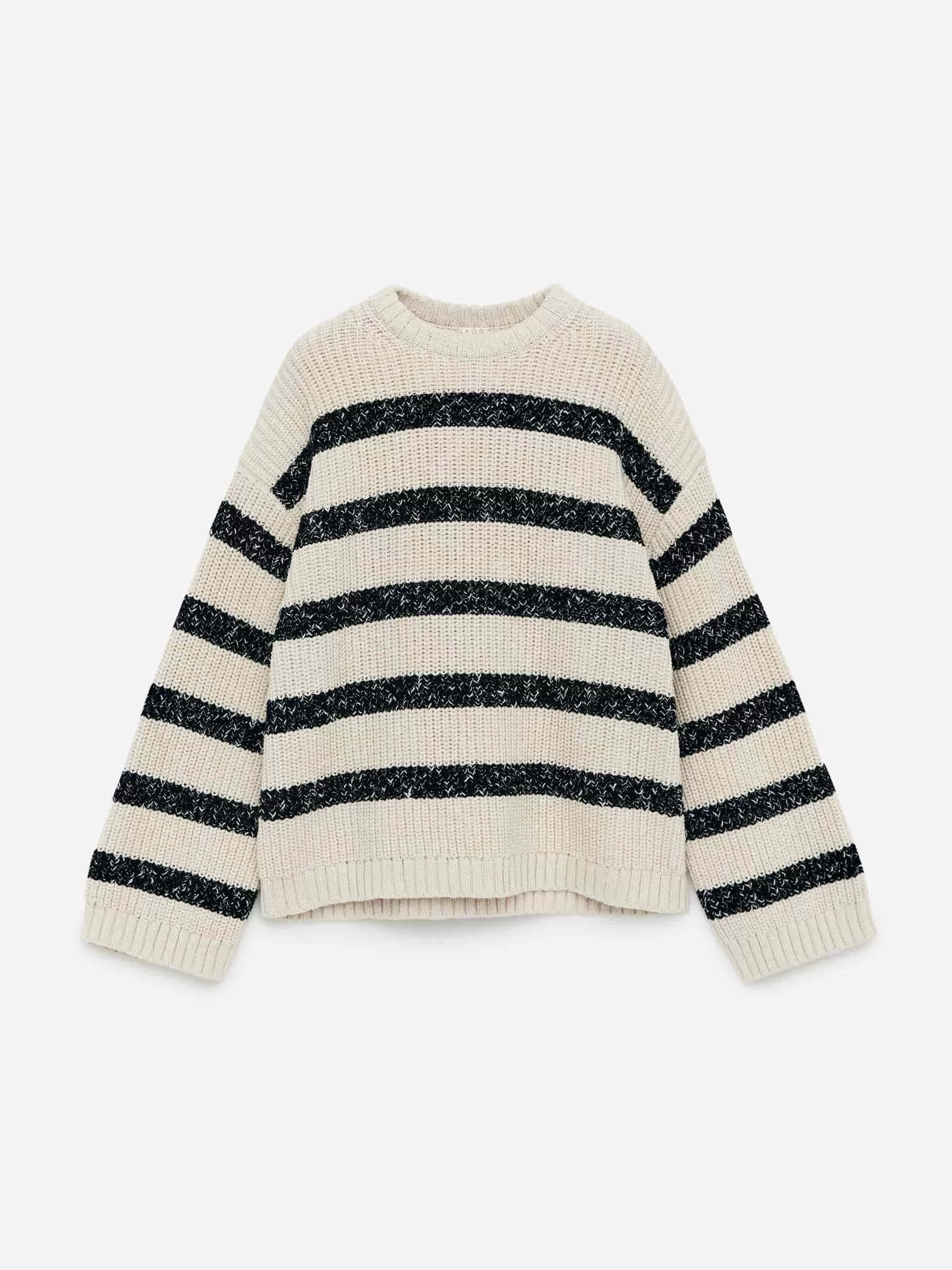 Rundhalspullover aus Baumwolle gestrickt. Mit gerippten Abschlüssen und normaler Passform.