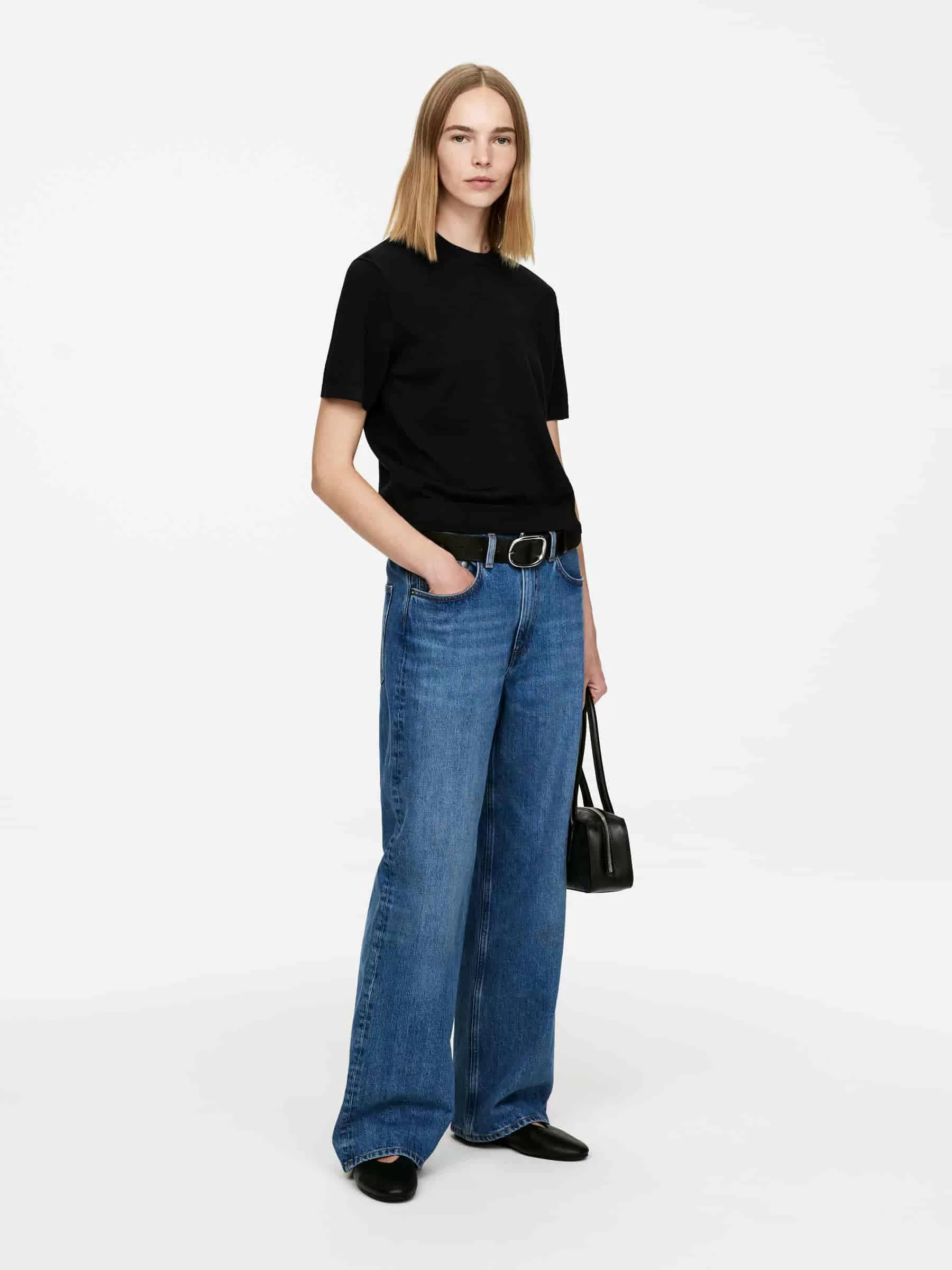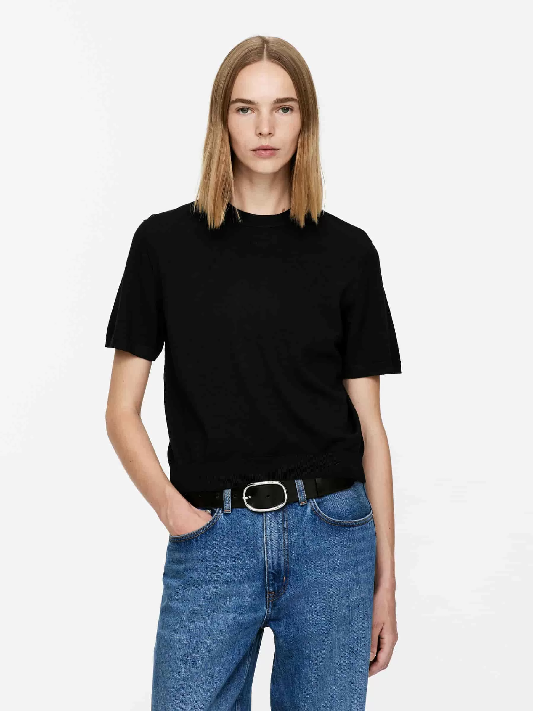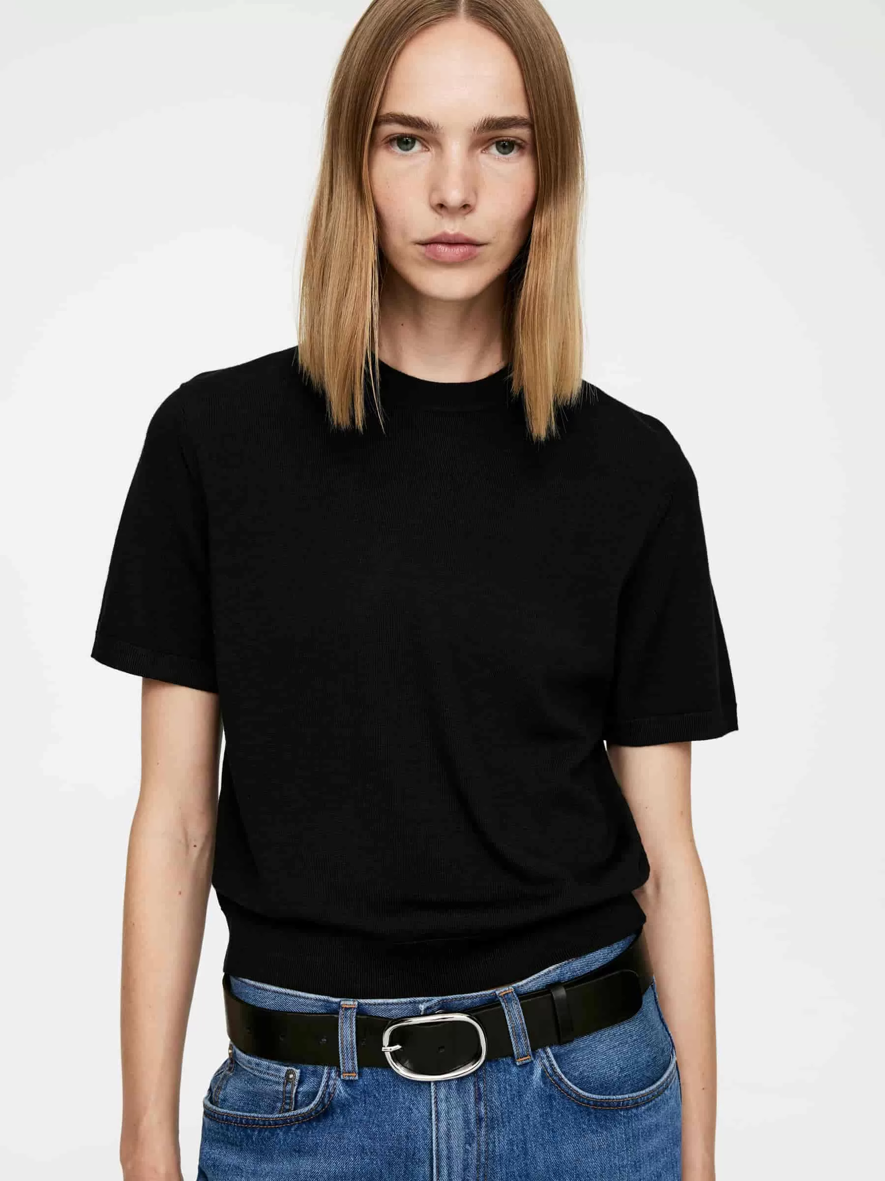 ARKE Damen Gestricktes T-Shirt aus Merinowolle Schwarz