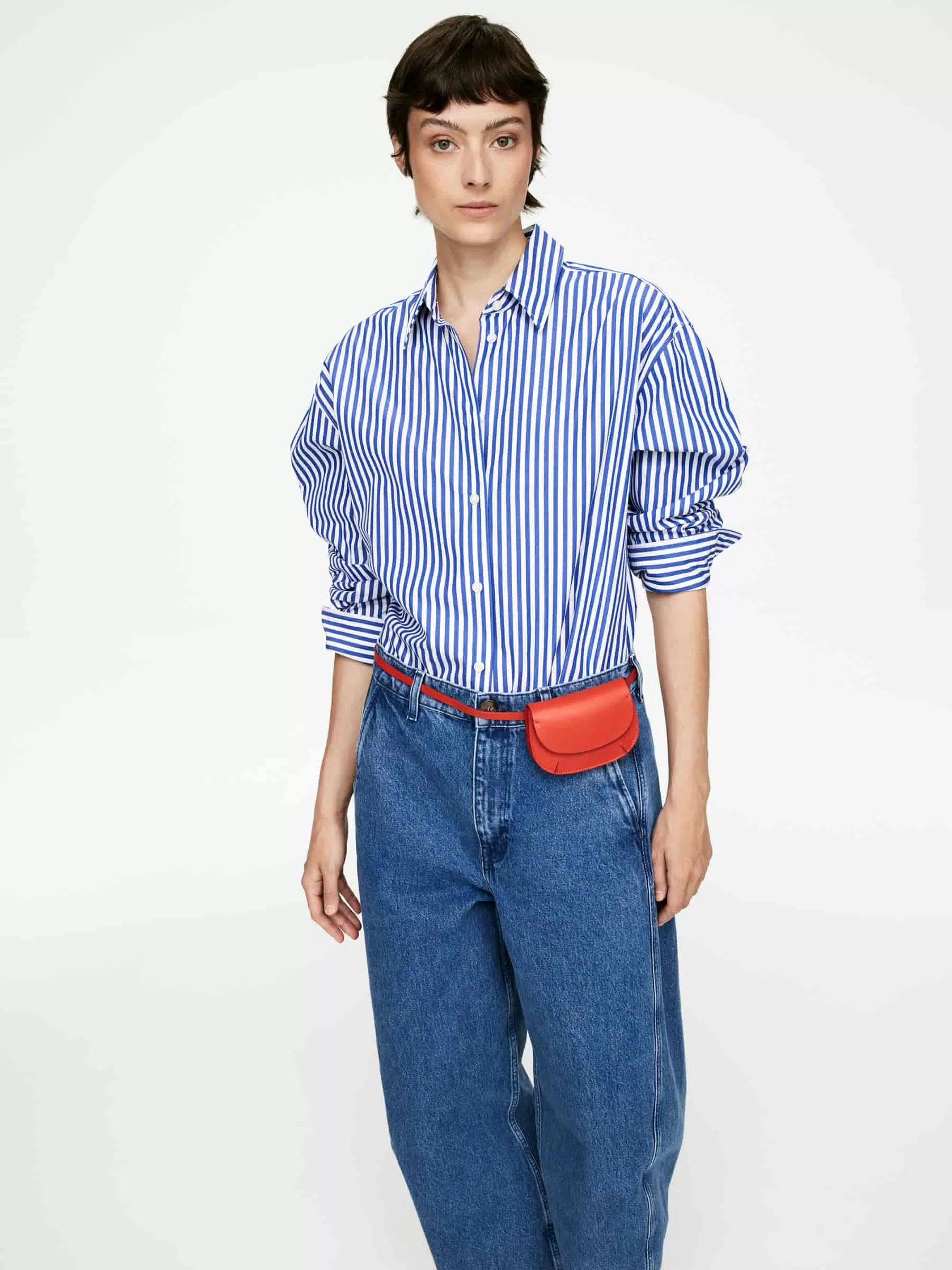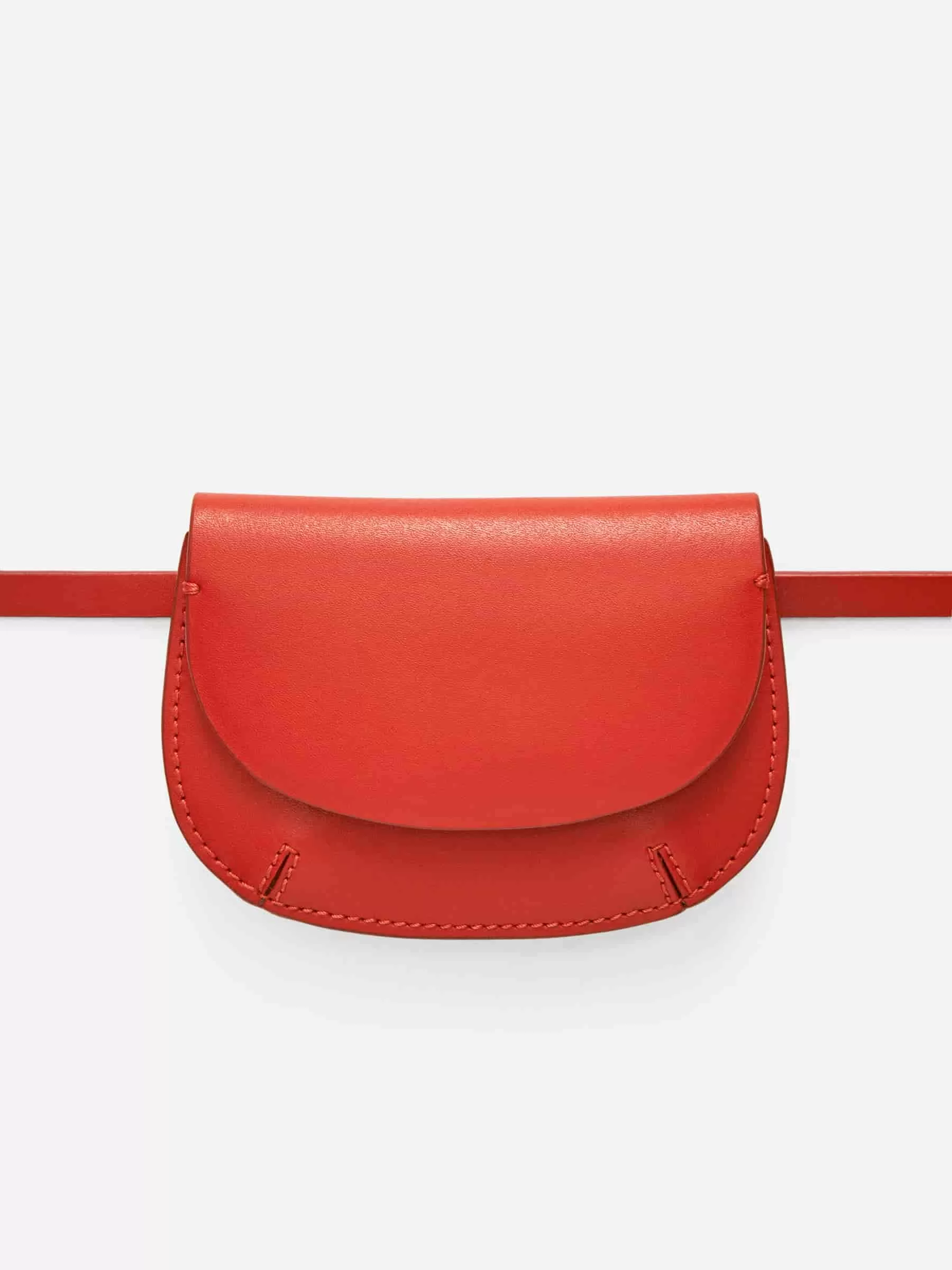 Gürteltasche aus chromfreiem Leder. Ein abgerundeter Stil mit Klappe und Magnetverschluss. Vergoldete Besätze. Breite 12 cm, Höhe 8 cm.