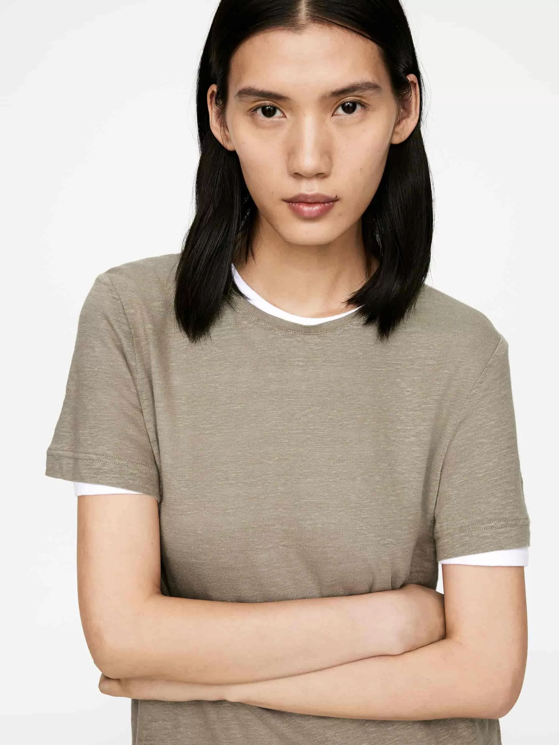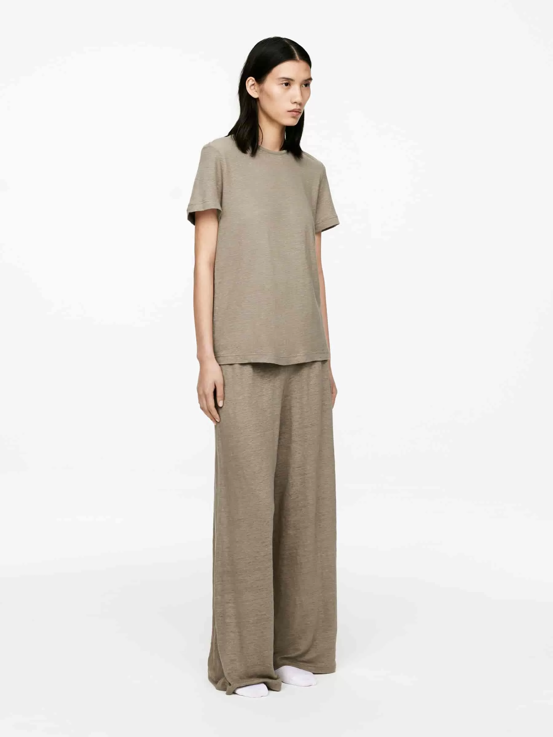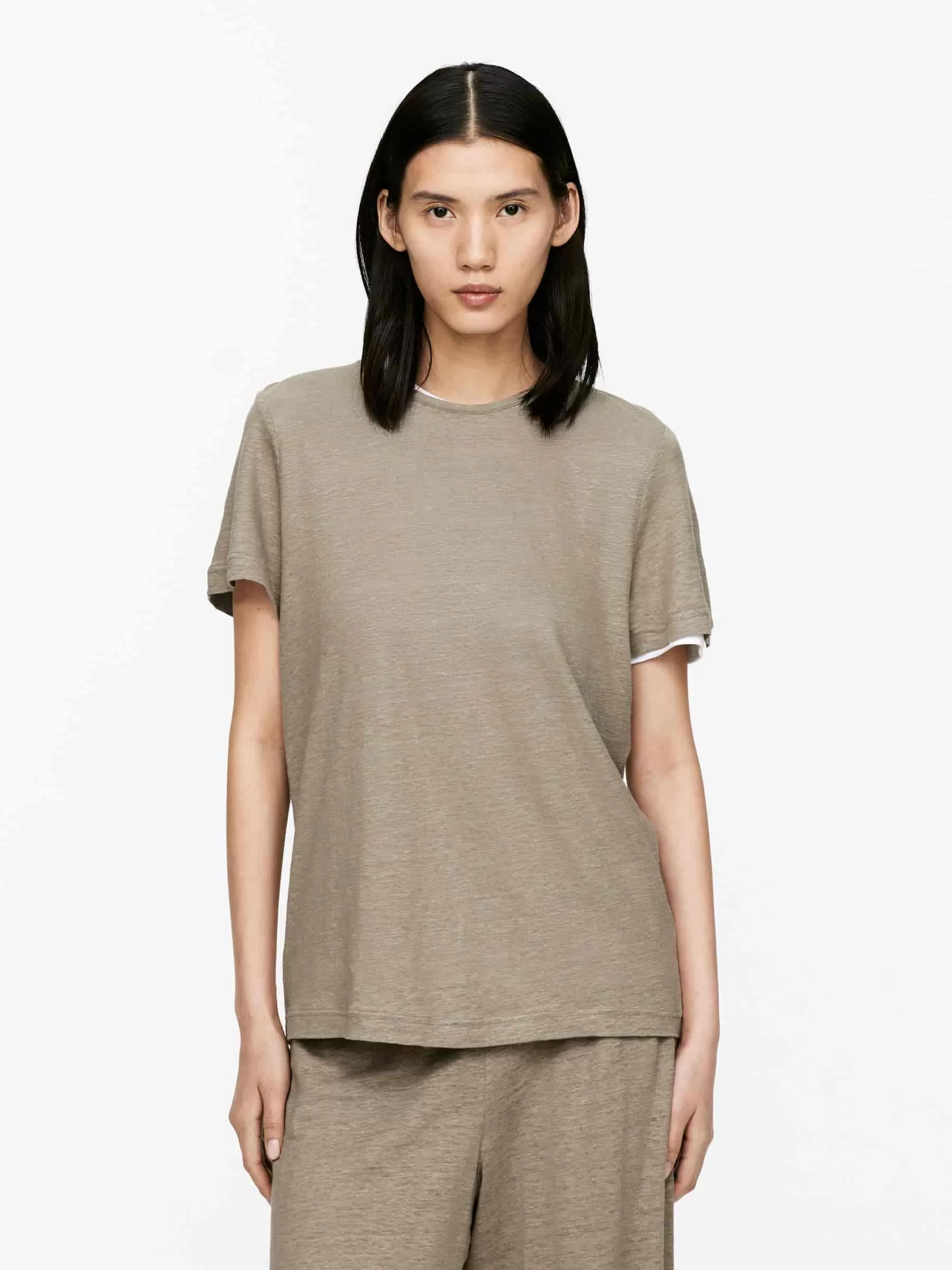 T-Shirt aus Leinenjersey. Mit kurzen Ärmeln und normaler Passform.
