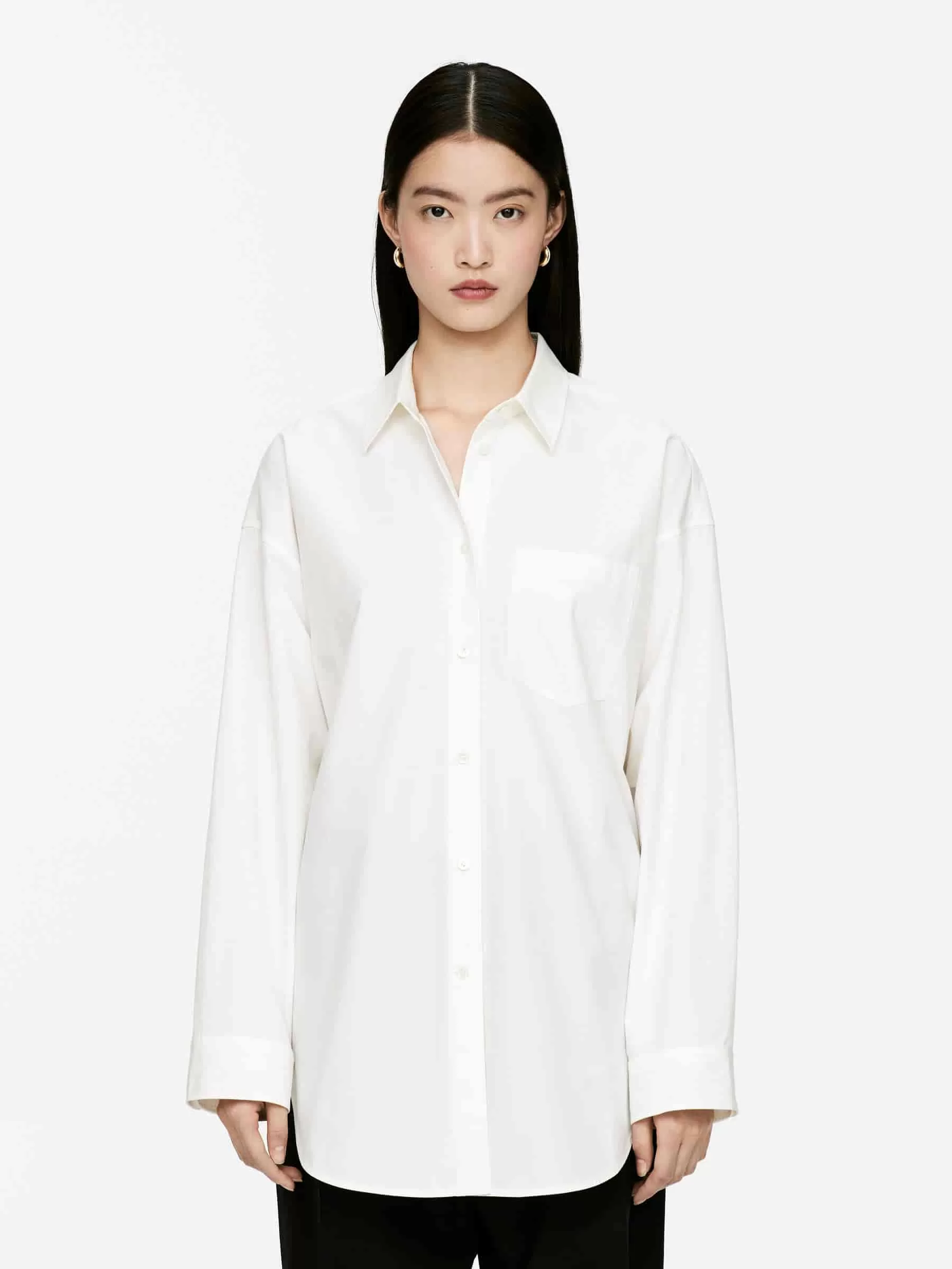 Übergroßes Hemd aus schwerer Pima-Baumwolle. Mit Fledermausärmeln und einer einzelnen Brusttasche.