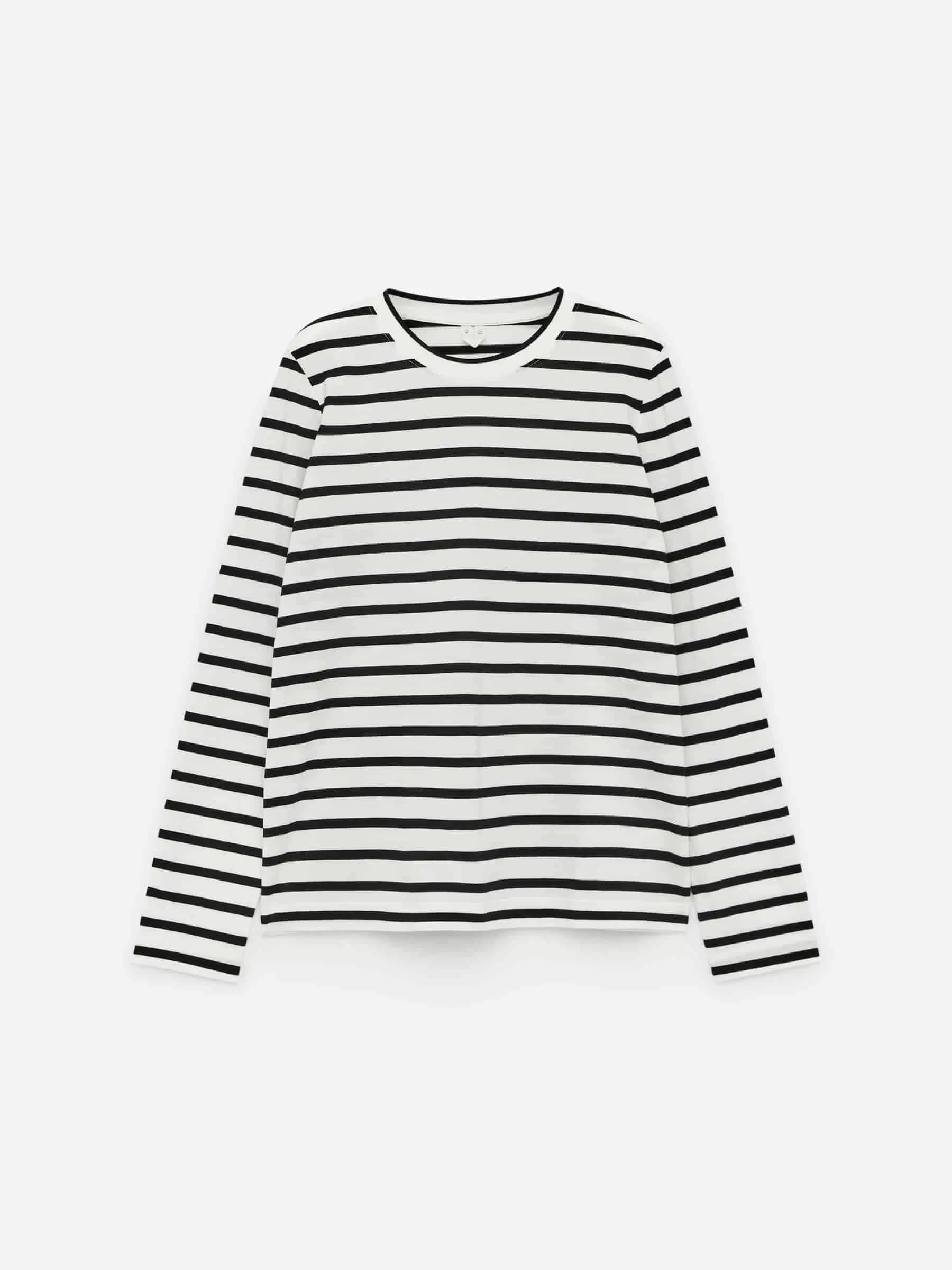 Langärmliges T-Shirt aus leichtem Baumwolljersey. Mit Rundhalsausschnitt und normaler Passform.
