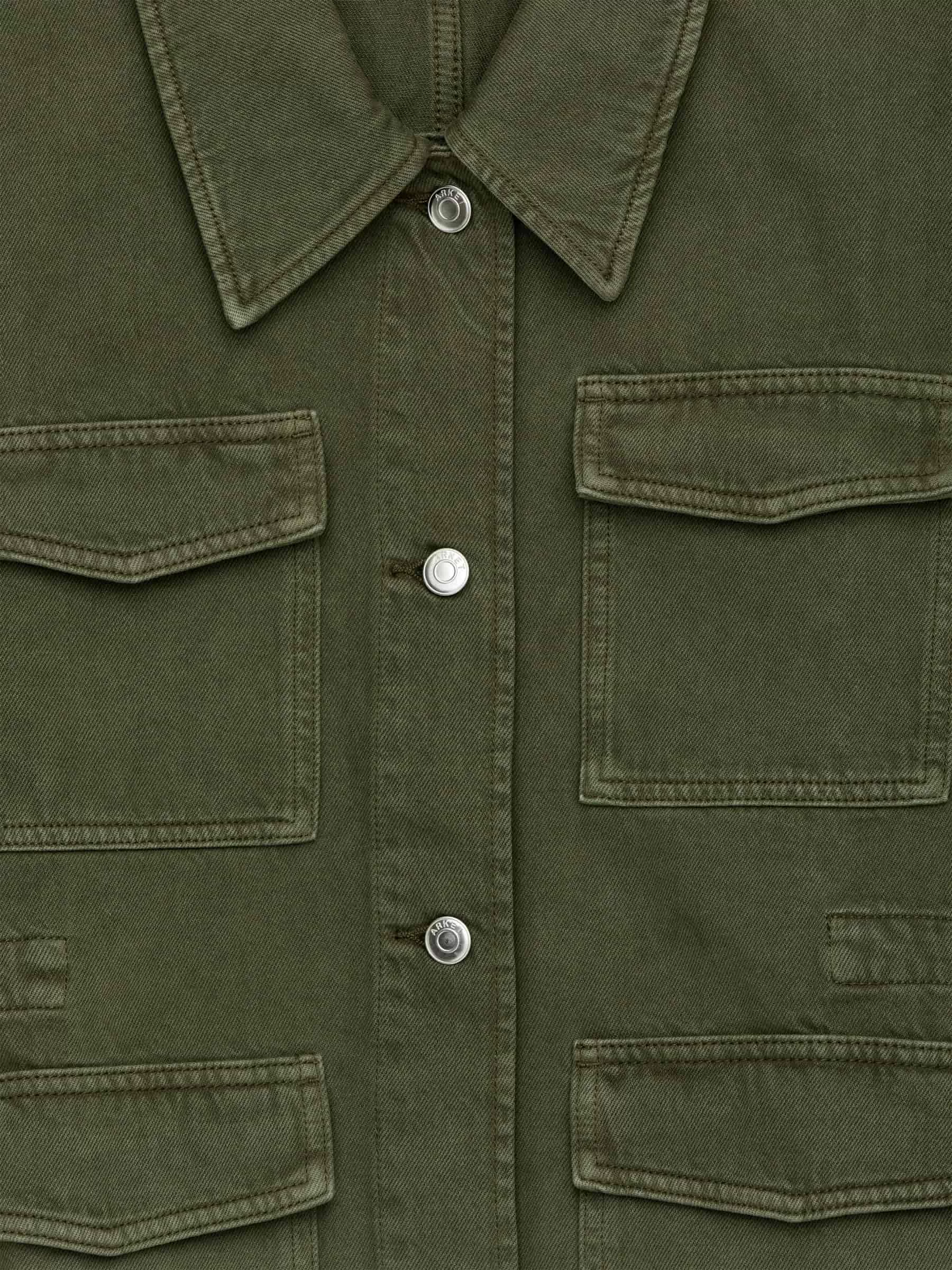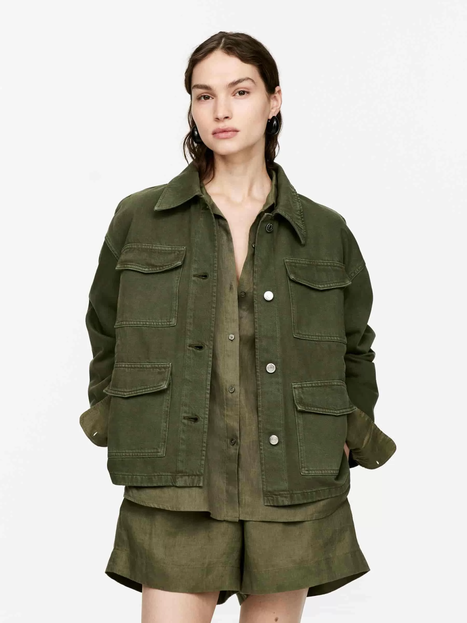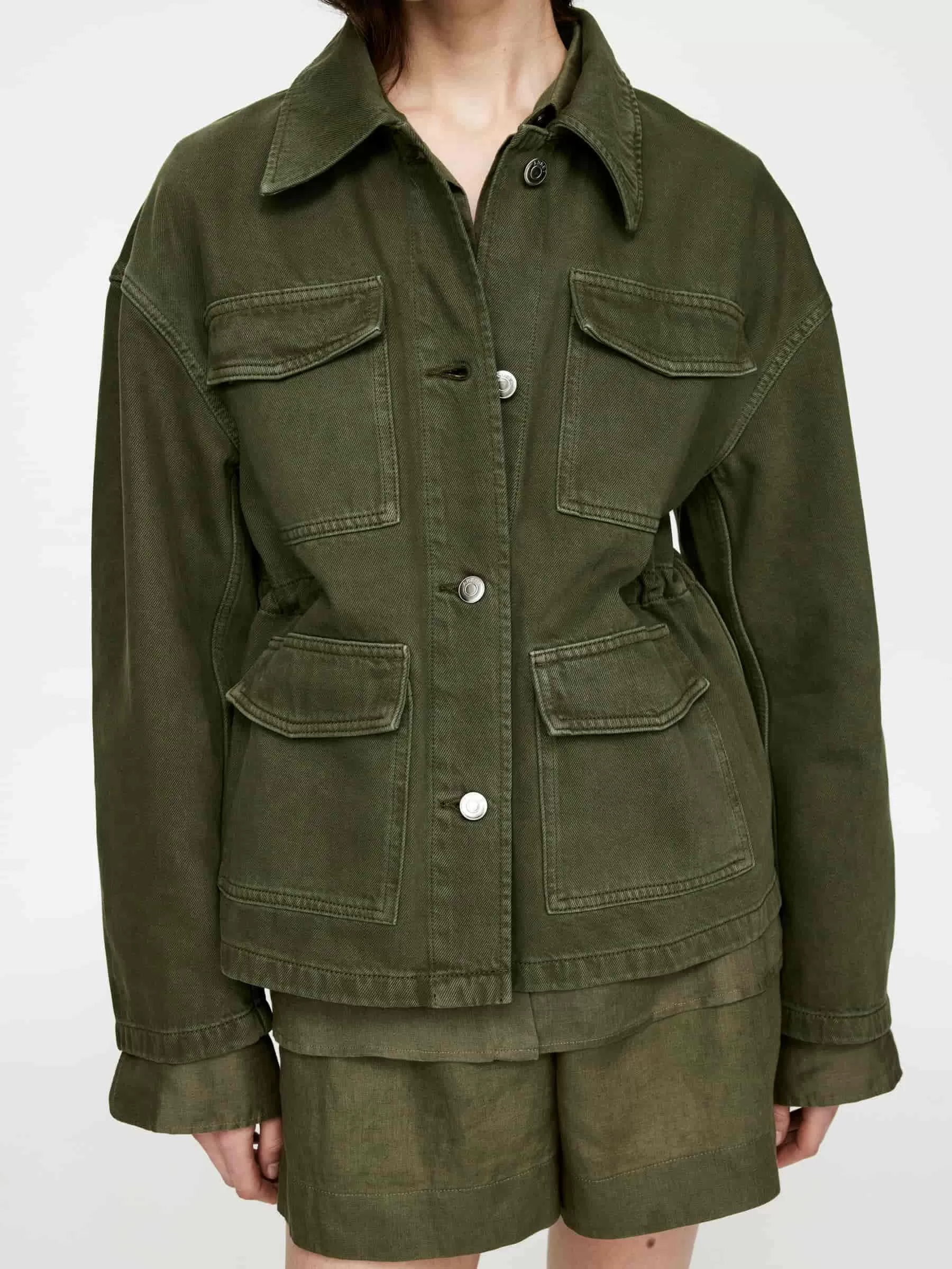 Jeansjacke aus Baumwolle. Ein ungefütterter Stil mit Brust- und Vordertaschen und einem verstellbaren Kordelzug in der Taille.