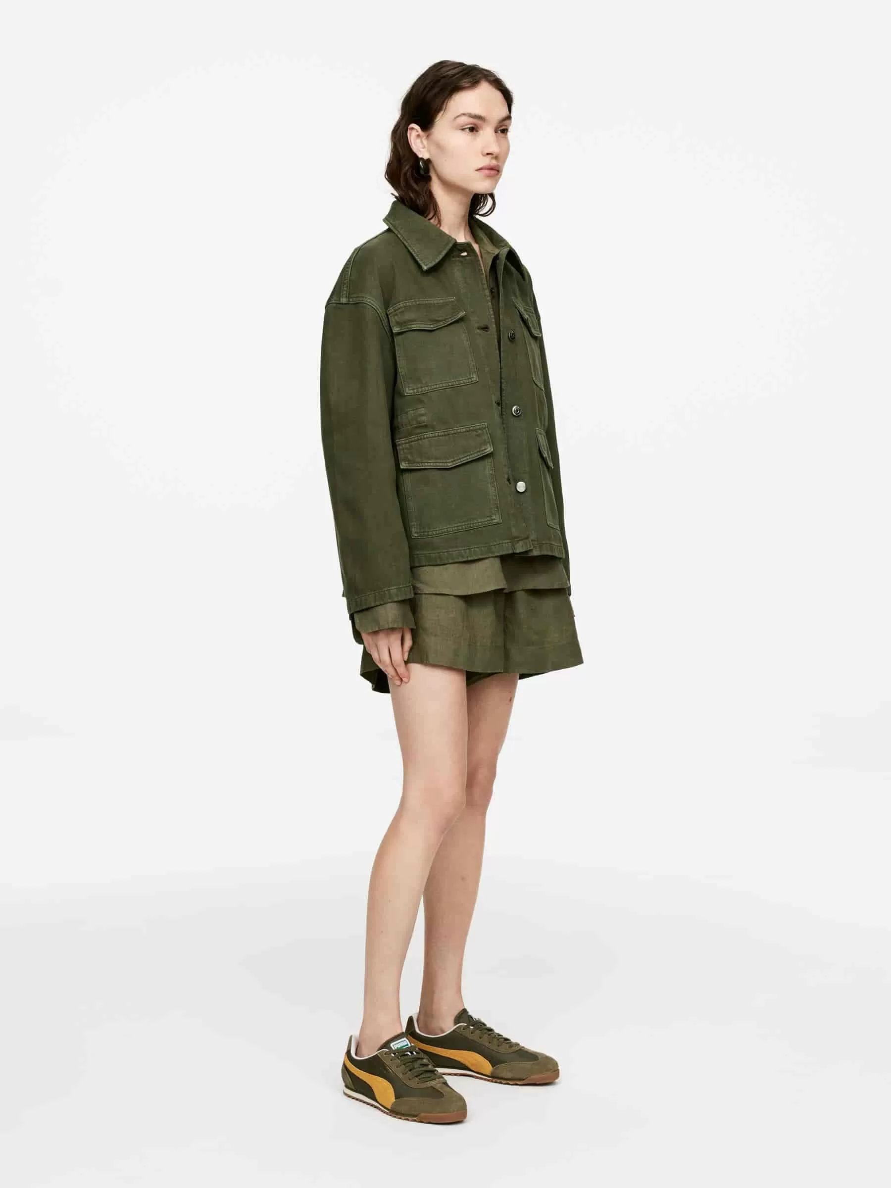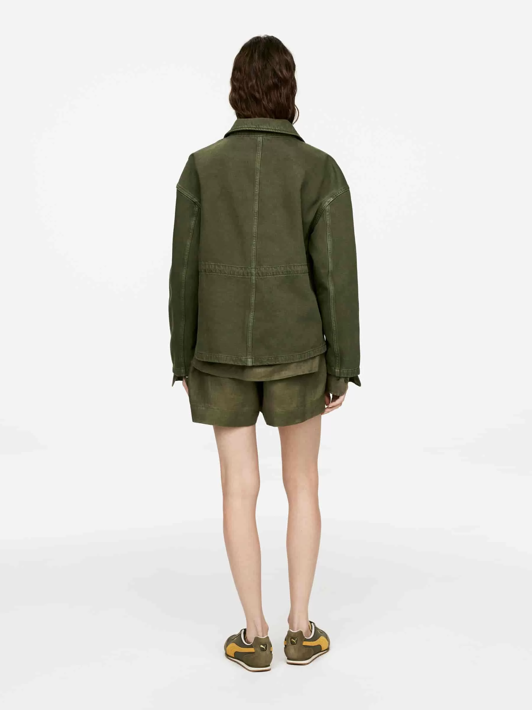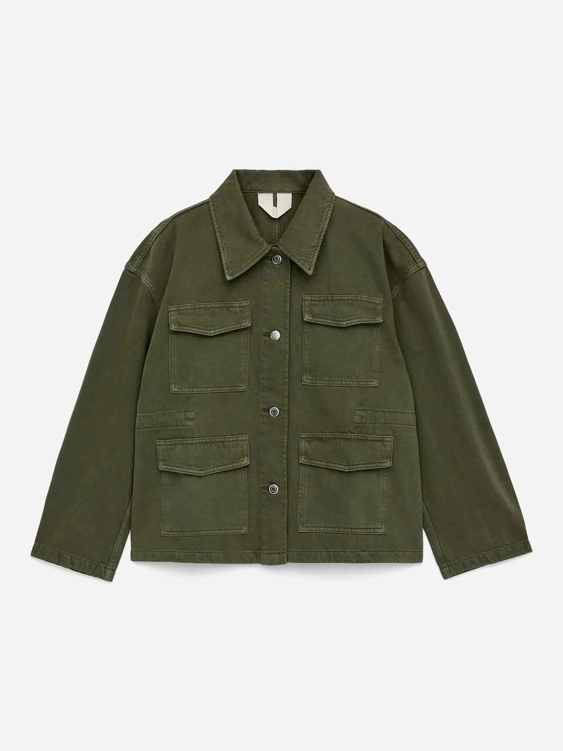 Jeansjacke aus Baumwolle. Ein ungefütterter Stil mit Brust- und Vordertaschen und einem verstellbaren Kordelzug in der Taille.