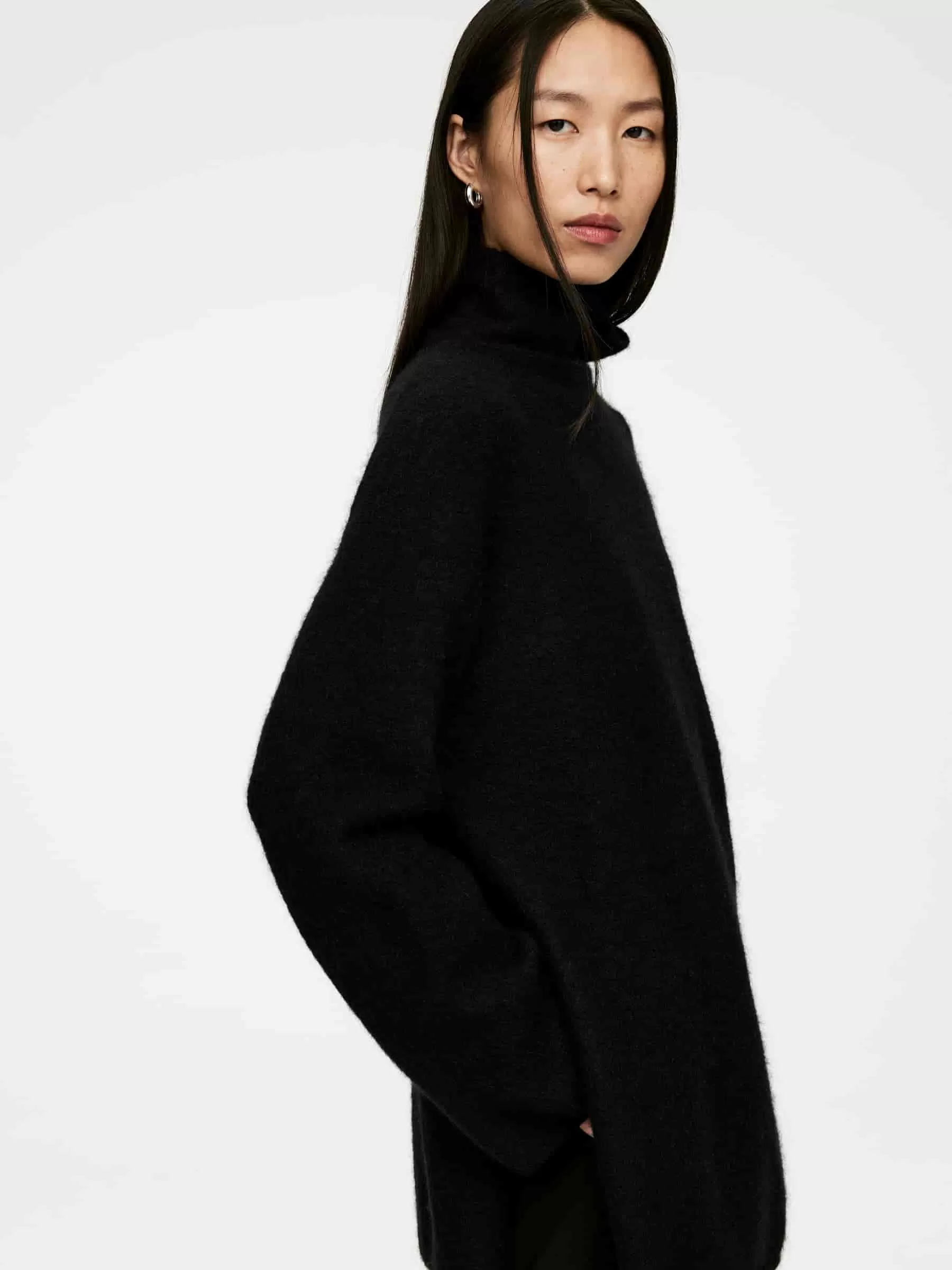 Pullover mit Stehkragen aus einer Alpaka-Wollmischung. Ein langer Stil mit Schlitz auf beiden Seiten. Entspannte Passform. Dieser Stil enthält 28 % RAS-Alpaka und 32 % RWS-Wolle (TE-00047206). Produkte, die nach dem Responsible Wool Standard (RWS) und dem Responsible Alpaca Standard (RAS) zertifiziert sind, enthalten Wolle und Alpakafasern von Farmen, die unabhängig nach Tierschutz- und Landmanagementanforderungen zertifiziert sind.