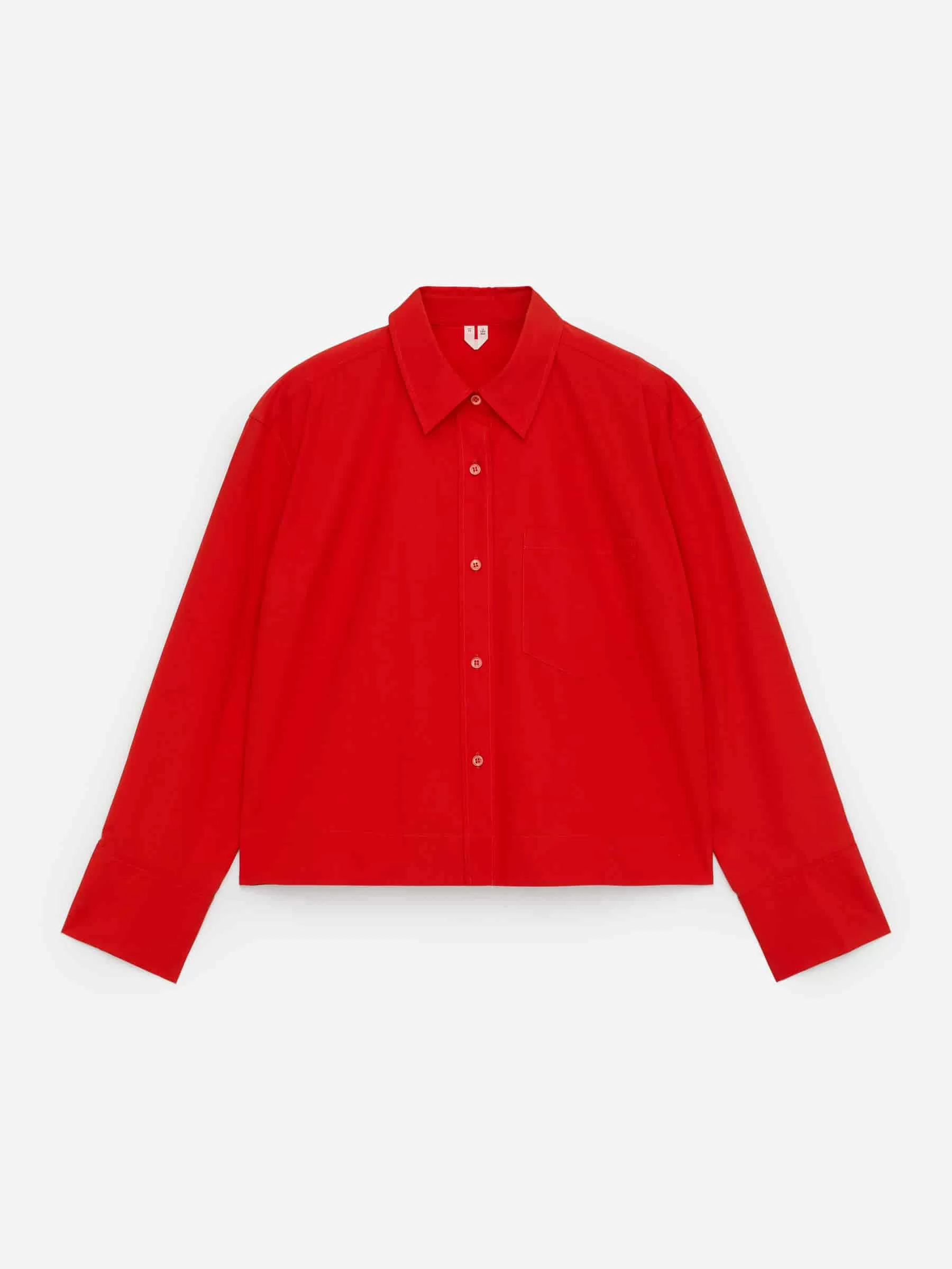 ARKE Damen Kurz geschnittenes Baumwollhemd Rot