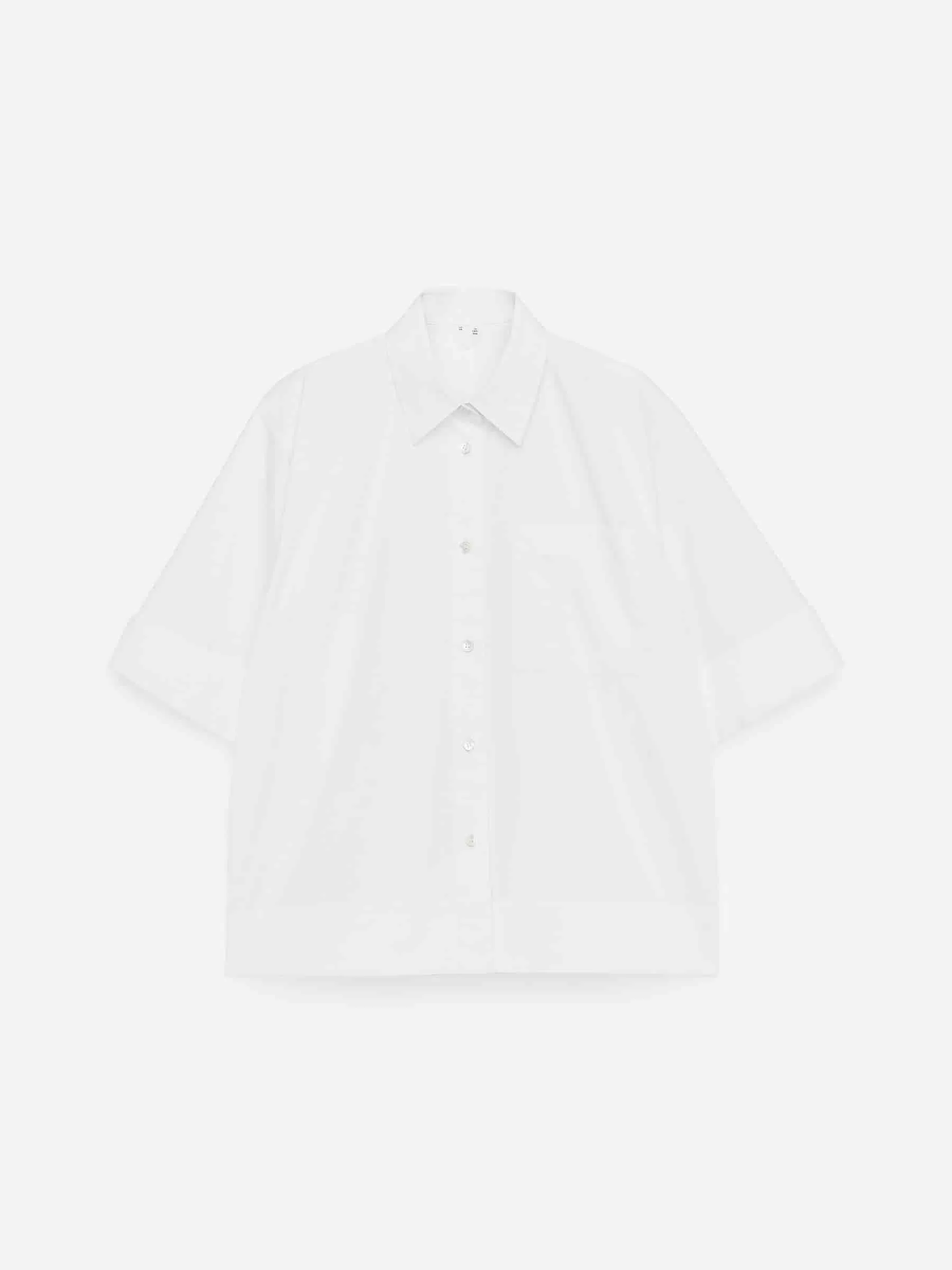 Kurzärmeliges Hemd aus Baumwolle. Ein übergroßer Stil mit einer einzigen Brusttasche.