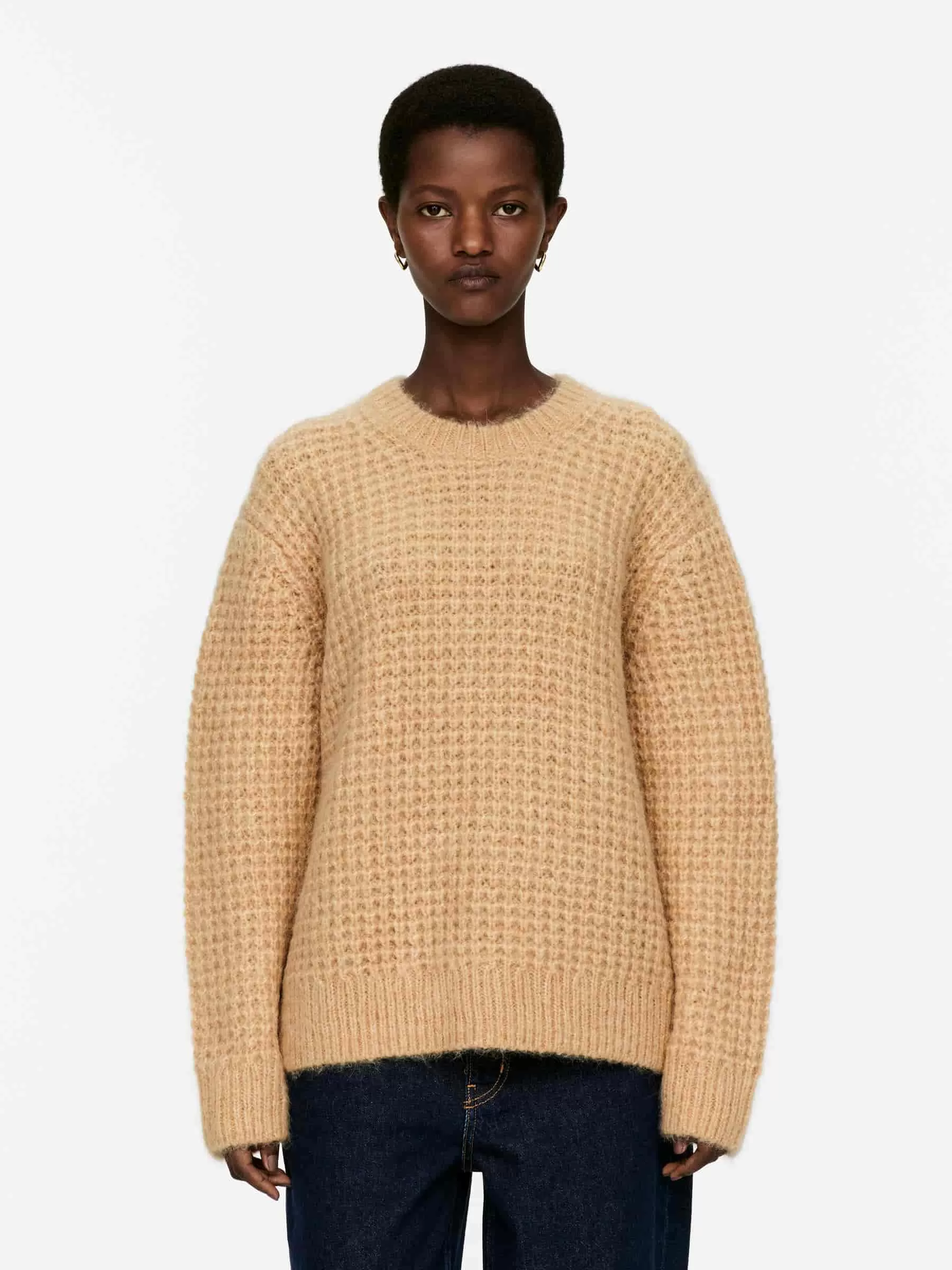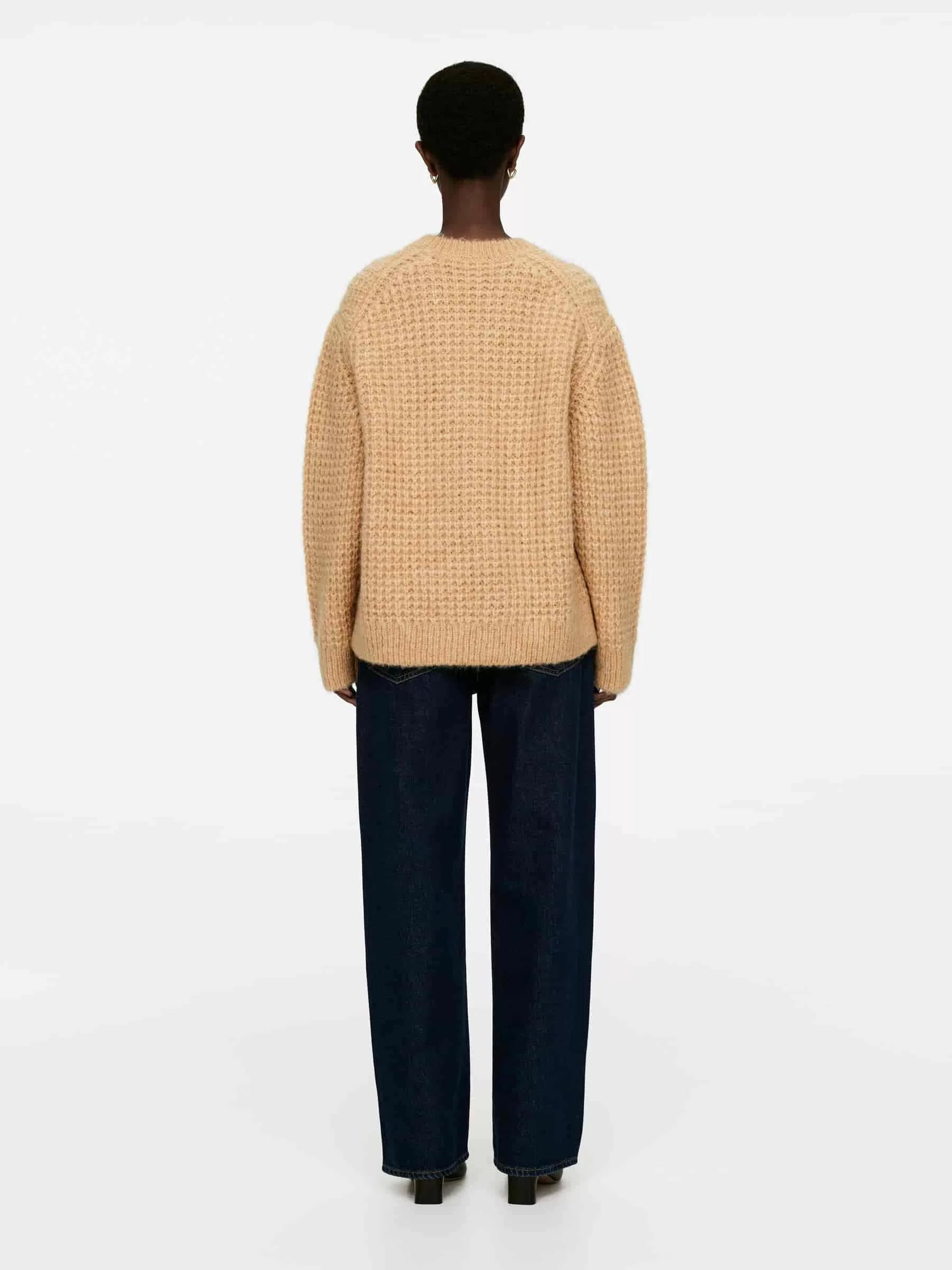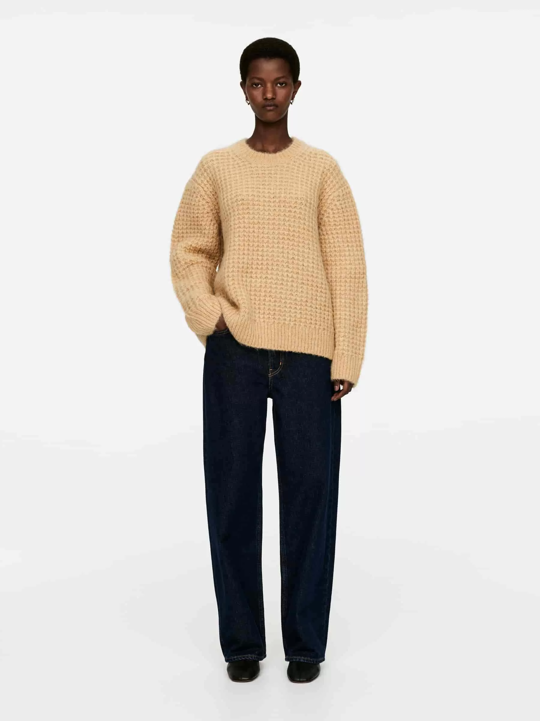 Pullover mit Rundhalsausschnitt aus einer Woll-Alpaka-Mischung im halben Cardigan-Stich. Gerippte Abschlüsse. Entspannte Passform. Dieser Stil besteht aus 44 % RAS-Alpaka und 56 % RWS-Wolle (TE-00047206). Produkte, die nach dem Responsible Wool Standard (RWS) und dem Responsible Alpaca Standard (RAS) zertifiziert sind, enthalten Wolle und Alpakafasern von Farmen, die unabhängig nach Tierschutz- und Landmanagementanforderungen zertifiziert sind.