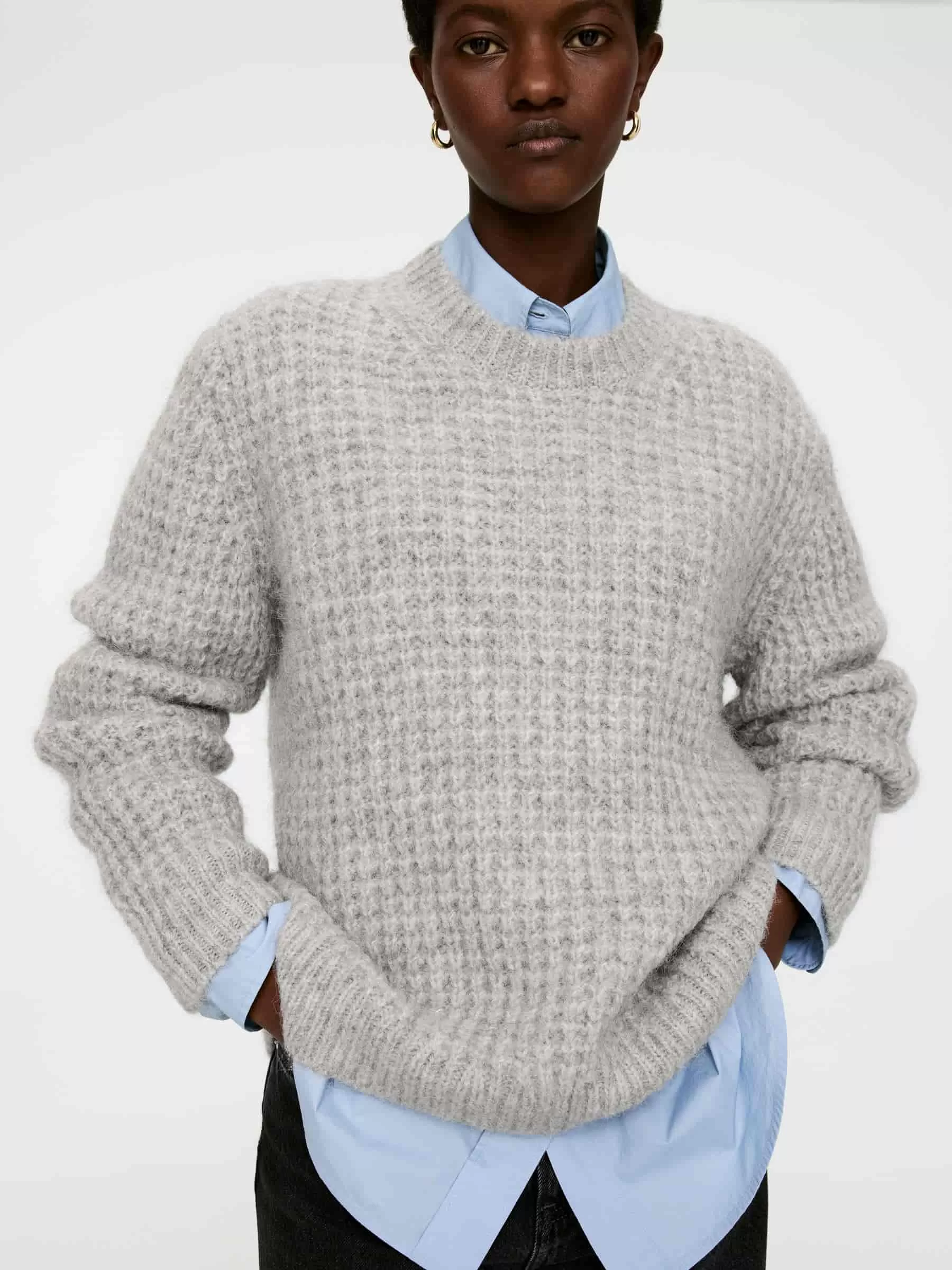 ARKE Damen Lässiger Woll-Alpaka-Pullover Grau