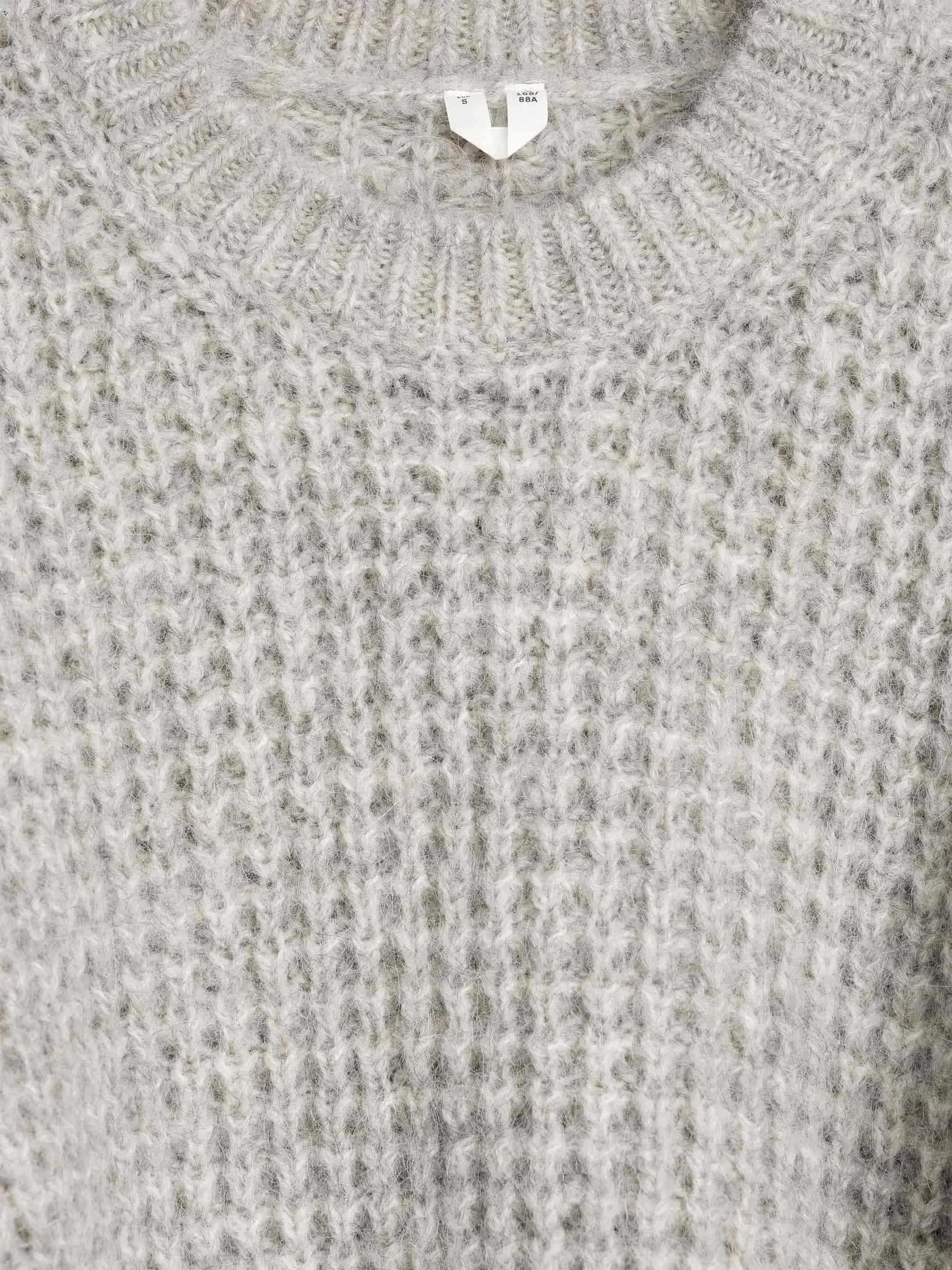 Pullover mit Rundhalsausschnitt aus einer Woll-Alpaka-Mischung im halben Cardigan-Stich. Gerippte Abschlüsse. Entspannte Passform. Dieser Stil besteht aus 44 % RAS-Alpaka und 56 % RWS-Wolle (TE-00047206). Produkte, die nach dem Responsible Wool Standard (RWS) und dem Responsible Alpaca Standard (RAS) zertifiziert sind, enthalten Wolle und Alpakafasern von Farmen, die unabhängig nach Tierschutz- und Landmanagementanforderungen zertifiziert sind.