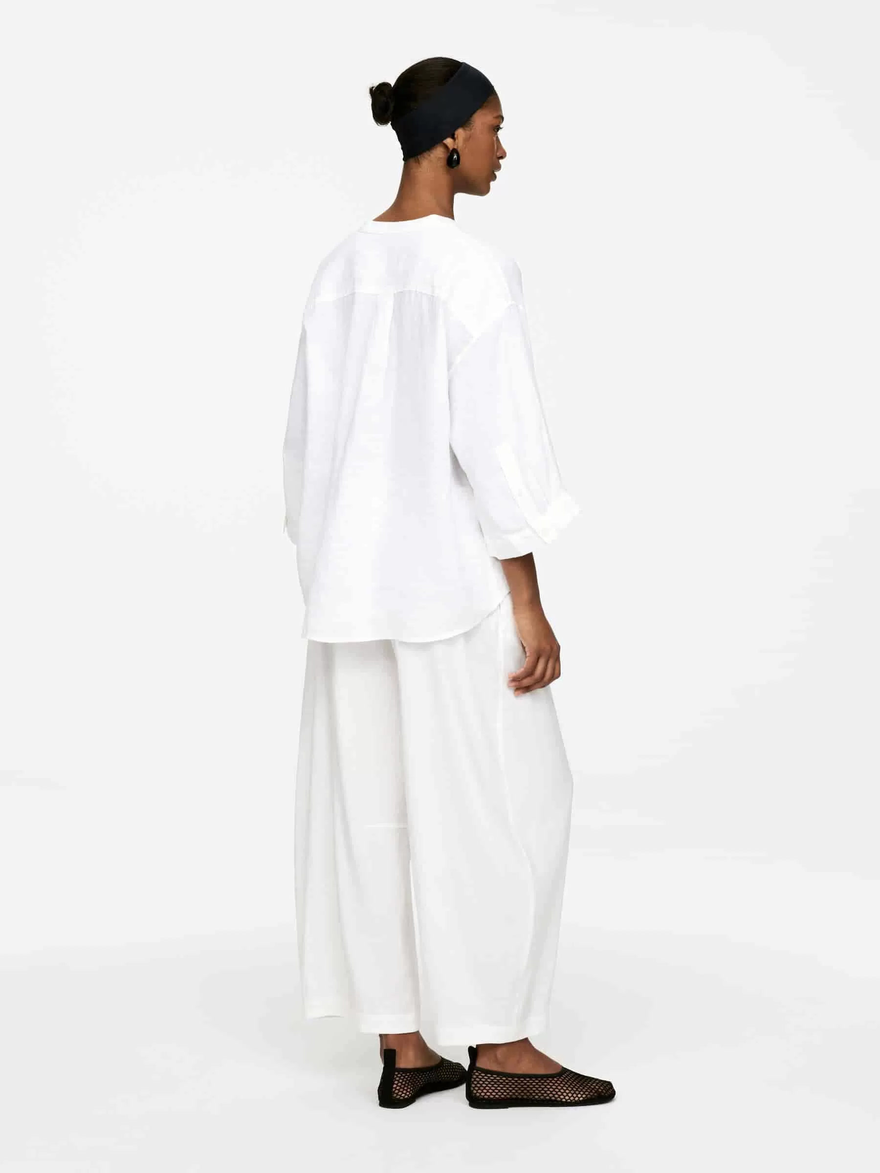 Kragenloses Leinenhemd mit entspannter Passform. Mit Dreiviertelärmeln und Knopf an den Manschetten.