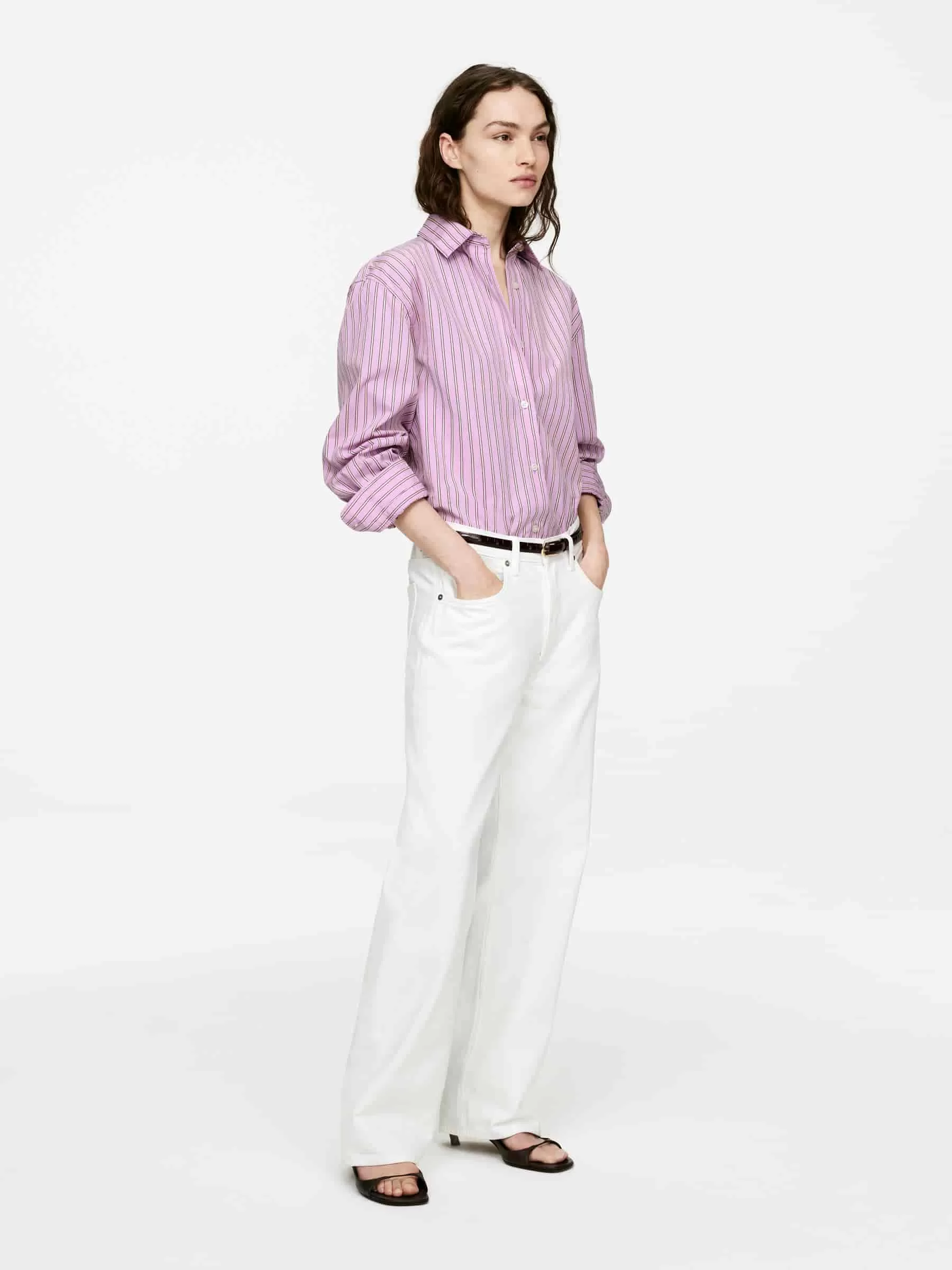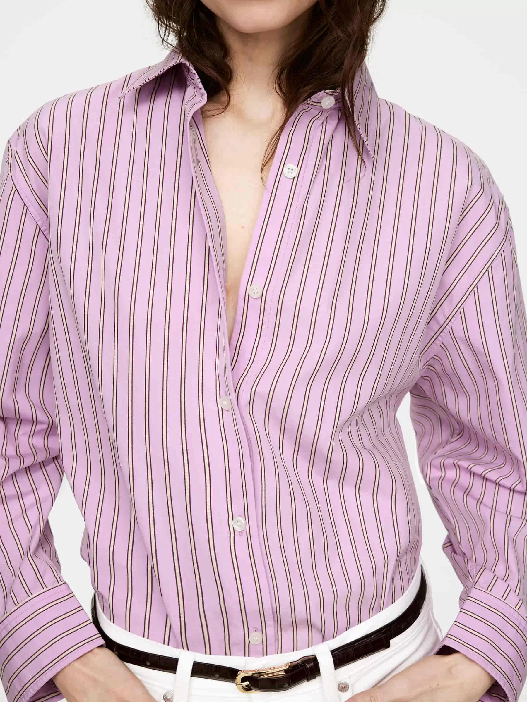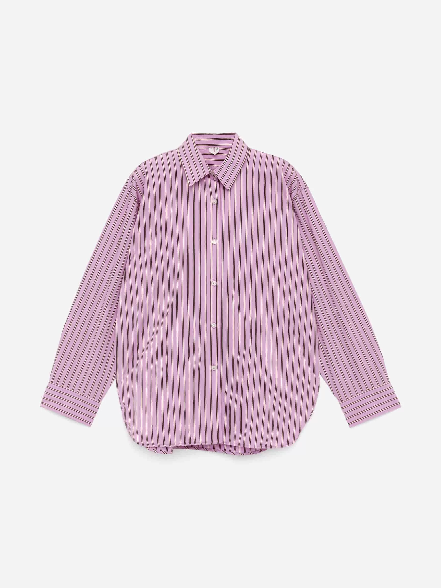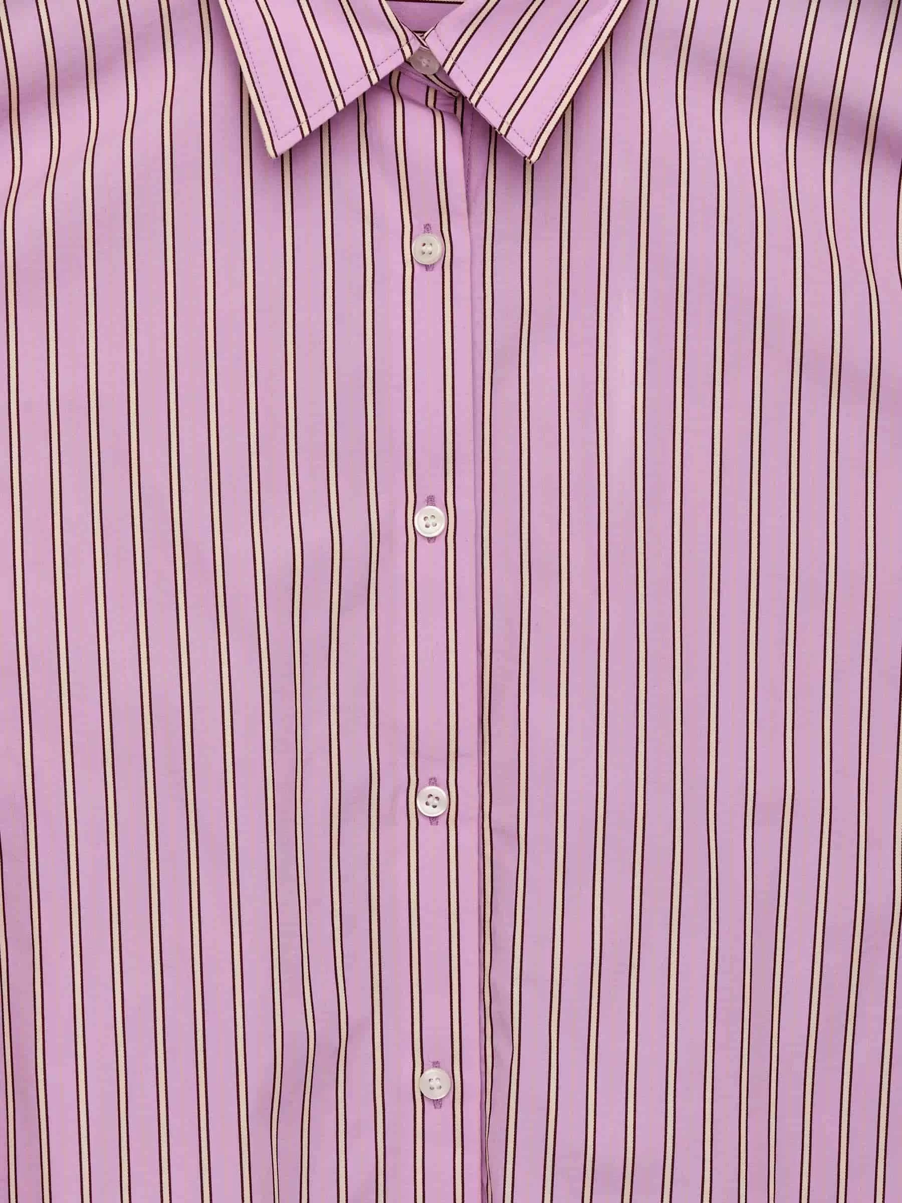 Hemd aus einem knackigen Popeline-Gewebe aus Baumwolle genäht. Dieses Hemd weist ein Muster aus garngefärbten Streifen auf. Ein langärmliger Schnitt für eine entspannte Silhouette mit leicht überschnittenen Schultern.