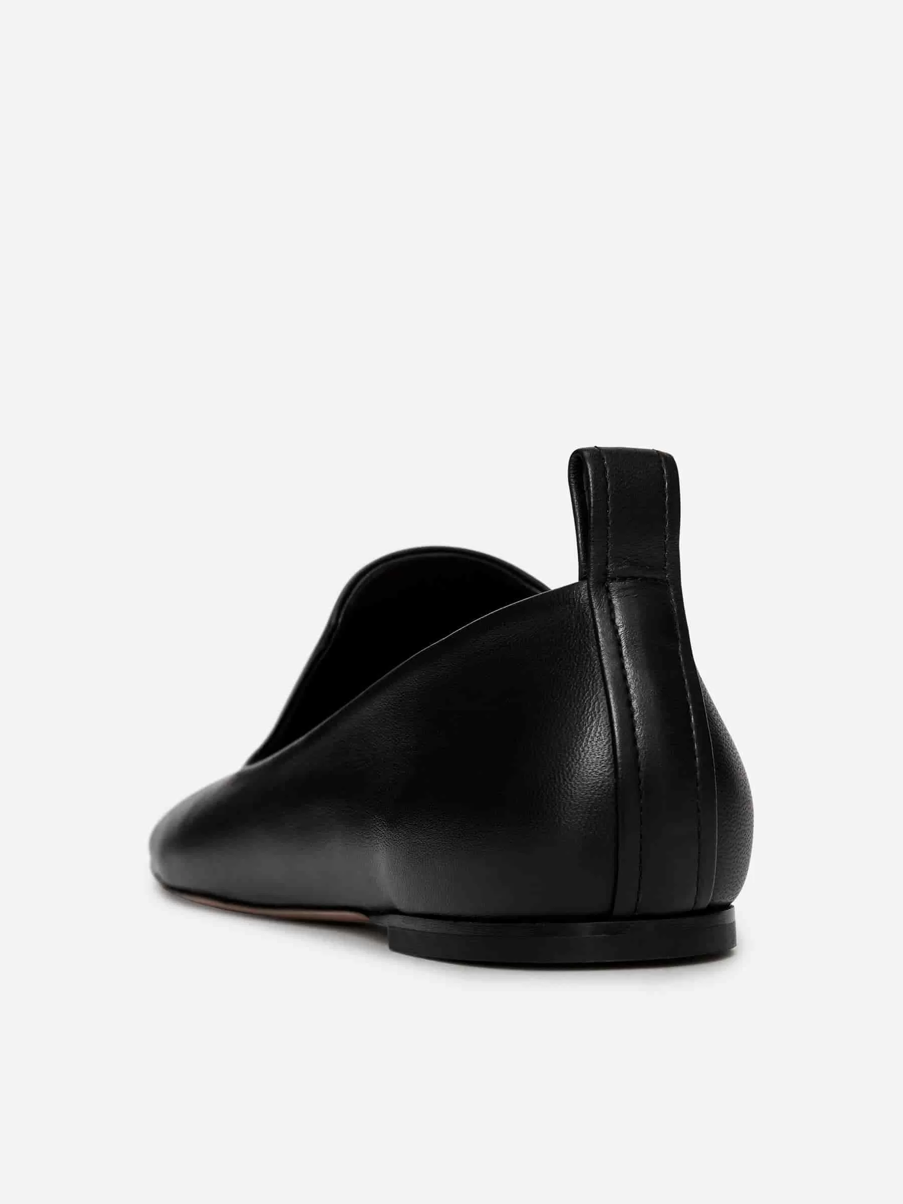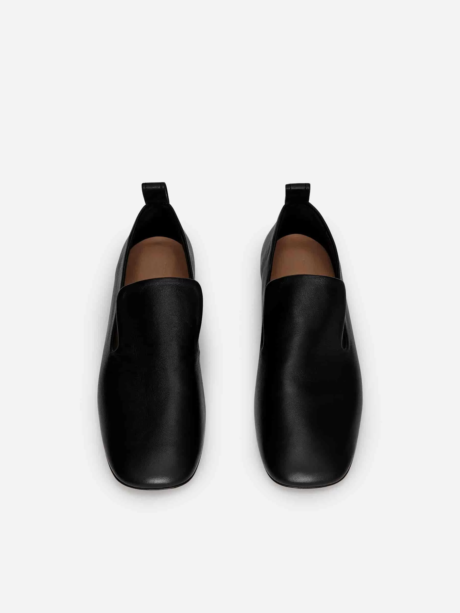 Klassische Leder-Loafer mit runder Zehenform und dünner Laufsohle. Detailliert mit einer dekorativen Mittelnaht und einem Schieber hinten.