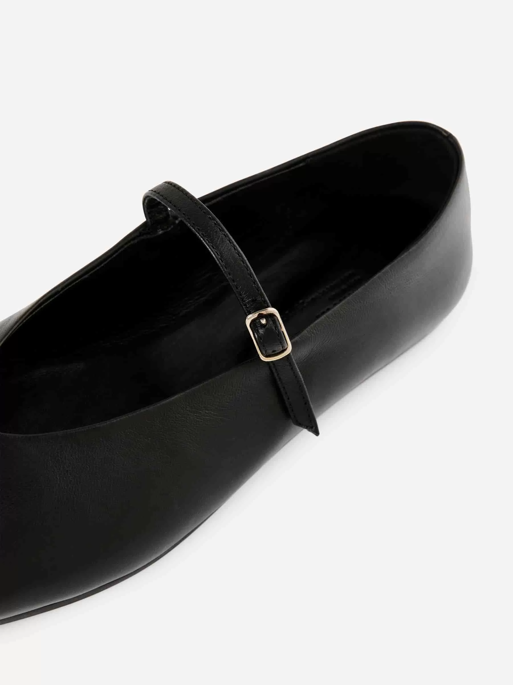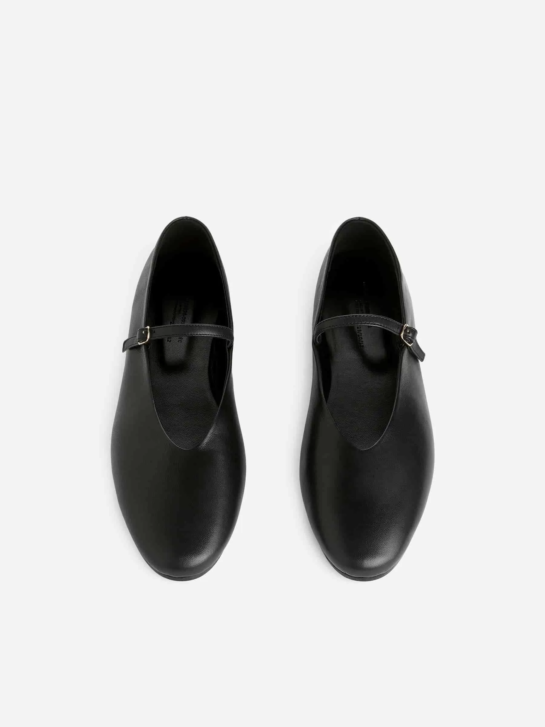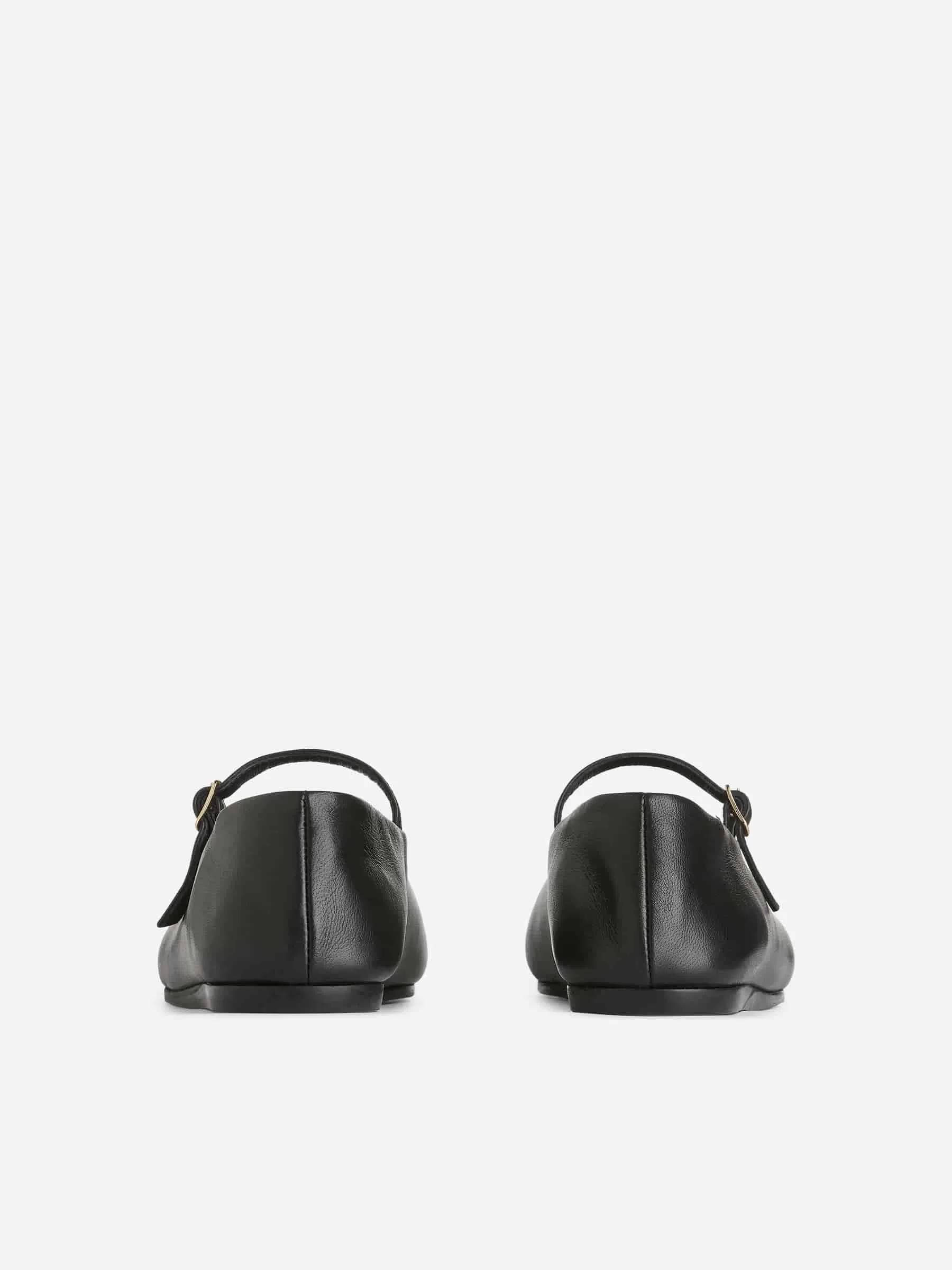 ARKE Damen Leder-Mary-Jane-Flats Schwarz