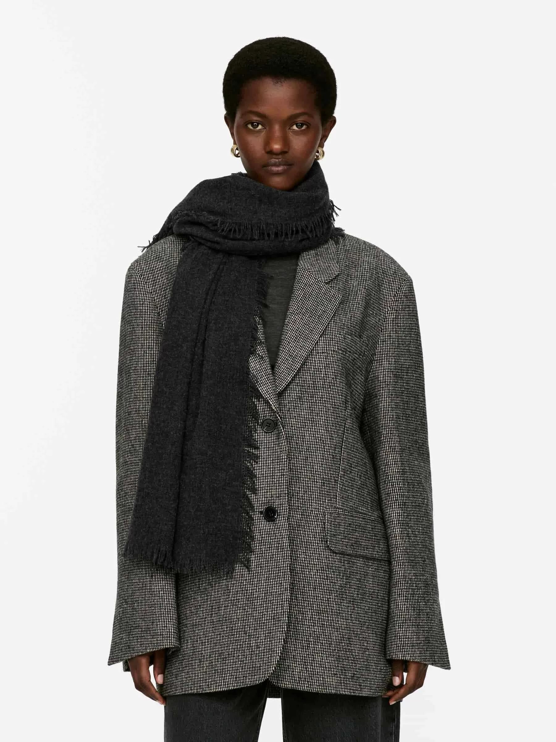 Schal in lockerer Webart aus Wolle. Detailliert mit ausgefransten Kanten. Maße 170 cm x 70 cm. Dieser Schal enthält 100 % RWS-Wolle, zertifiziert durch die Kontrollunion 877004. Produkte, die nach dem Responsible Wool Standard (RWS) zertifiziert sind, enthalten Wollfasern von Farmen, die unabhängig nach Tierschutz- und Landbewirtschaftungsanforderungen zertifiziert sind.