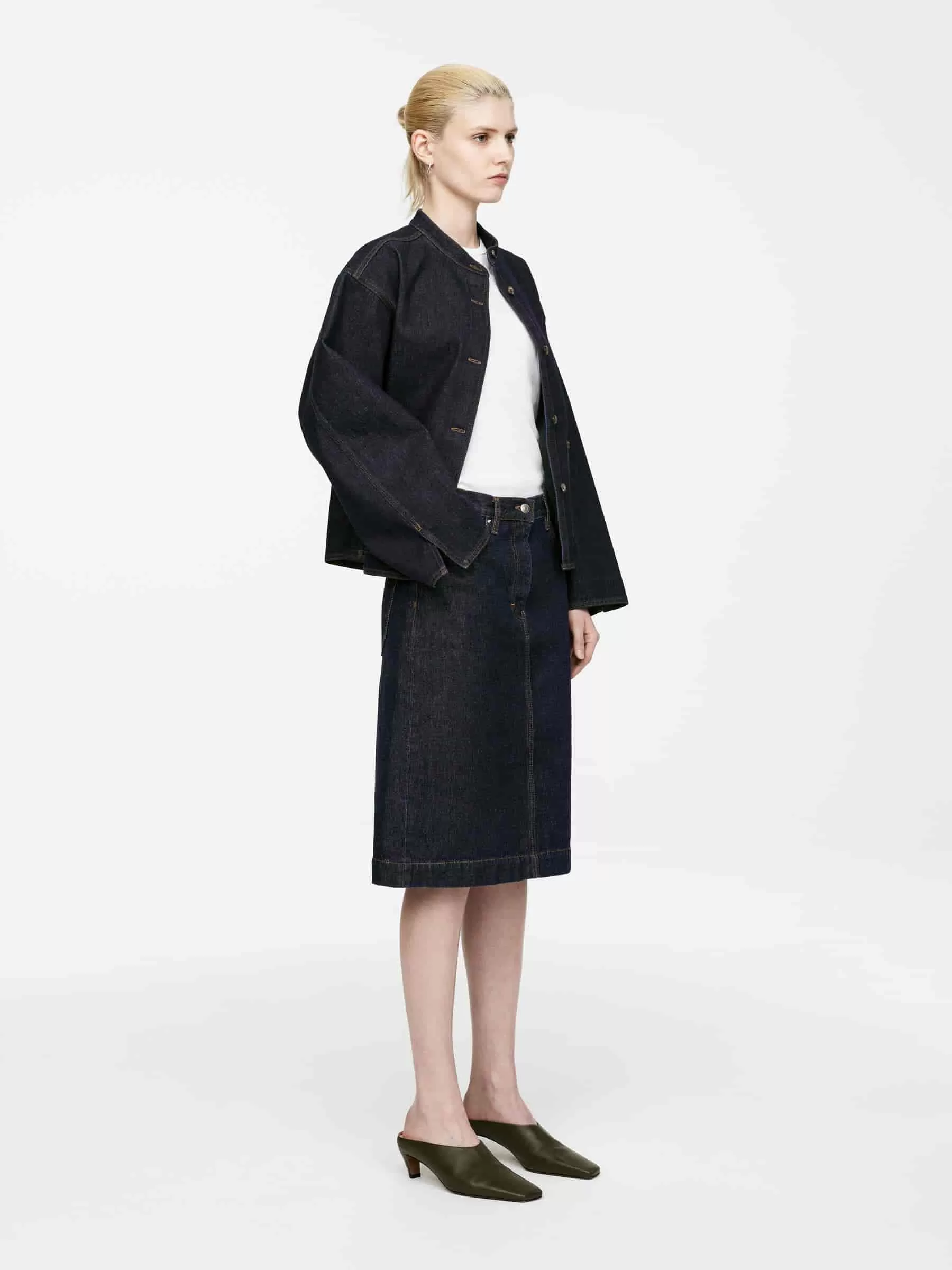 ARKE Damen Midi-Jeansrock Dunkelblau