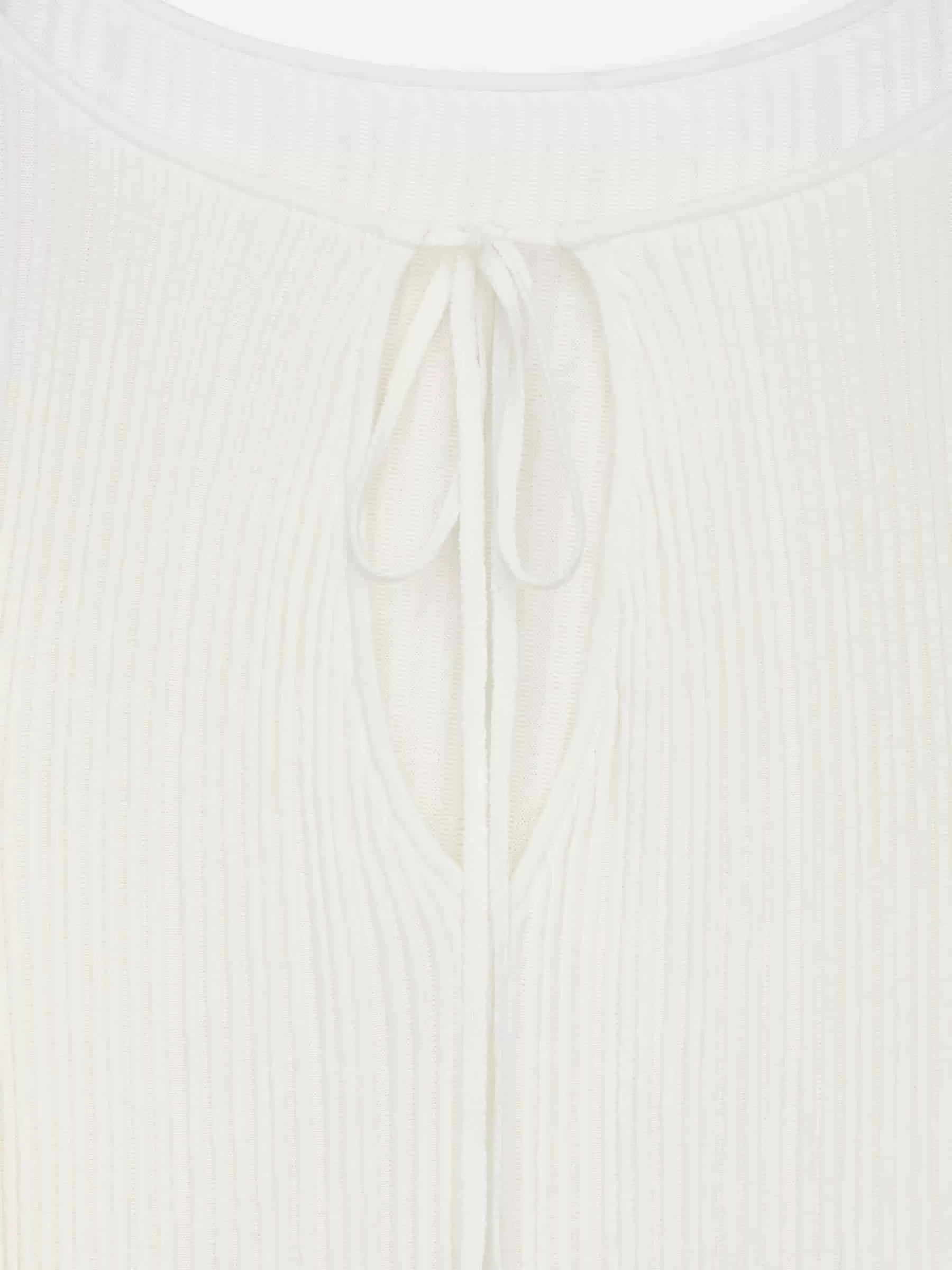 Stricktop aus Baumwolle mit Rippstruktur. Ein locker sitzender Stil mit Bindeband am Hals.