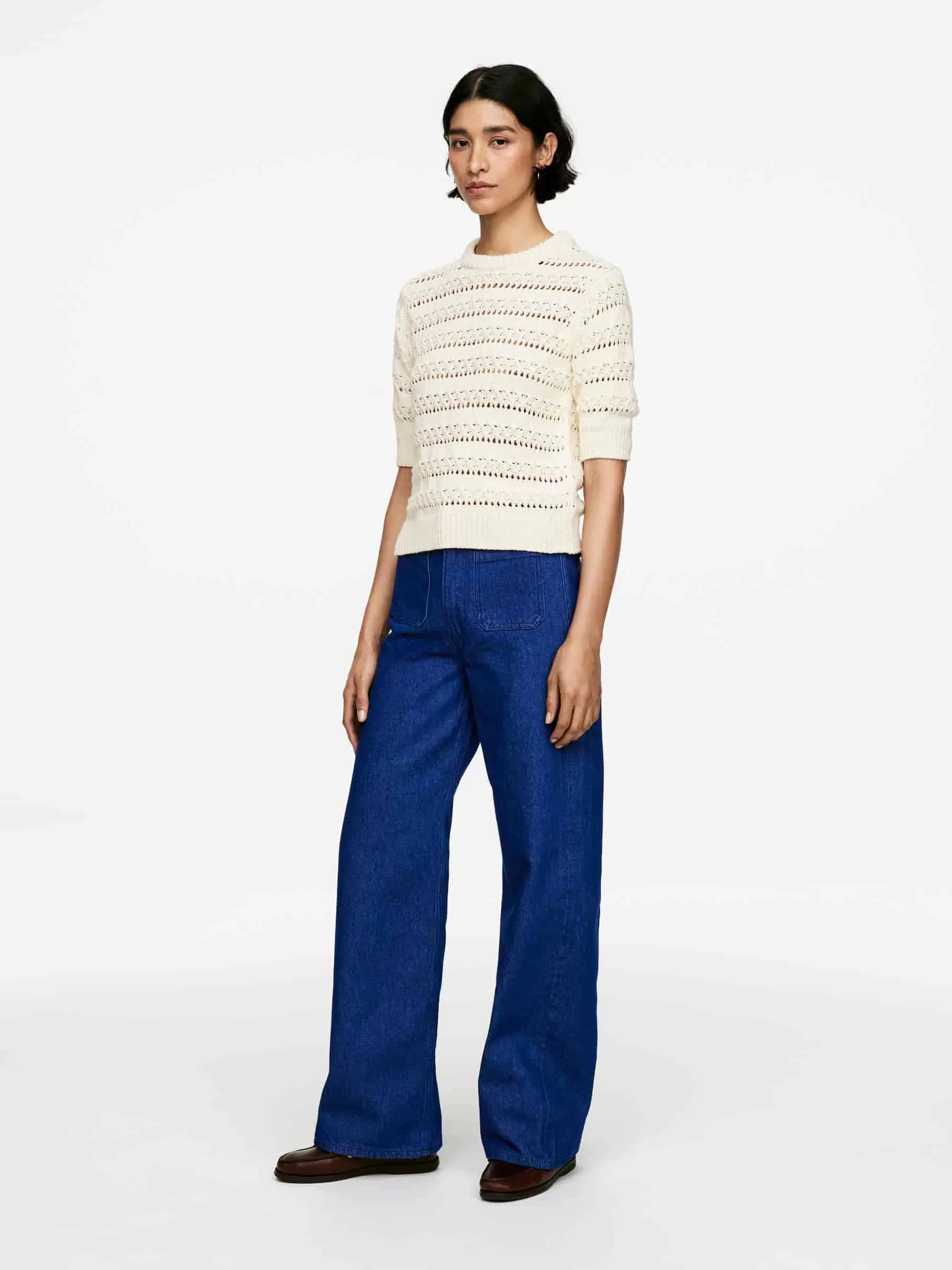 Kurzärmliges Oberteil aus Baumwolle mit Lochstrickdetails. Normale Passform.