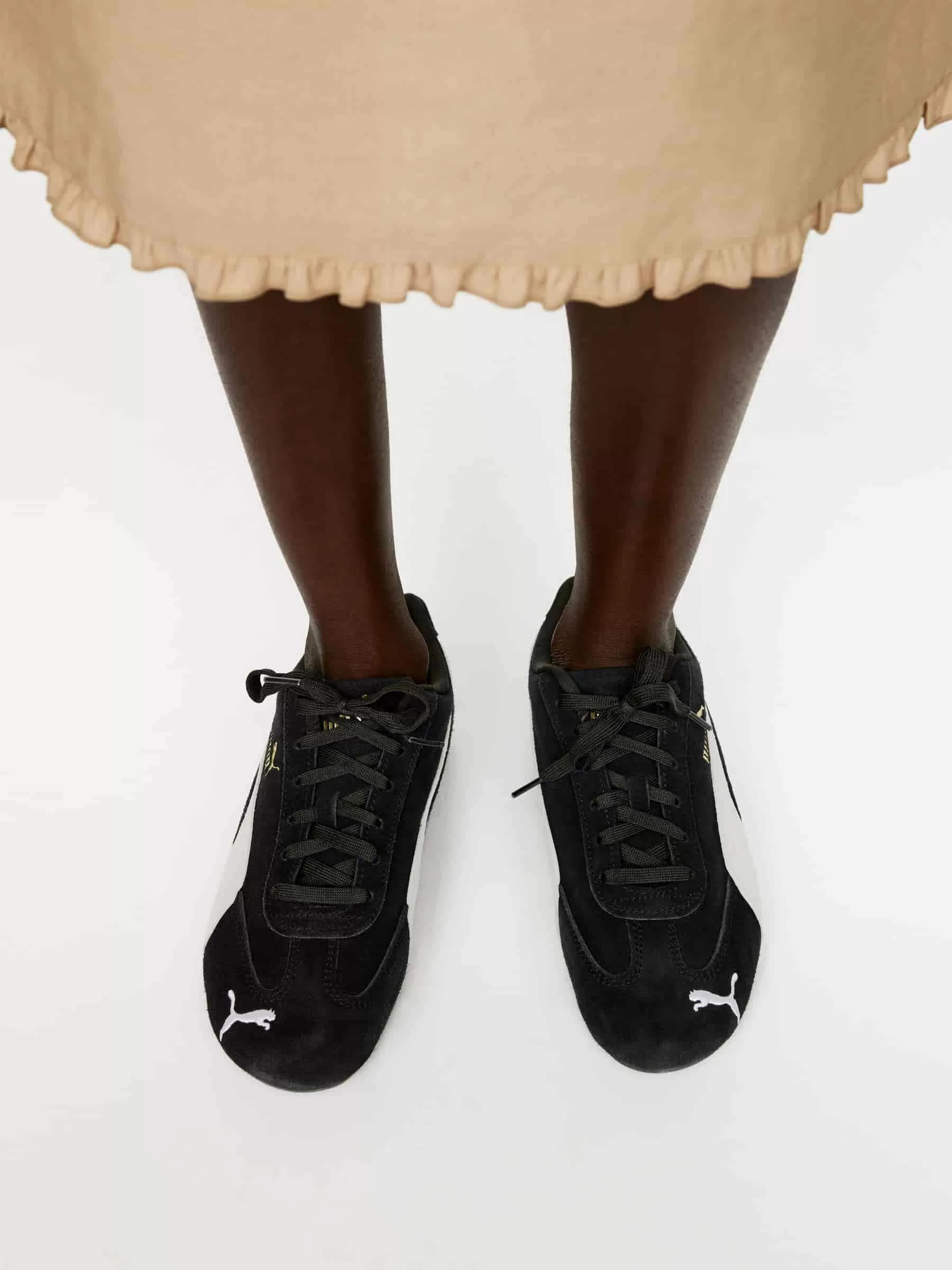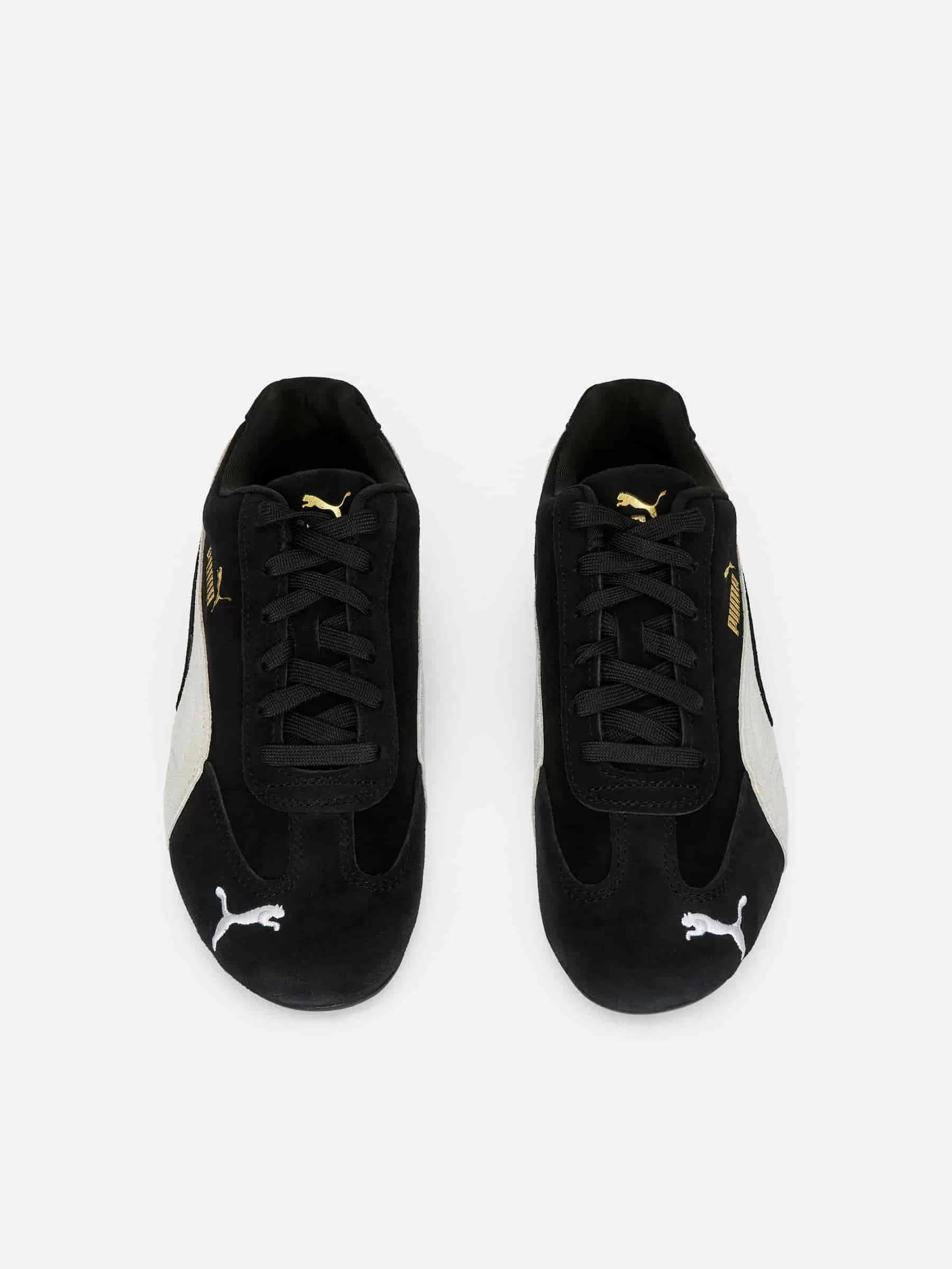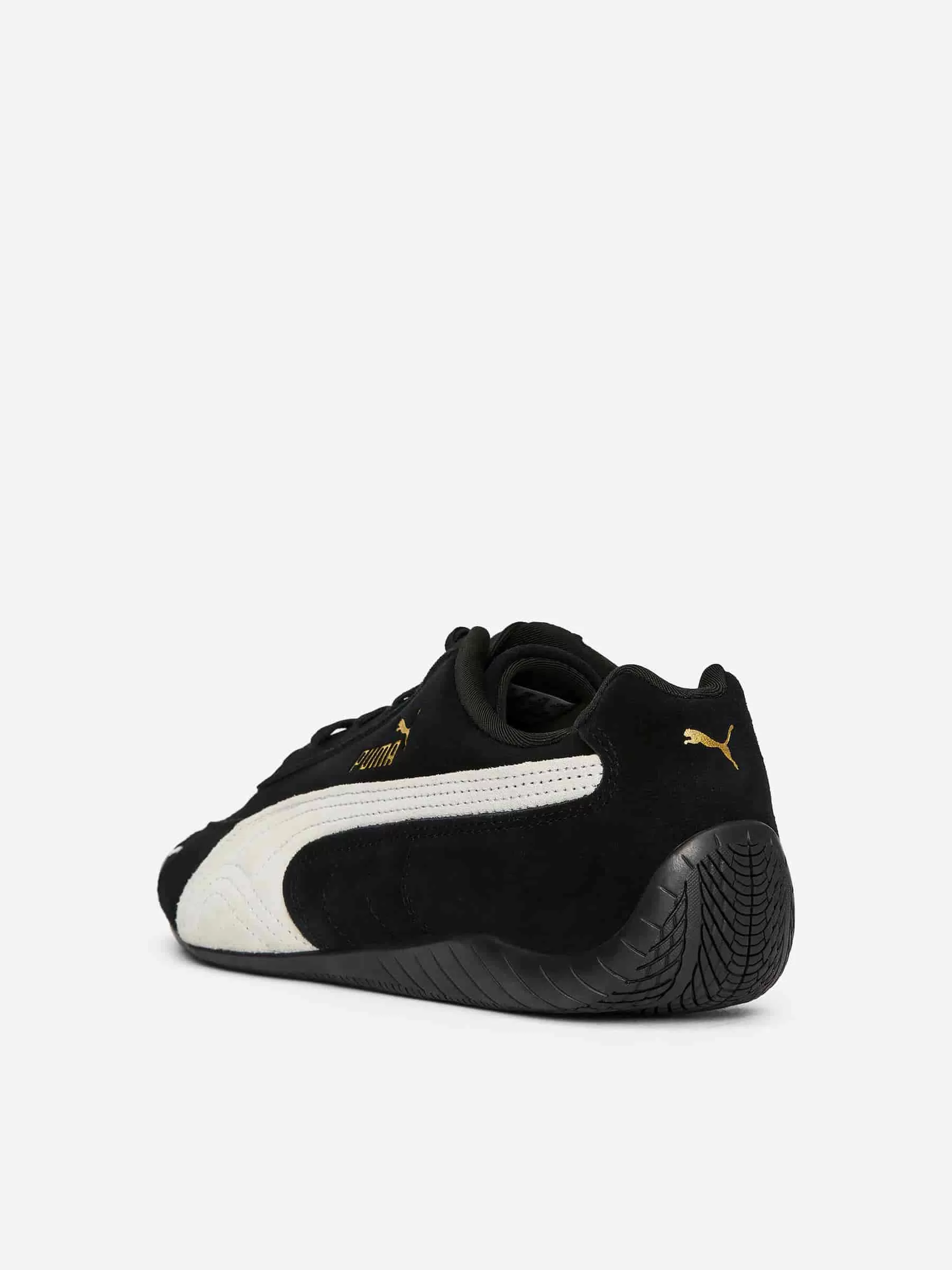 Der PUMA Speedcat wurde 1999 ursprünglich für F1-Fahrer entwickelt und verfügt über ein weiches Wildleder-Obermaterial, Details im Goldfolienstil und das PUMA Cat-Logo an der Spitze.
