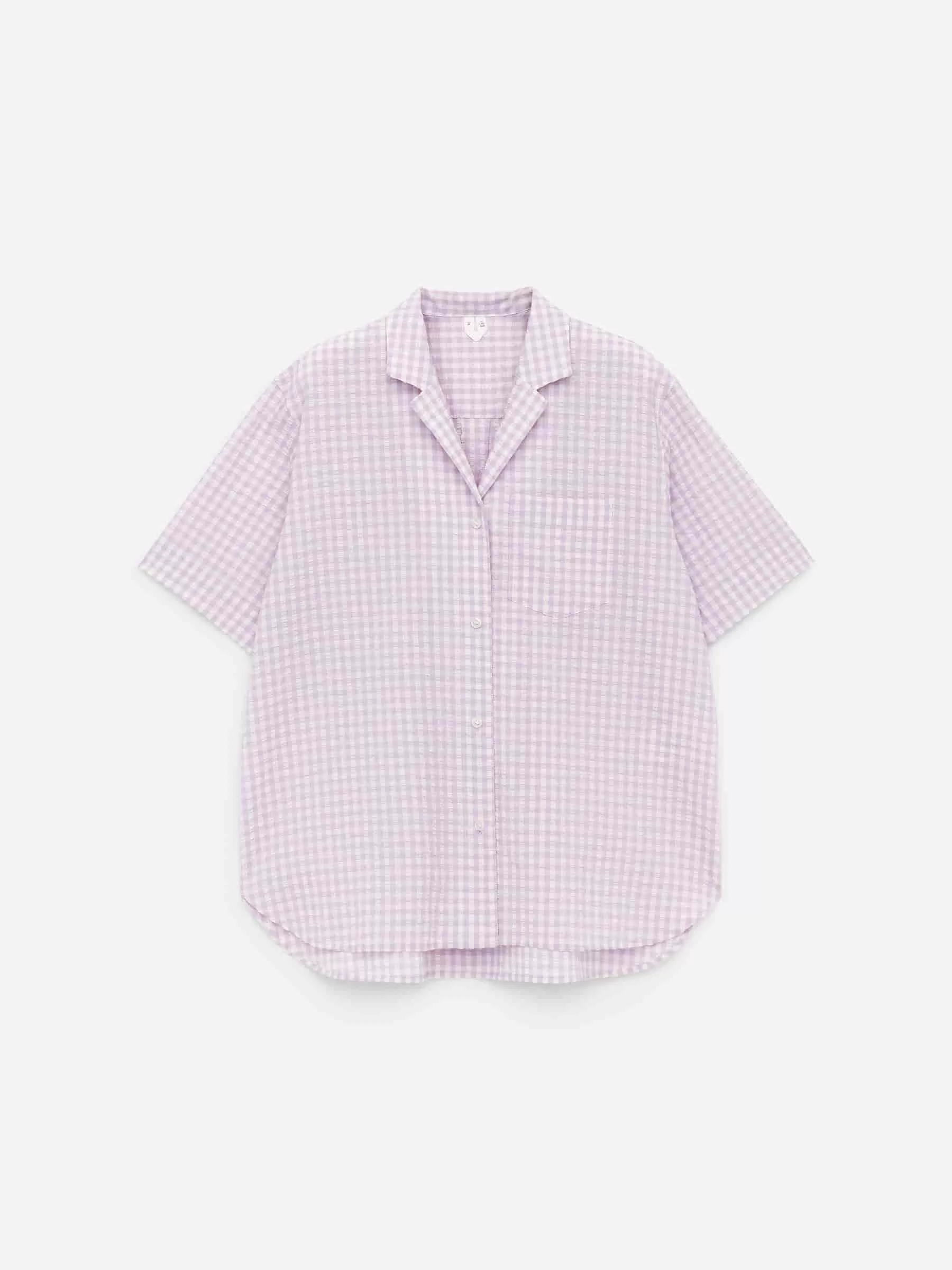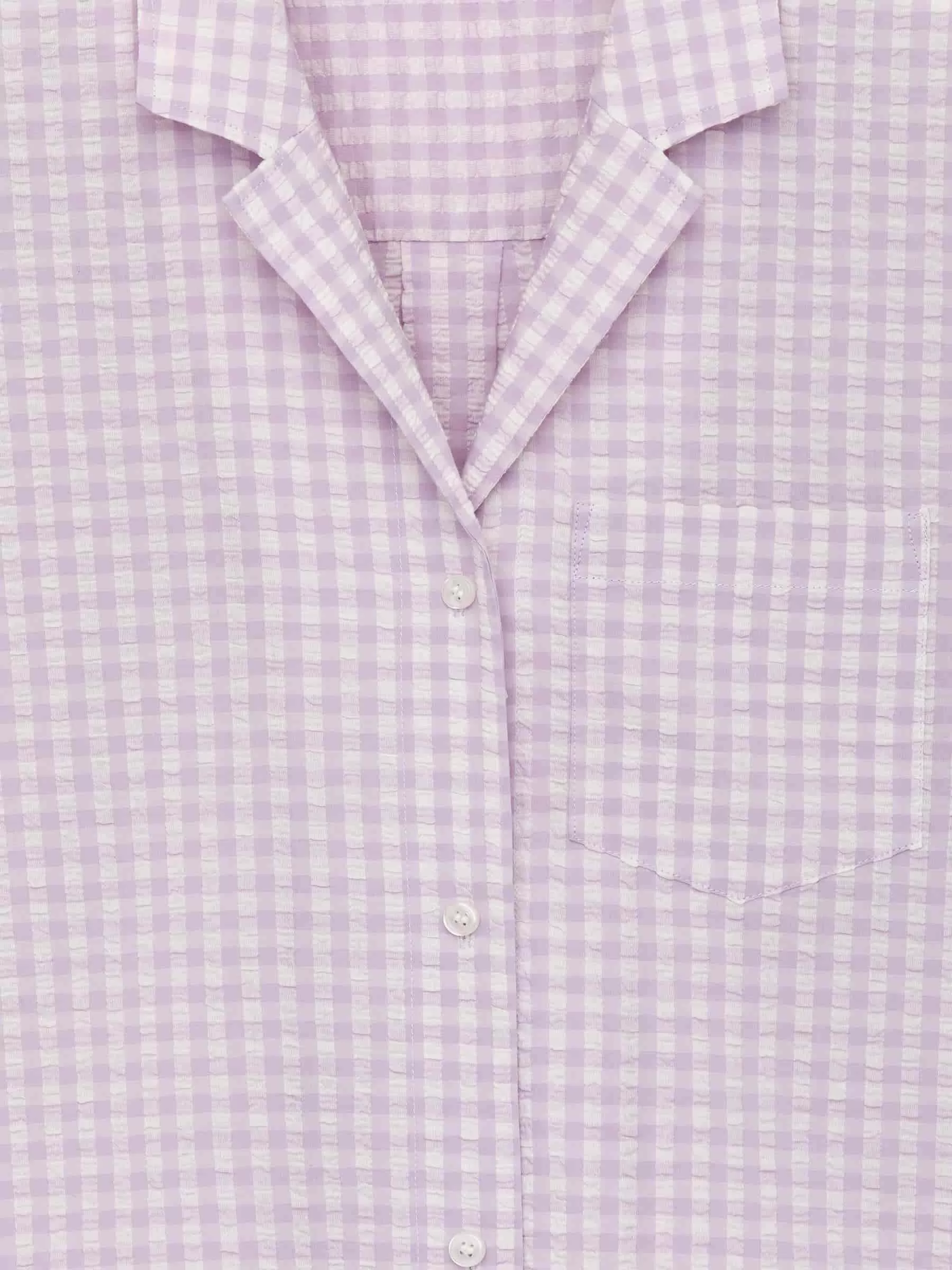 Loungewear-Shirt in weicher Seersucker-Qualität. Mit kurzen Ärmeln, Resort-Kragen und einer einzelnen Brusttasche.