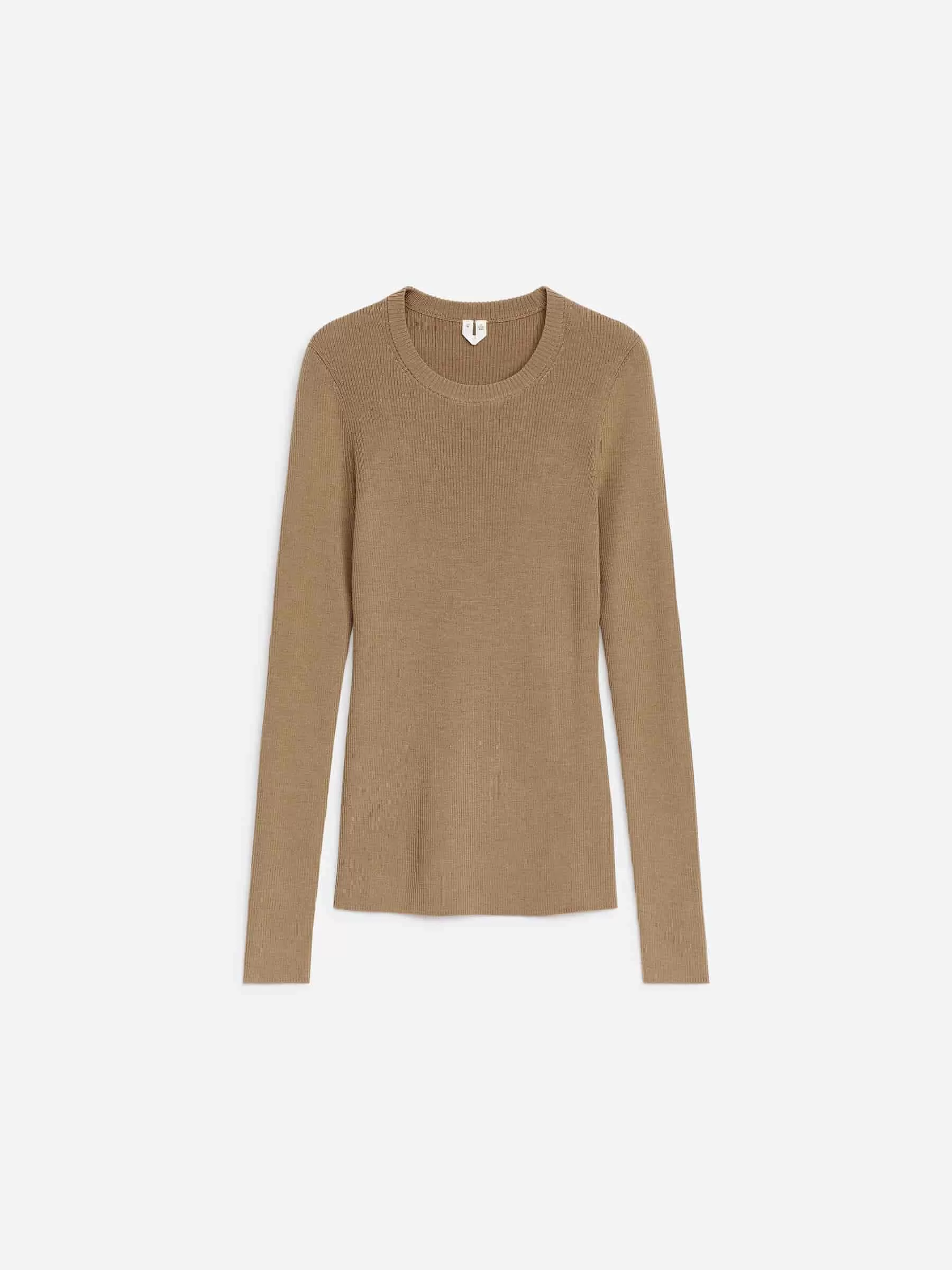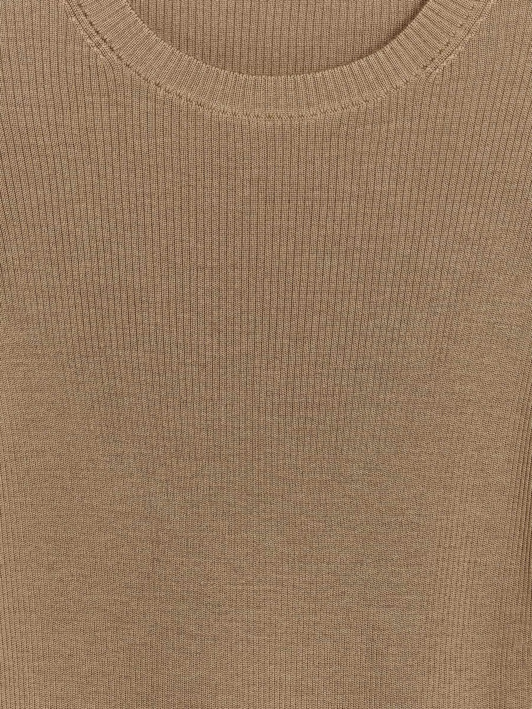 ARKE Damen Rippstrick-Merinooberteil Dunkelbeige