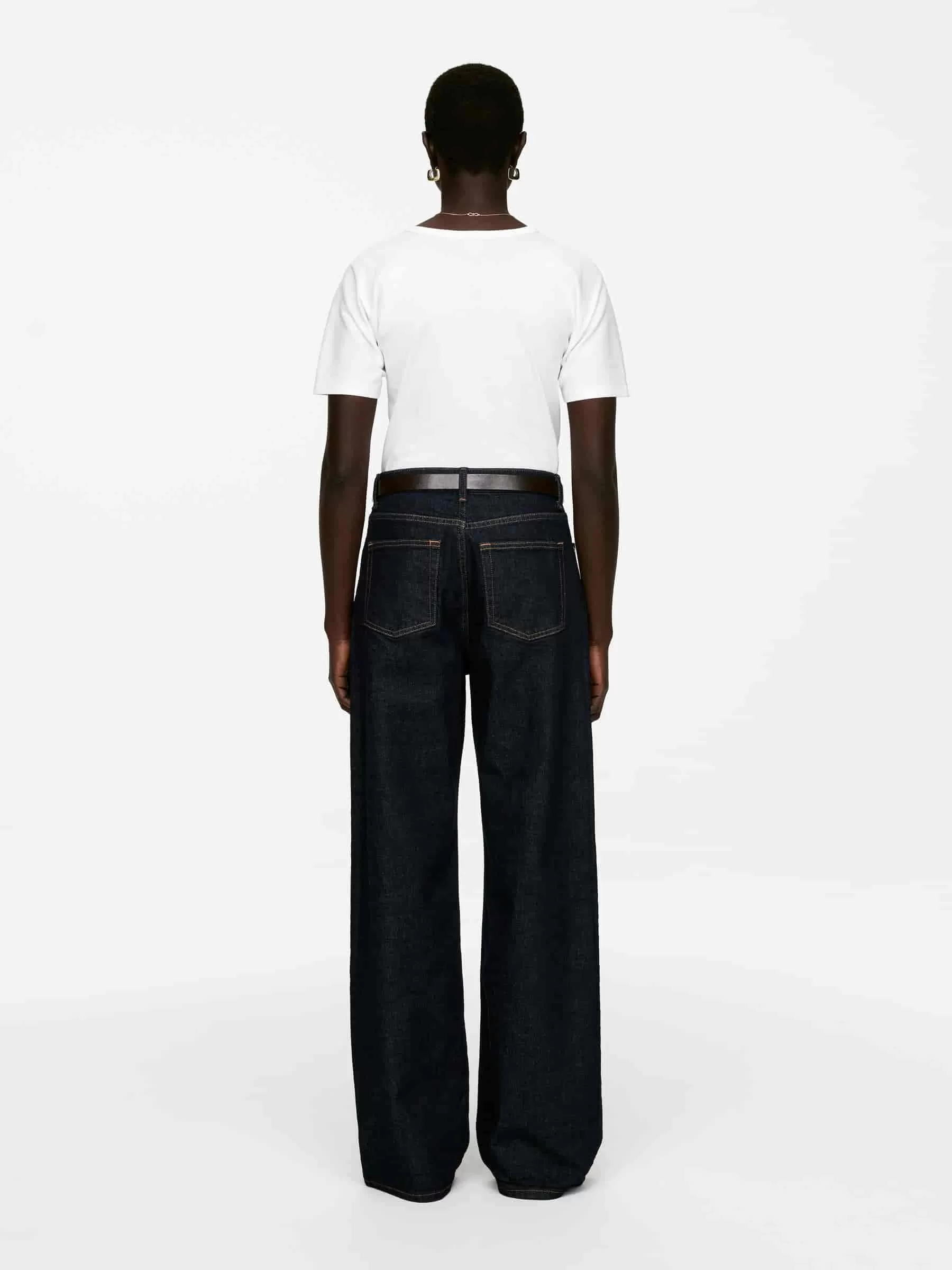 T-Shirt mit Rundhalsausschnitt aus Baumwolljersey, gestrickt im 1×1-Rippmuster. Ein mittelschwerer Stil mit angeschnittenen Ärmeln und schmaler Passform.