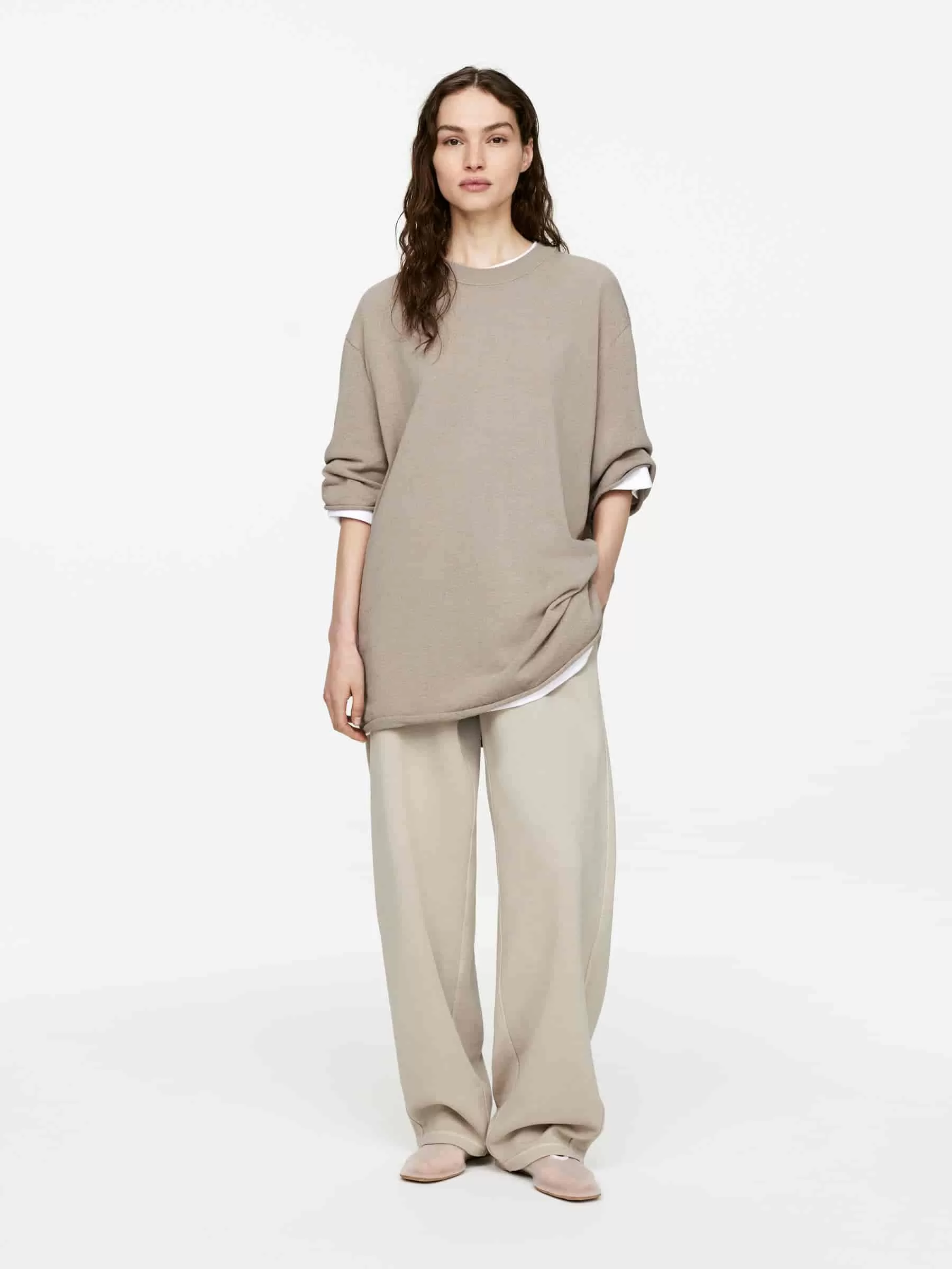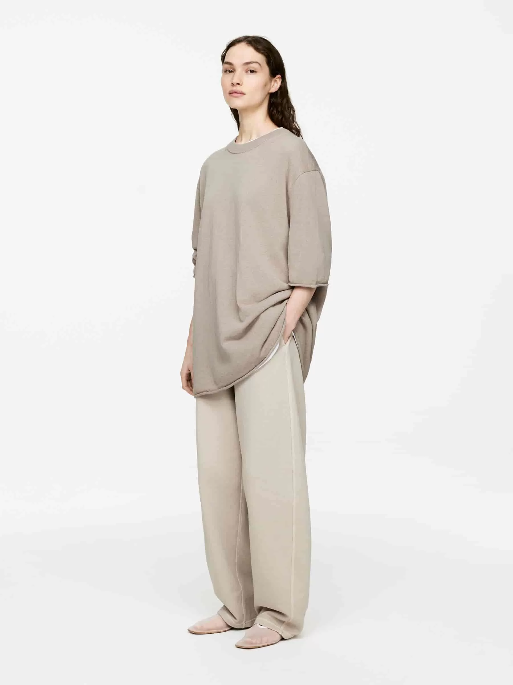 T-Shirt aus einer Leinen-Baumwoll-Viskose-Mischung. Mit geripptem Halsausschnitt und Rollkanten am Ärmelende und am unteren Saum. Lockere Passform.