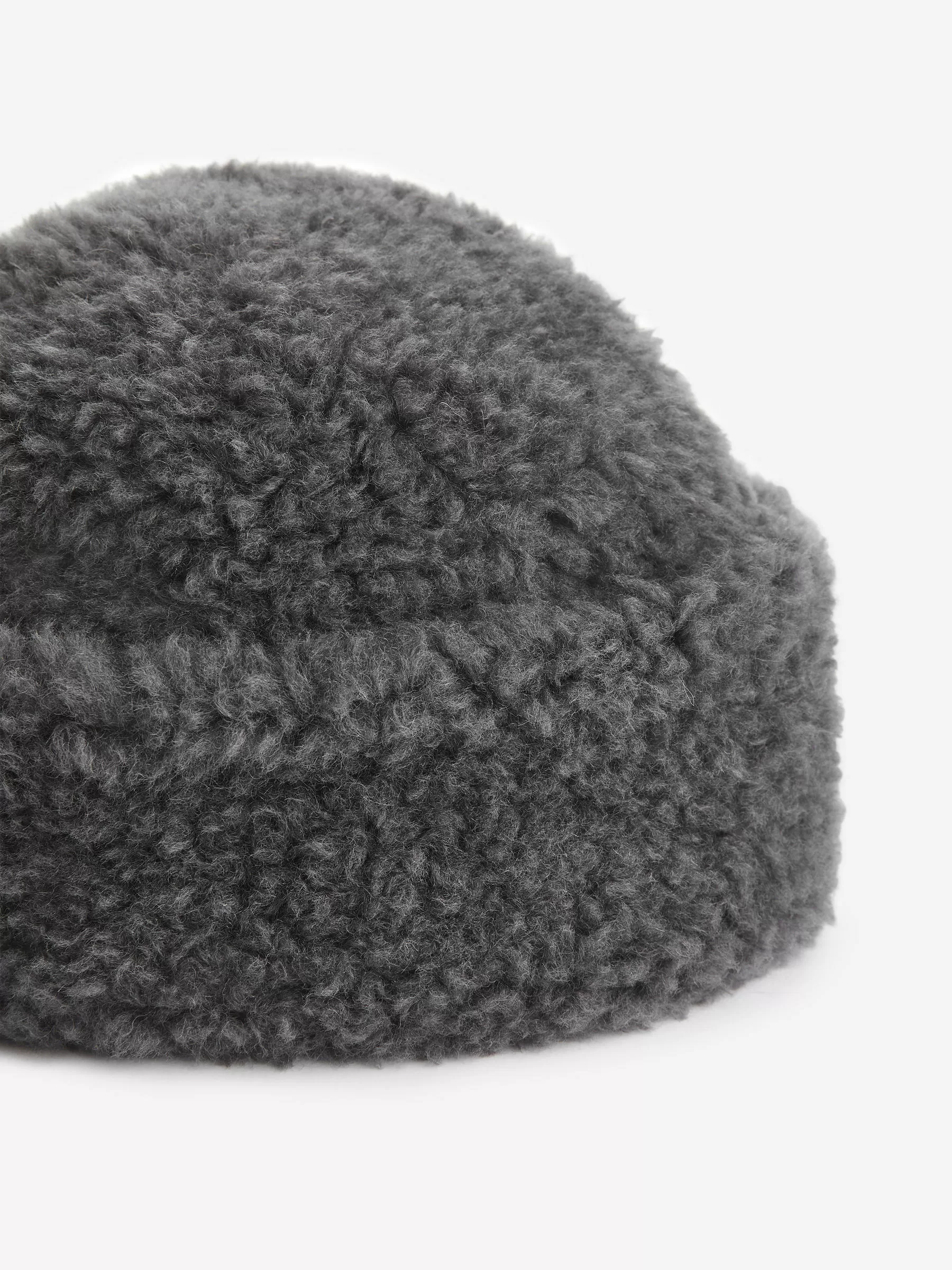 Aufklappbare Teddymütze mit Außenmaterial aus reiner Wolle. Komplett gefüttert. Der Oberstoff enthält 100 % RWS-Wolle, zertifiziert durch die Kontrollunion 878862. Produkte, die nach dem Responsible Wool Standard (RWS) zertifiziert sind, enthalten Wollfasern von Farmen, die unabhängig nach Tierschutz- und Landbewirtschaftungsanforderungen zertifiziert sind